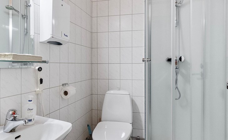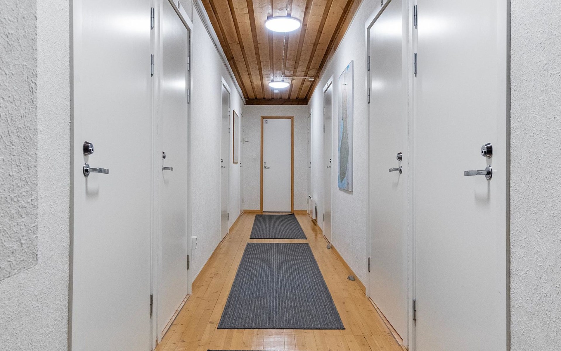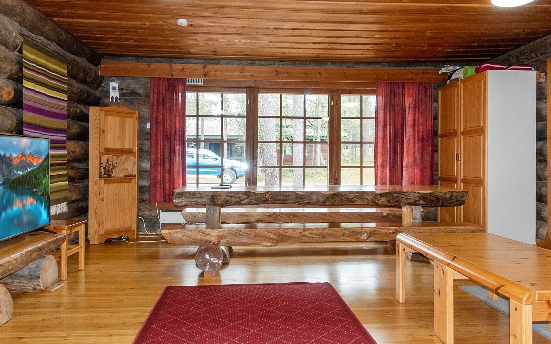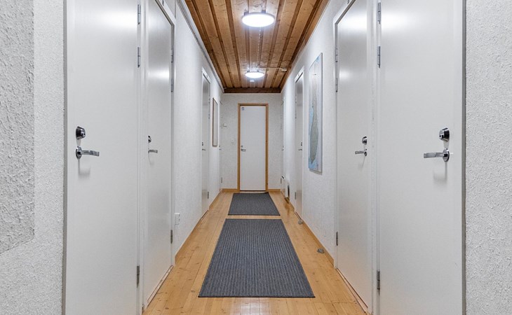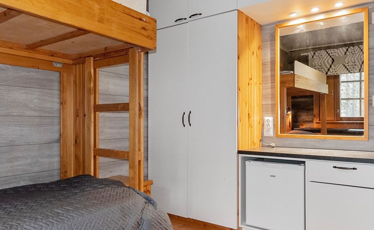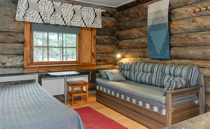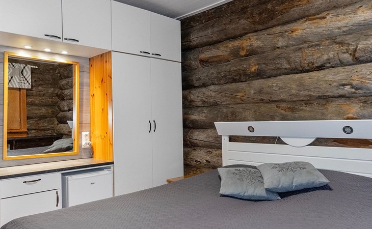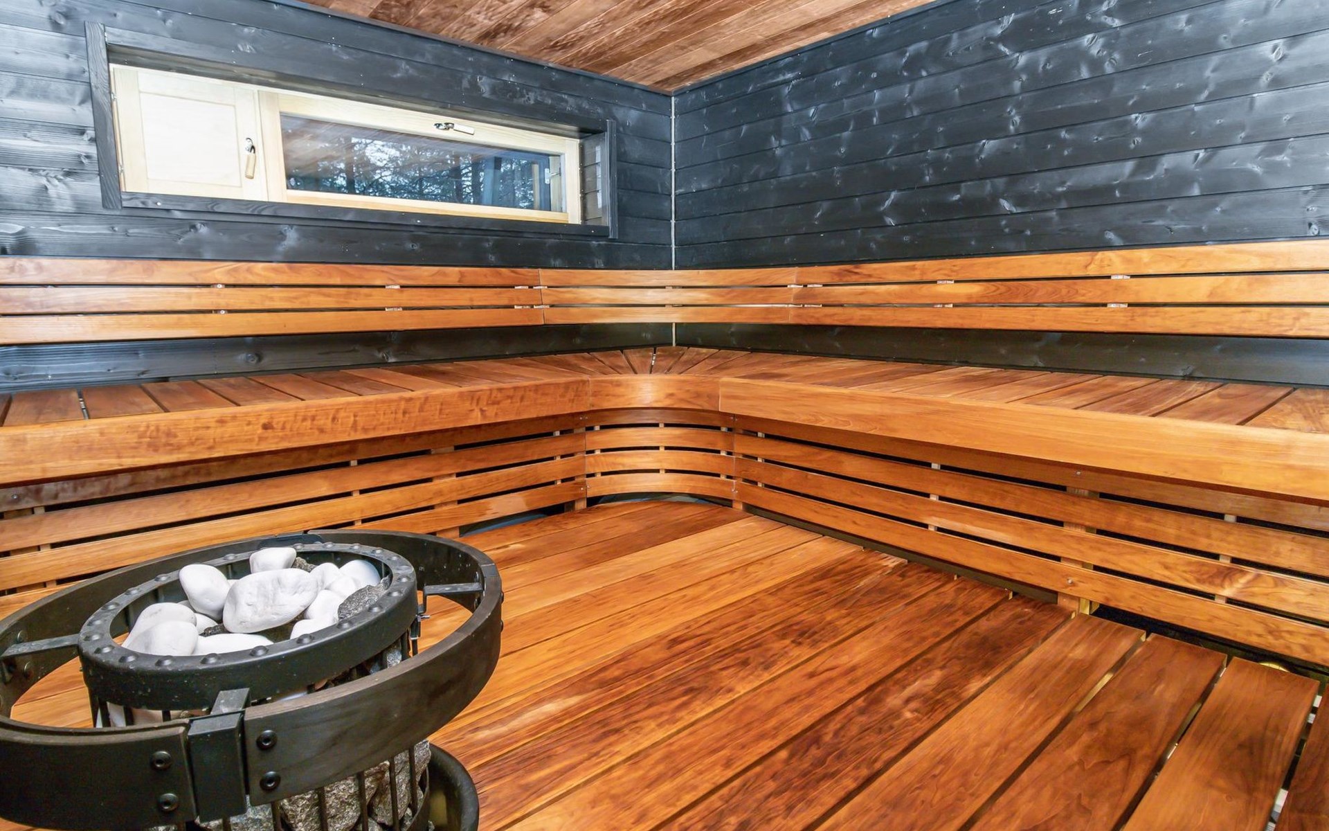 The cabin offers excellent kitchen, dining, and cold storage facilities. There are separate living and fireplace rooms, each with own fireplace and TV. Spacious sauna area with timer-controlled electric sauna stove is also available. Four WCs, one includes a shower cubicle. Technical room with two electric drying cabinets, drying rack, washing machine, and tumble dryer.