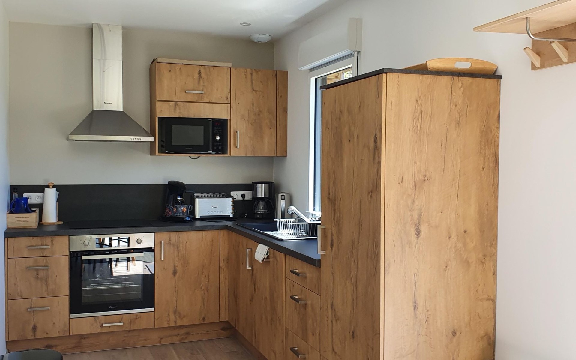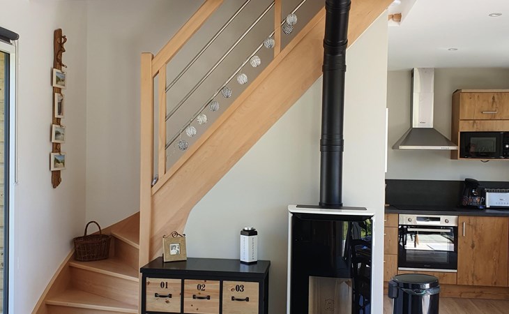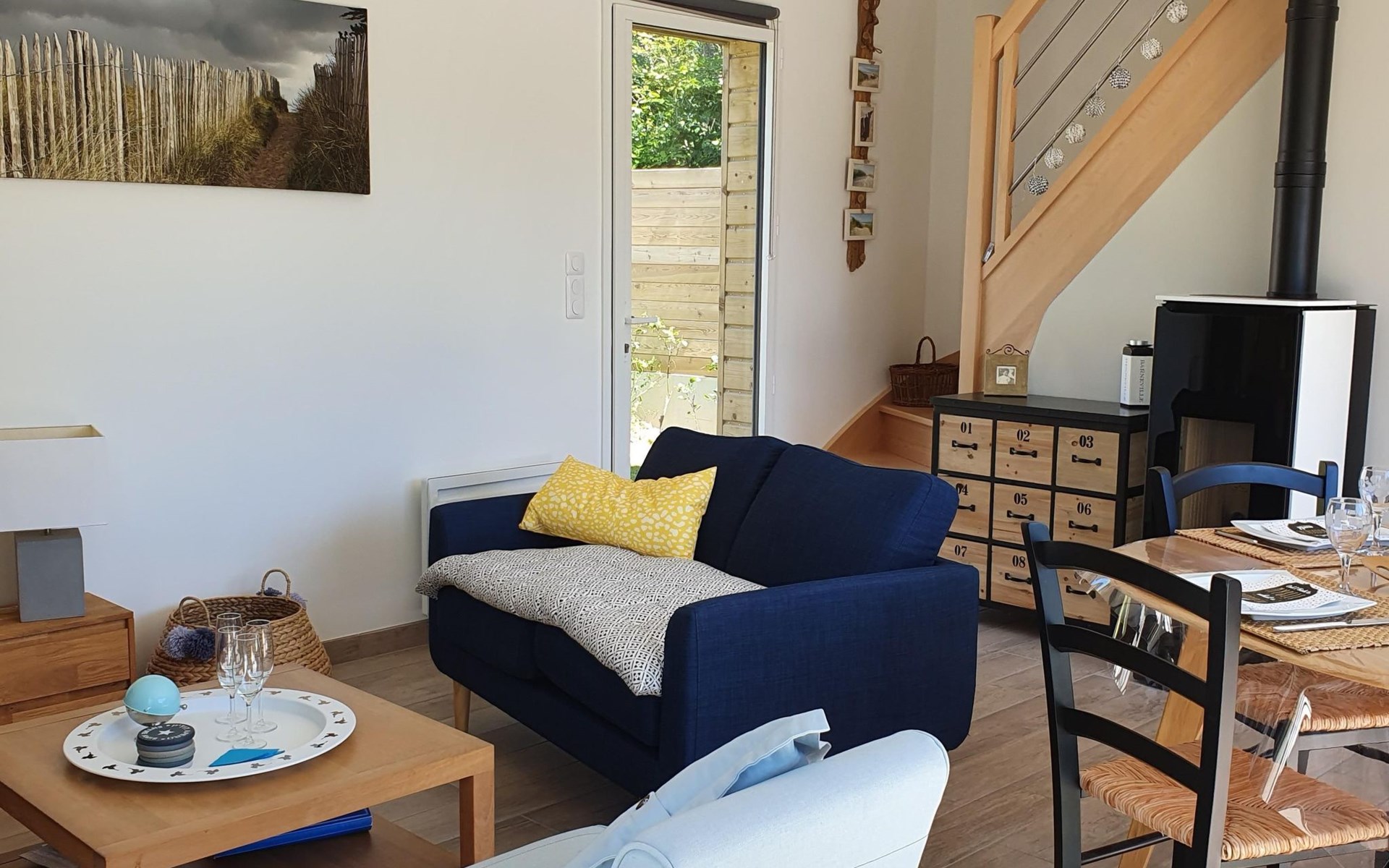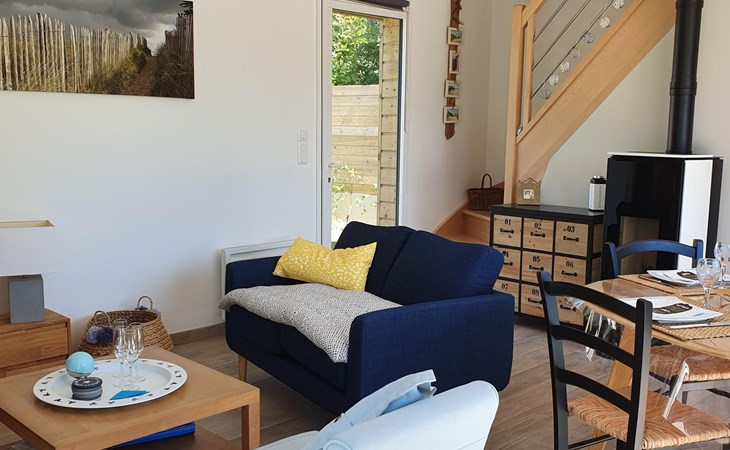 The house was built in 2018 and can accommodate 2 people in its 54 m² spread over two levels. It has a 3-star classification for furnished tourist accommodation. The living area consists of a comfortable lounge with TV, a dining area and an open-plan kitchen, all fully equipped with modern appliances. There is also a utility room and WC on the ground floor. The spacious, bright and well-exposed master bedroom, with a double bed, is upstairs and has its own bathroom with shower and WC.