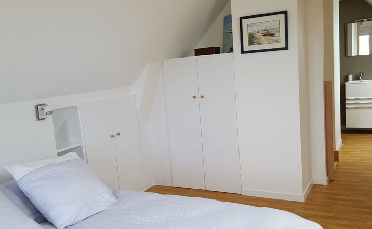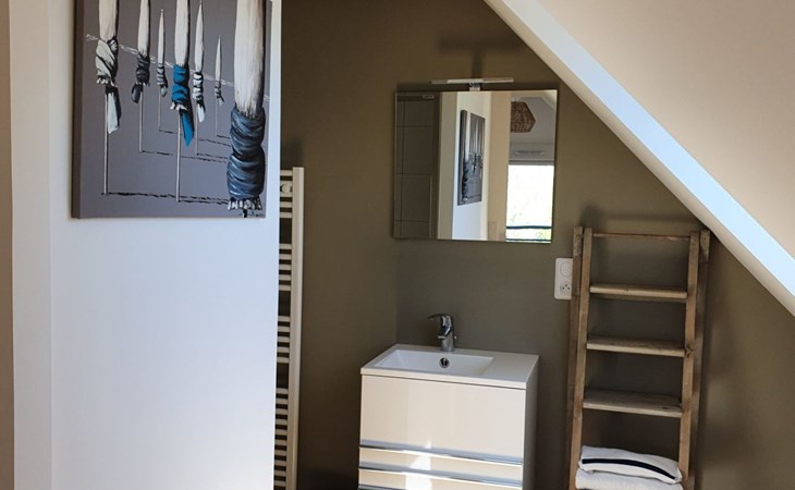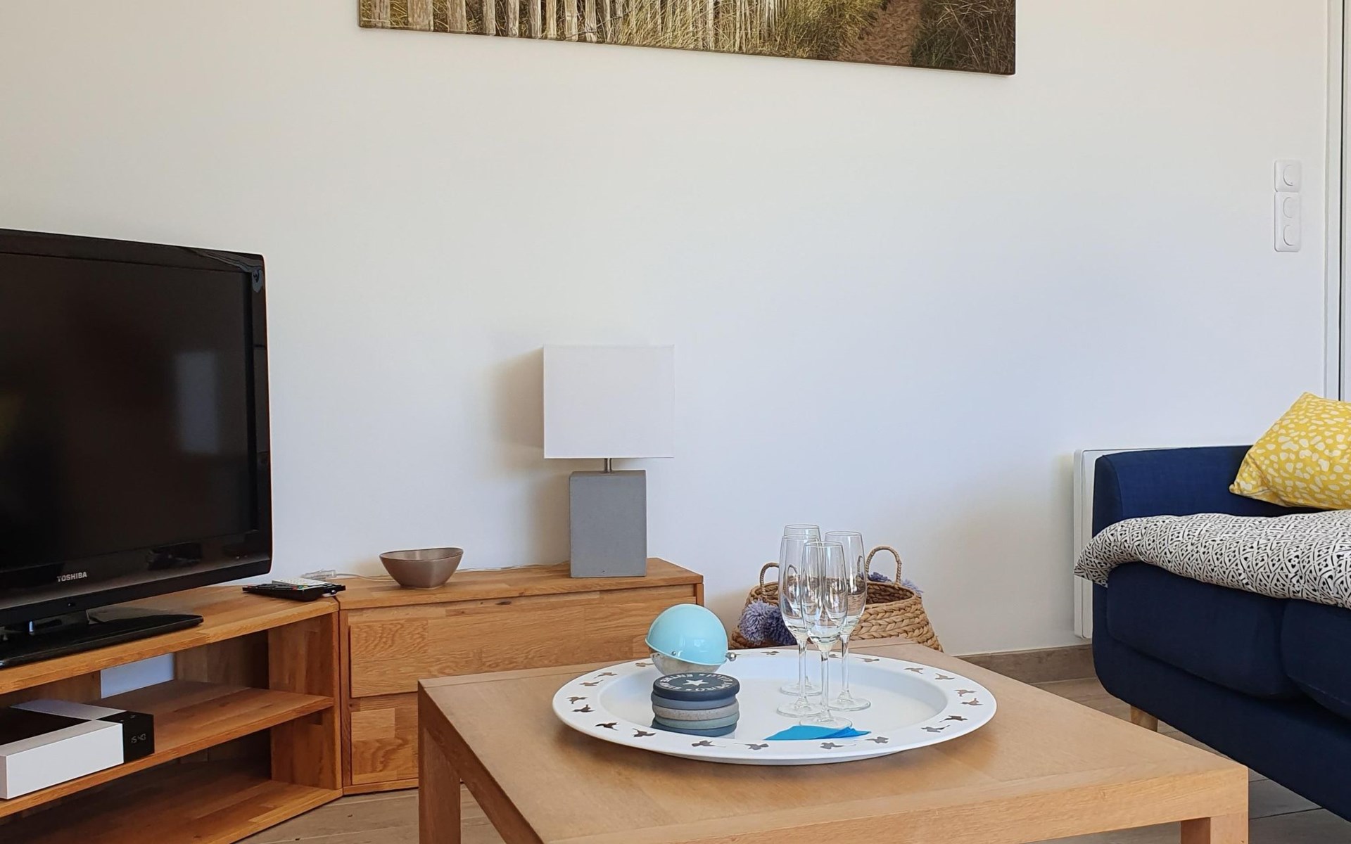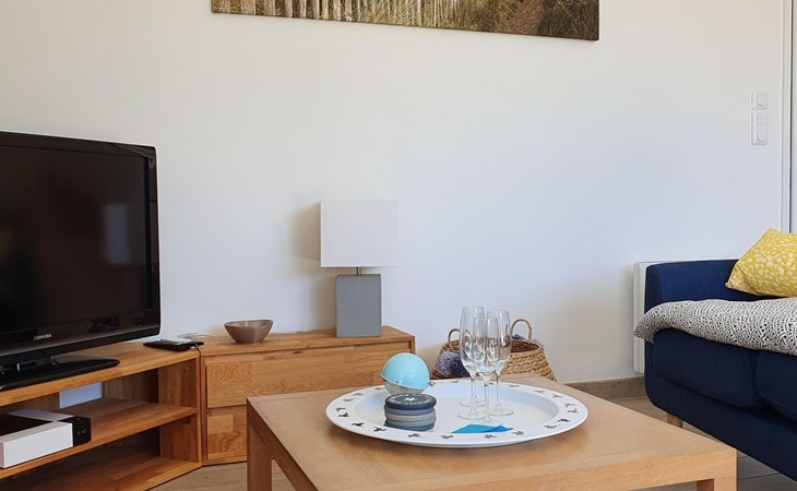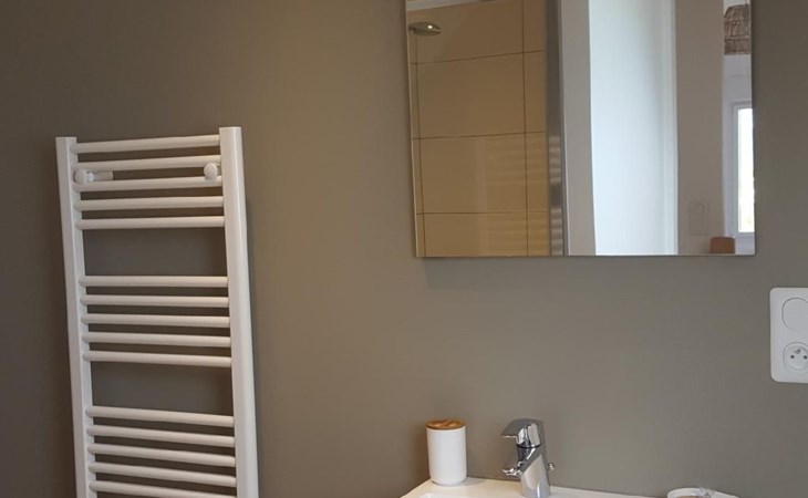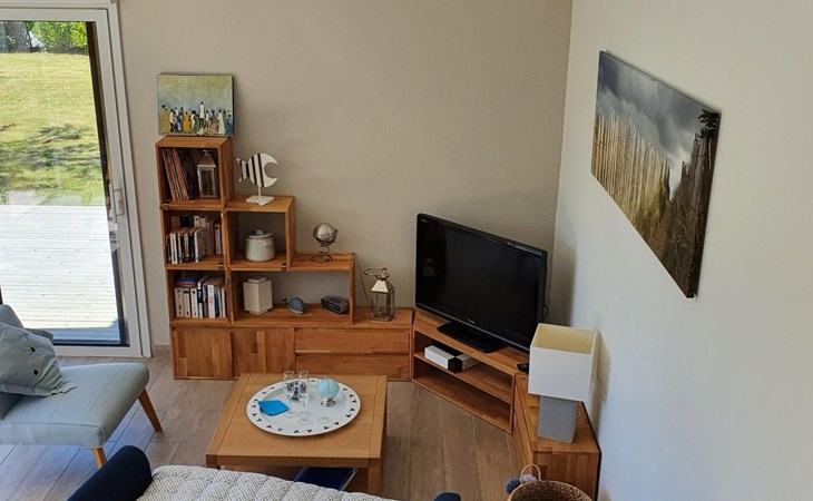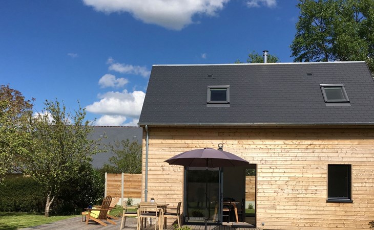 The house was built in 2018 and can accommodate 2 people in its 54 m² spread over two levels. It has a 3-star classification for furnished tourist accommodation. The living area consists of a comfortable lounge with TV, a dining area and an open-plan kitchen, all fully equipped with modern appliances. There is also a utility room and WC on the ground floor. The spacious, bright and well-exposed master bedroom, with a double bed, is upstairs and has its own bathroom with shower and WC.