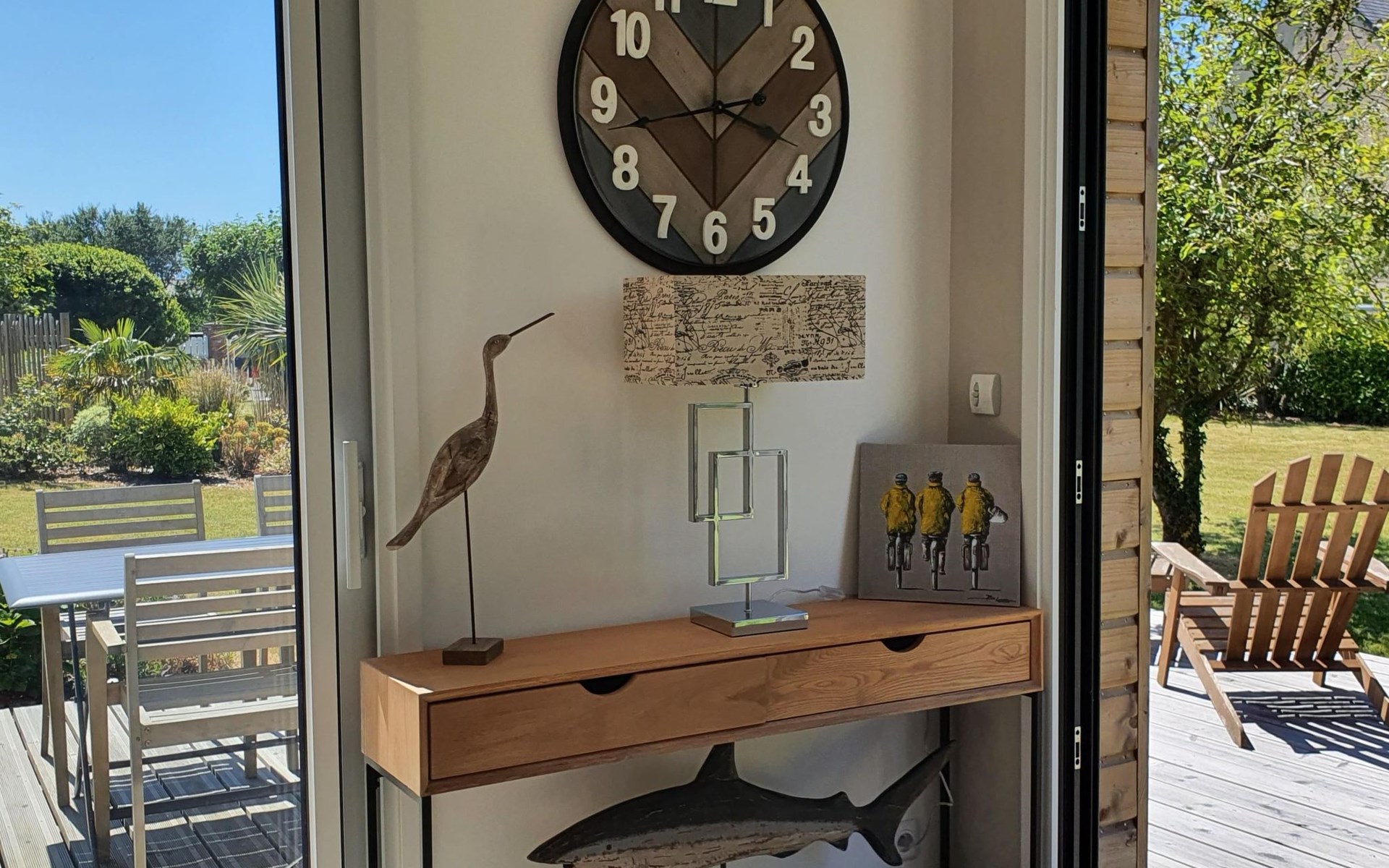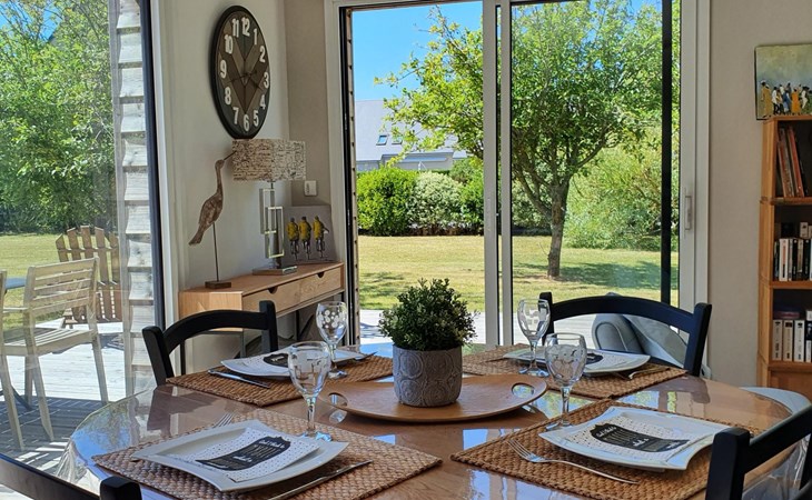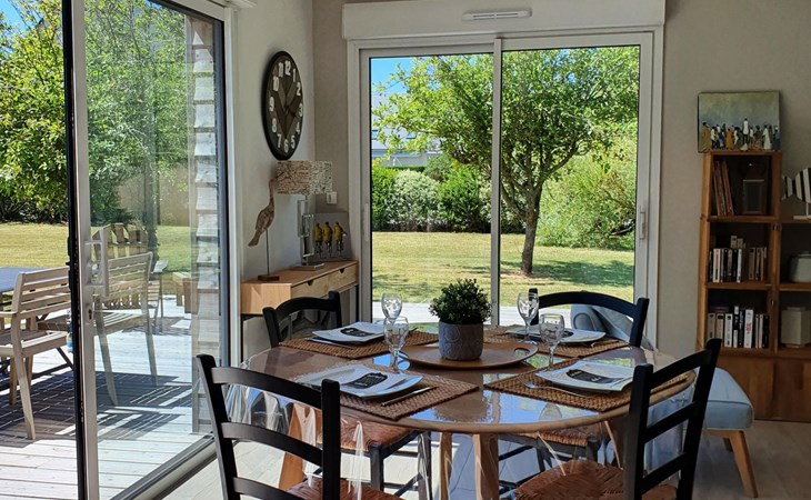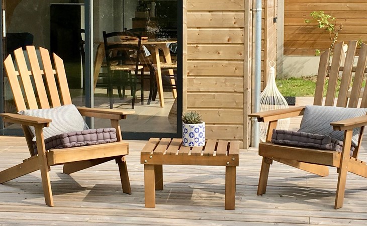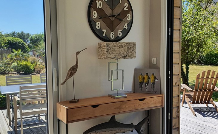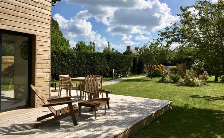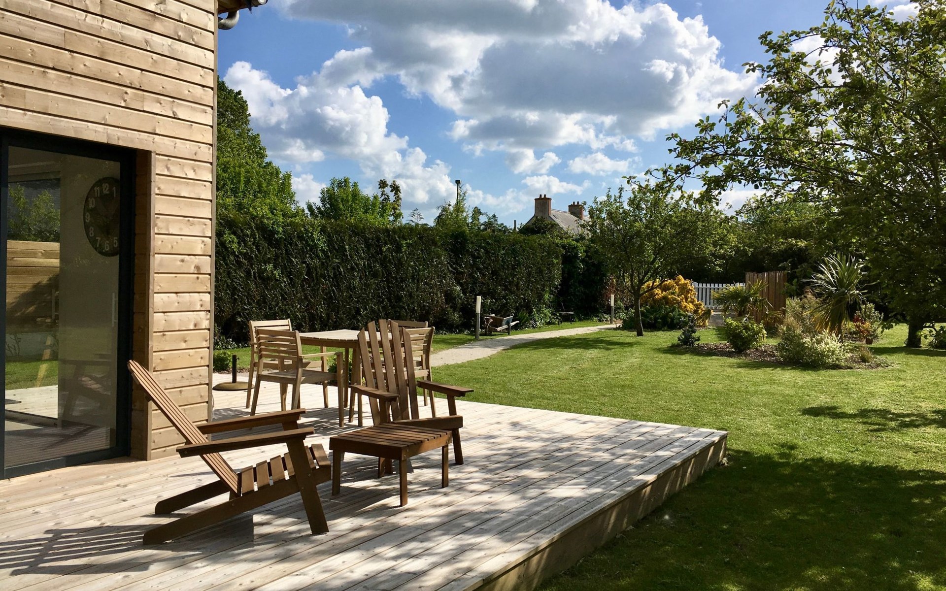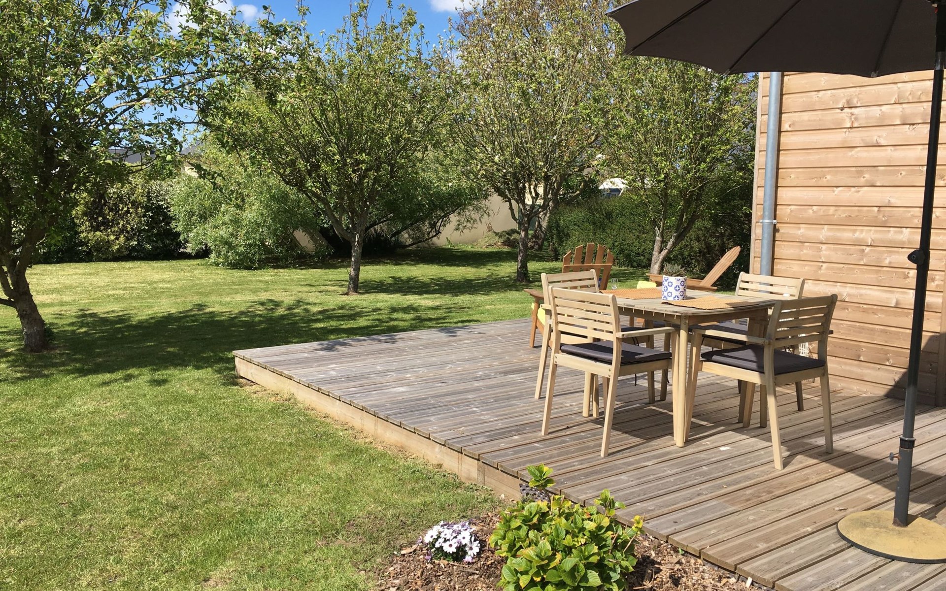 In front of the house, on the large south/south-west facing wooden terrace, you will find a table and chairs where you can relax and admire the view of the garden and its fruit trees. A barbecue is available for guests' use. Bicycles can be hired from a professional in the town.