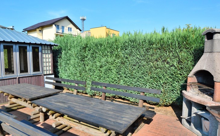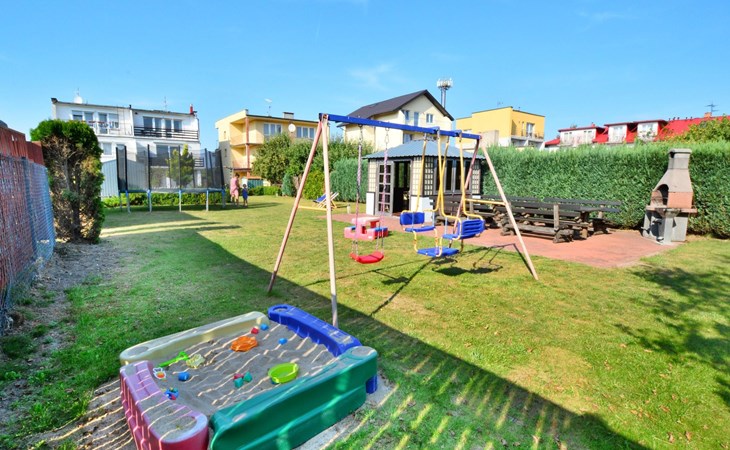 Outdoor area Balcony, barbecue, sandpit, 450 m² garden, garden furniture, playground