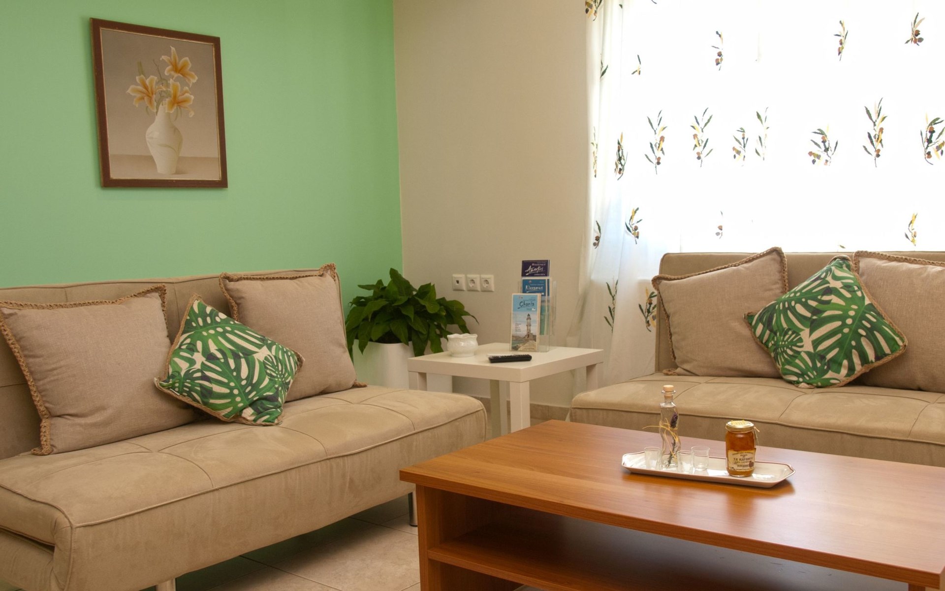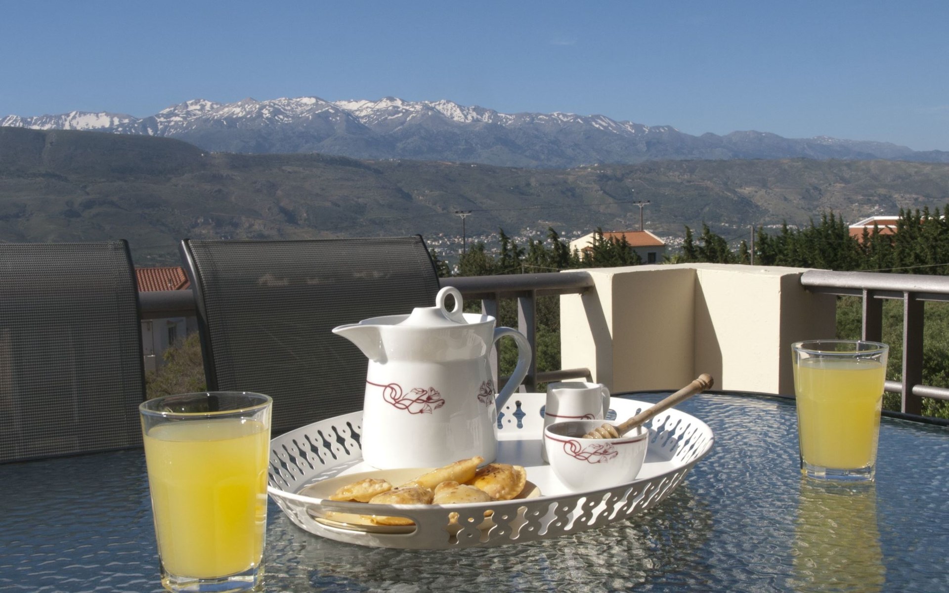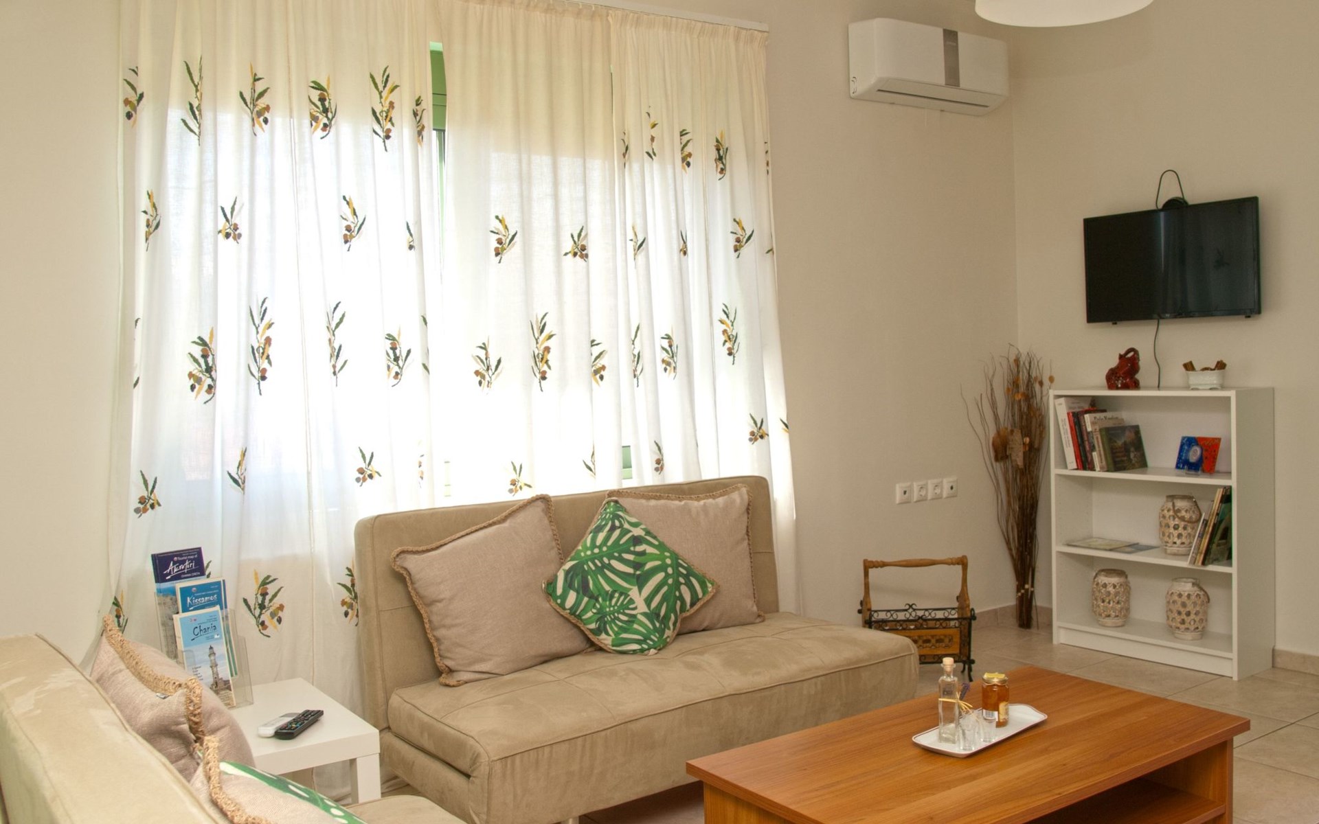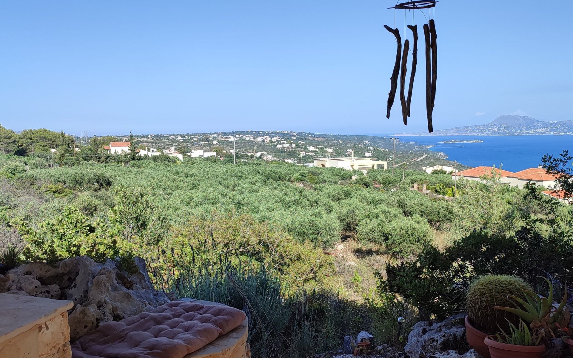 At the frontyard, there is a great, private parking lot for our family and our guests, plenty of space to walk and a a garden with flowers and lawn, and α BBQ area with a wonderful view.At the southern part of our property there is an olive grove, where you can walk, enjoy the cretan nature and rest on swings under the trees.At the eastern side of the property, right after you pass through the white - fenced frontyard, there is a natural rock garden, which is organised as a herb garden, partly shaded by pine trees. There, you can spend some time soaking in the garden and learning from the owner the uses and qualities of Cretan herbs.We named our property "Garden of Zefyrus" as a different kind of wind pleasantly blows the appartment every season. Sometimes a powerful wind makes leafs fall from trees and make a carpet full of beautiful colours, while other times, a soft breeze makes leafs rustle, helping every visitor to relax and unwind.The house is located 300 meters above sea level. From the windows and balcony you can enjoy a beautiful view to the east, south and west, which includes the sea of Souda Bay and the White Mountains which have snowed peaks most of the time. All around, the tweets of birds and the hum of cicadas is heard.