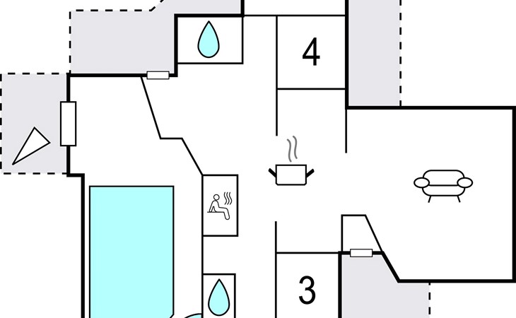 The authentic holiday home offers you a classic ambience with plenty of space for two families. The open-plan living and kitchen area forms the heart of the house and invites you to enjoy meals and relaxing hours together. Two sleeping areas, each with its own bathroom, ensure your privacy. Whatever the weather, you can enjoy the bathing and wellness area and step out onto the terrace to cool off.