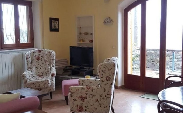 There is a large terrace (50 sq m) overlooking the Ligurian hills all the way to the sea. The exterior is furnished with tables and chairs.
