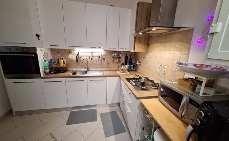 The interior of the flat is designed to ensure a comfortable and relaxing stay. Located on the 3rd floor, it is equipped with partial air conditioning, ideal for cooling down on hot days. Visitors will have the convenience of a washing machine for their exclusive use, a fully equipped gas kitchen, which includes a coffee maker and a dishwasher, making meal preparation a real pleasure. For moments of relaxation, the living room is equipped with a smart TV, while a pedestal fan will keep you cool on sultry days.