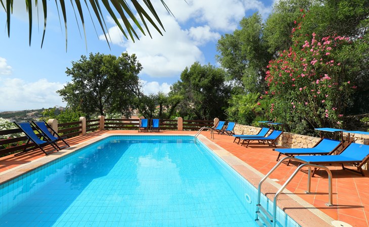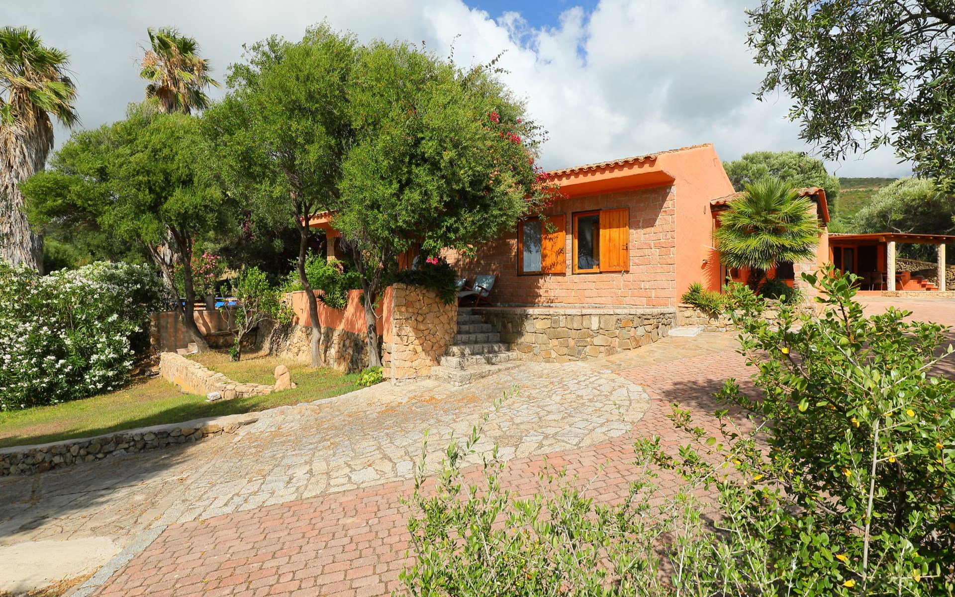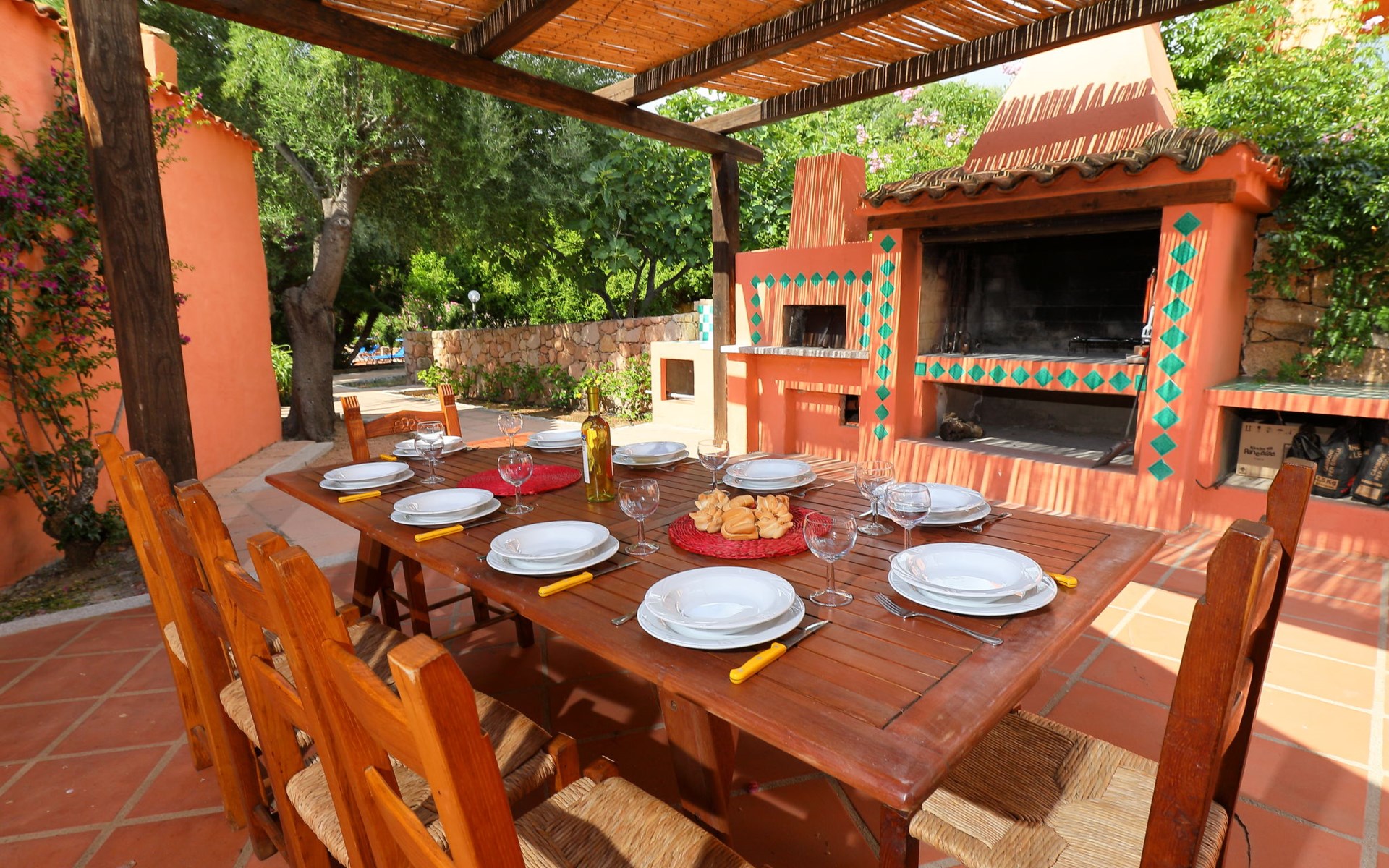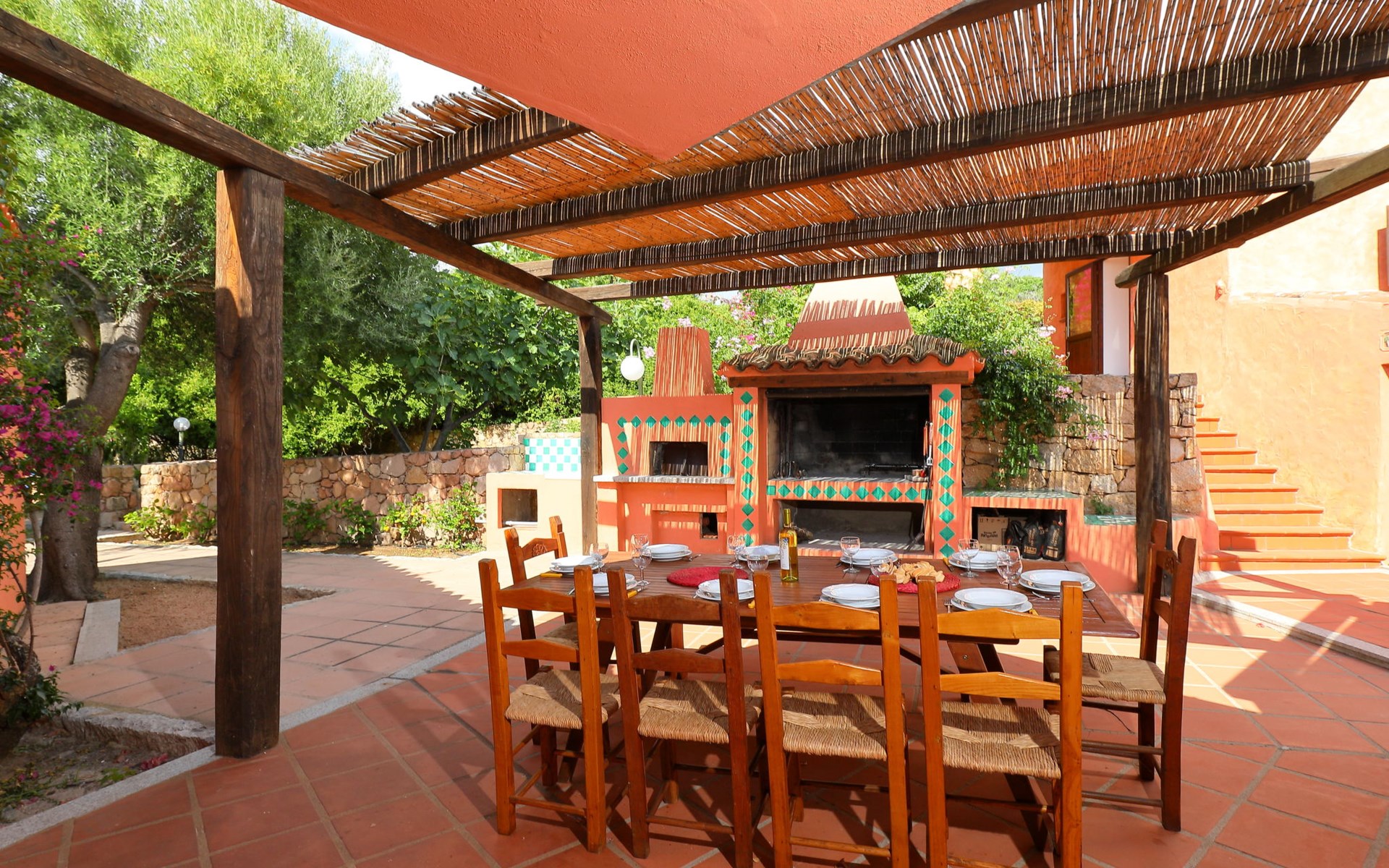 Large, cosy villa "Bouganville". Property composed of main house and outbuilding 1 km from the centre of Badesi, in a quiet, sunny position, traffic calmed area, 4 km from the sea, in a cul-de-sac. Private: large garden 5'000 m2 with flowers and trees, swimming pool (10 x 5 m, depth 150 - 190 cm, seasonal availability: 01.May. - 12.Oct.). Garden furniture, barbecue, parking on the premises. Supermarket 1.5 km, restaurant 1.5 km, bar 1.5 km, bus stop 500 m, sandy beach "Li Junchi" 4 km. Nearby attractions: Isola Rossa 12 km, Castelsardo 23 km. Please note: car recommended. The 190 mq property consists of a main unit and an outbuilding, accessible via a few steps and consisting of a living room, TV, equipped kitchenette, walk-through room with 2 beds, double bedroom and bathroom / bidet / wc.