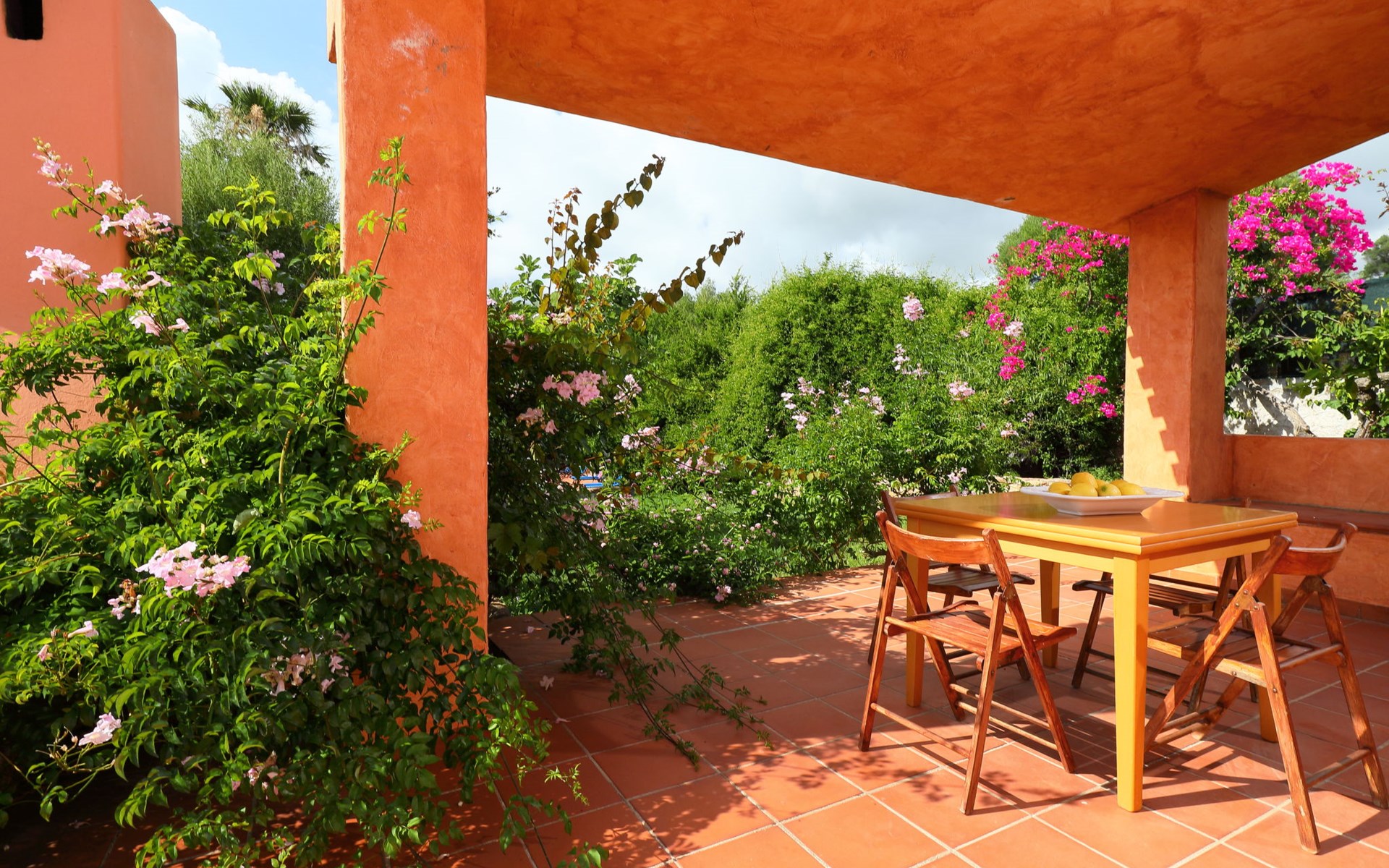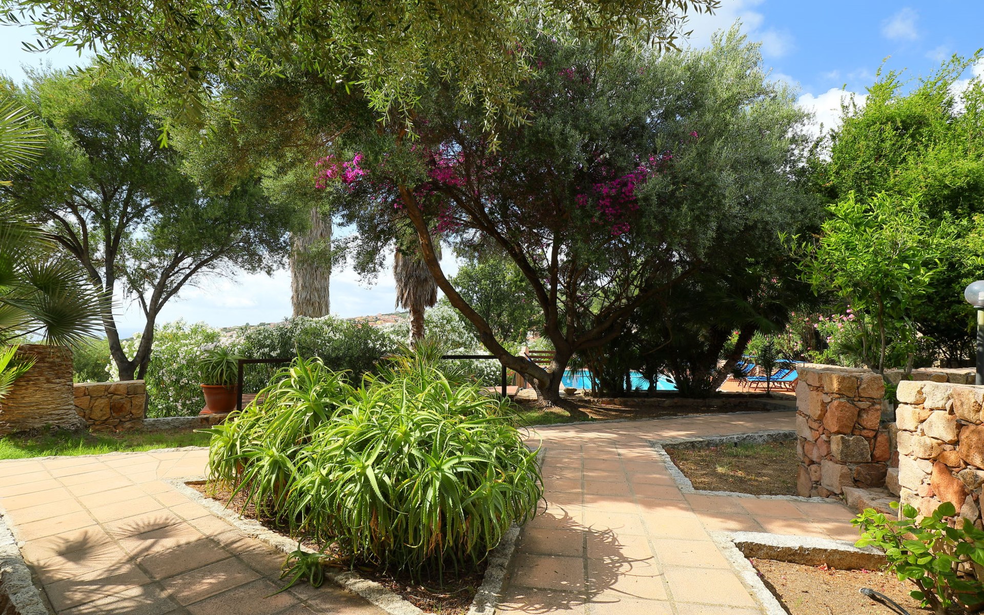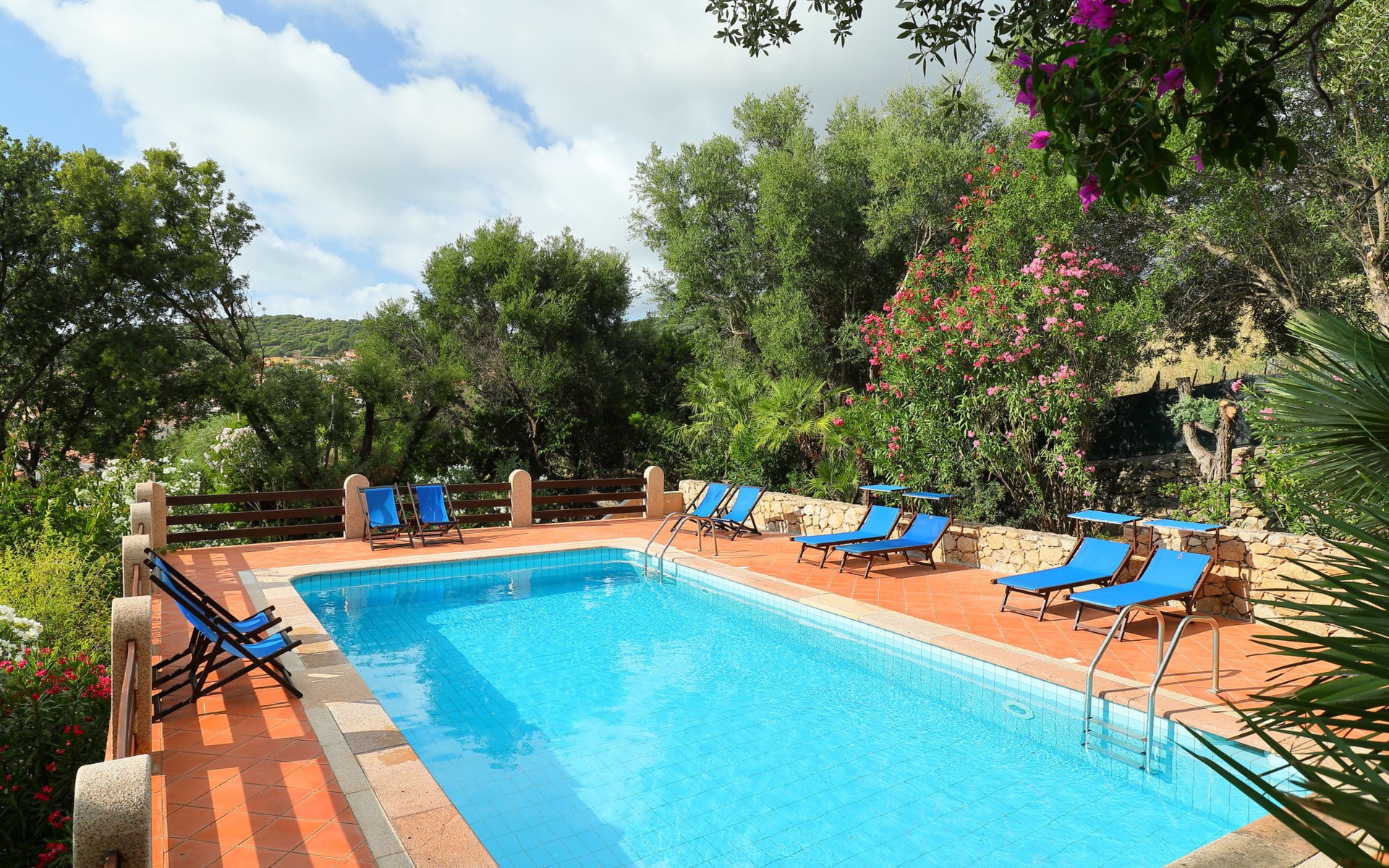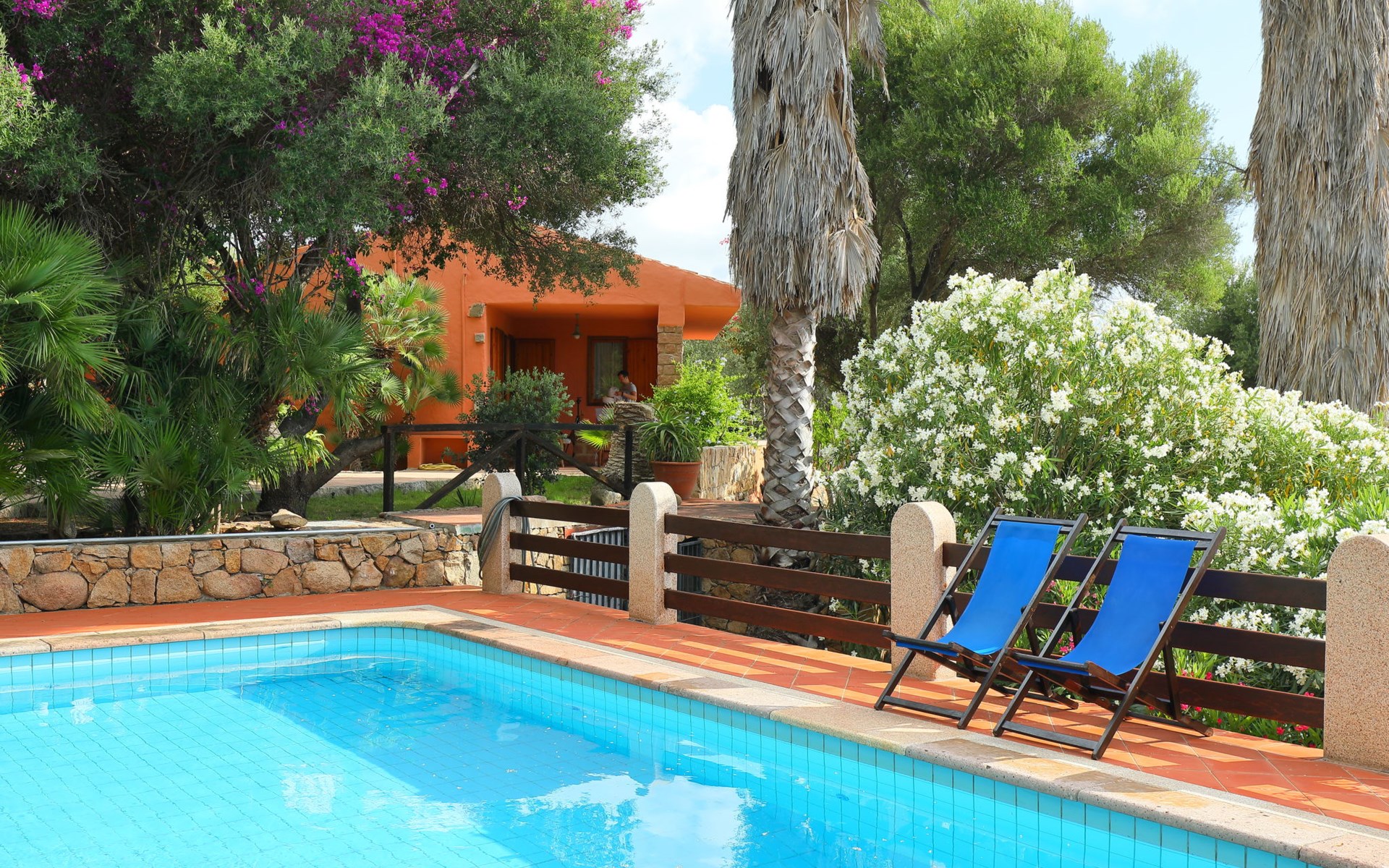 Large, cosy villa "Bouganville". Property composed of main house and outbuilding 1 km from the centre of Badesi, in a quiet, sunny position, traffic calmed area, 4 km from the sea, in a cul-de-sac. Private: large garden 5'000 m2 with flowers and trees, swimming pool (10 x 5 m, depth 150 - 190 cm, seasonal availability: 01.May. - 12.Oct.). Garden furniture, barbecue, parking on the premises. Supermarket 1.5 km, restaurant 1.5 km, bar 1.5 km, bus stop 500 m, sandy beach "Li Junchi" 4 km. Nearby attractions: Isola Rossa 12 km, Castelsardo 23 km. Please note: car recommended. The 190 mq property consists of a main unit and an outbuilding, accessible via a few steps and consisting of a living room, TV, equipped kitchenette, walk-through room with 2 beds, double bedroom and bathroom / bidet / wc.