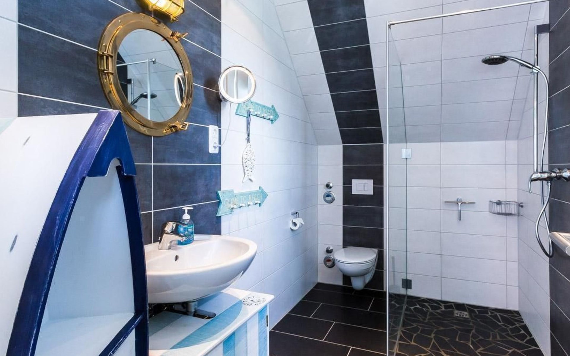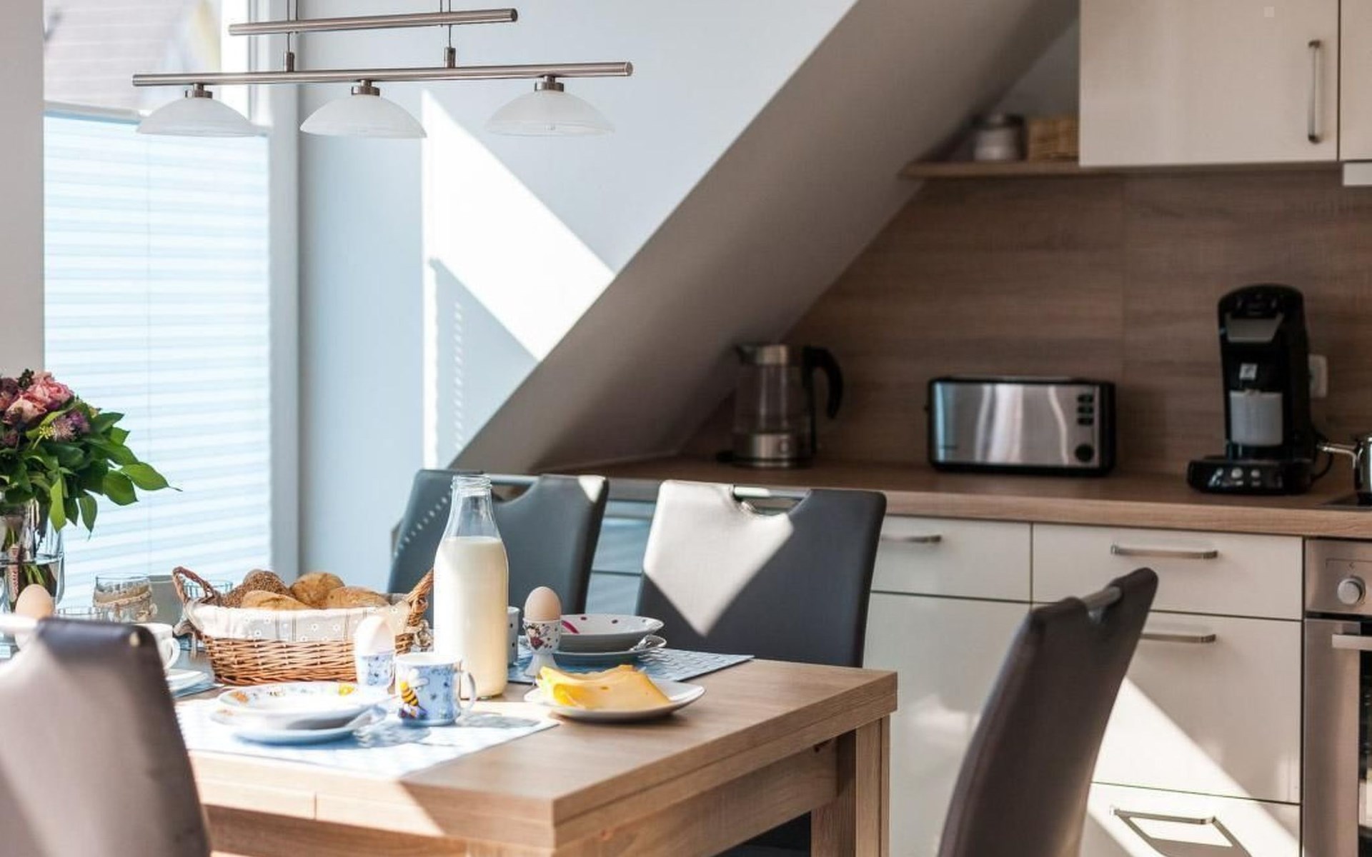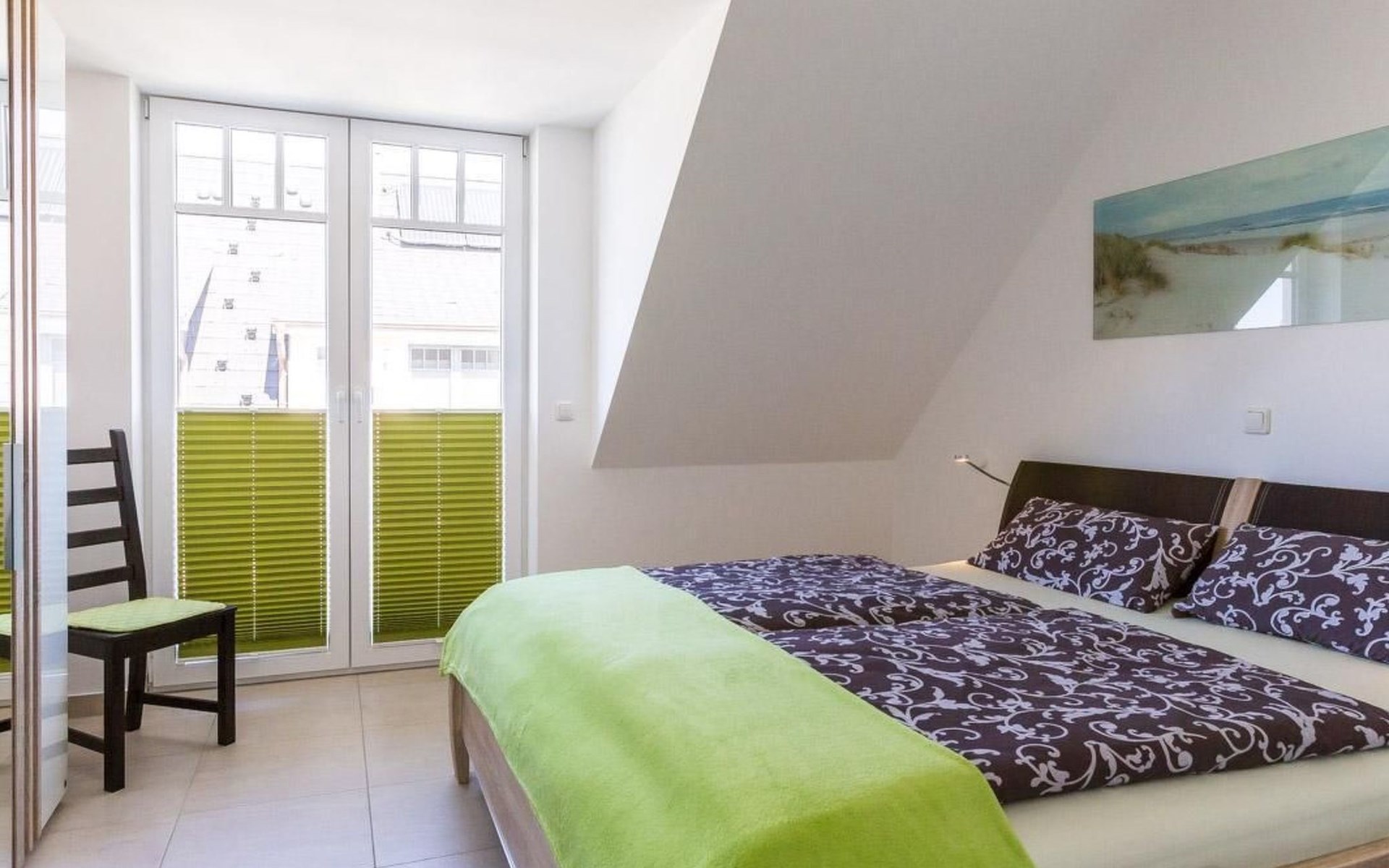 You can start the day with a sumptuous breakfast on one of the balconies, accompanied by the cawing of seagulls, and breath the wonderfully fresh Baltic Sea air and look forward to a sunny day by the sea. One balcony is accessed from the bedroom, the other from the living room.
