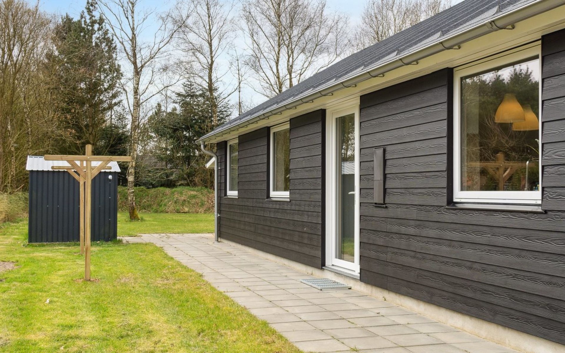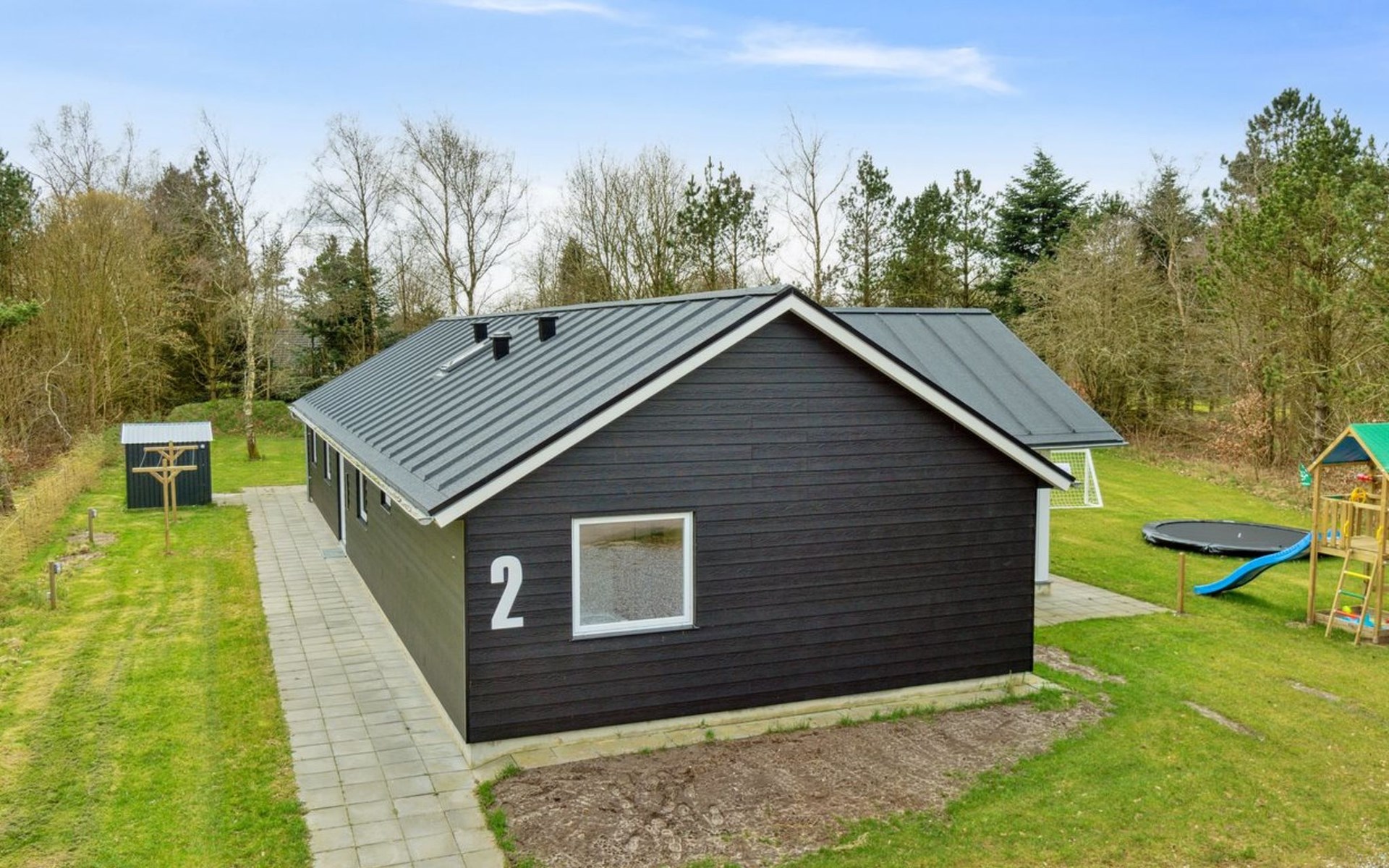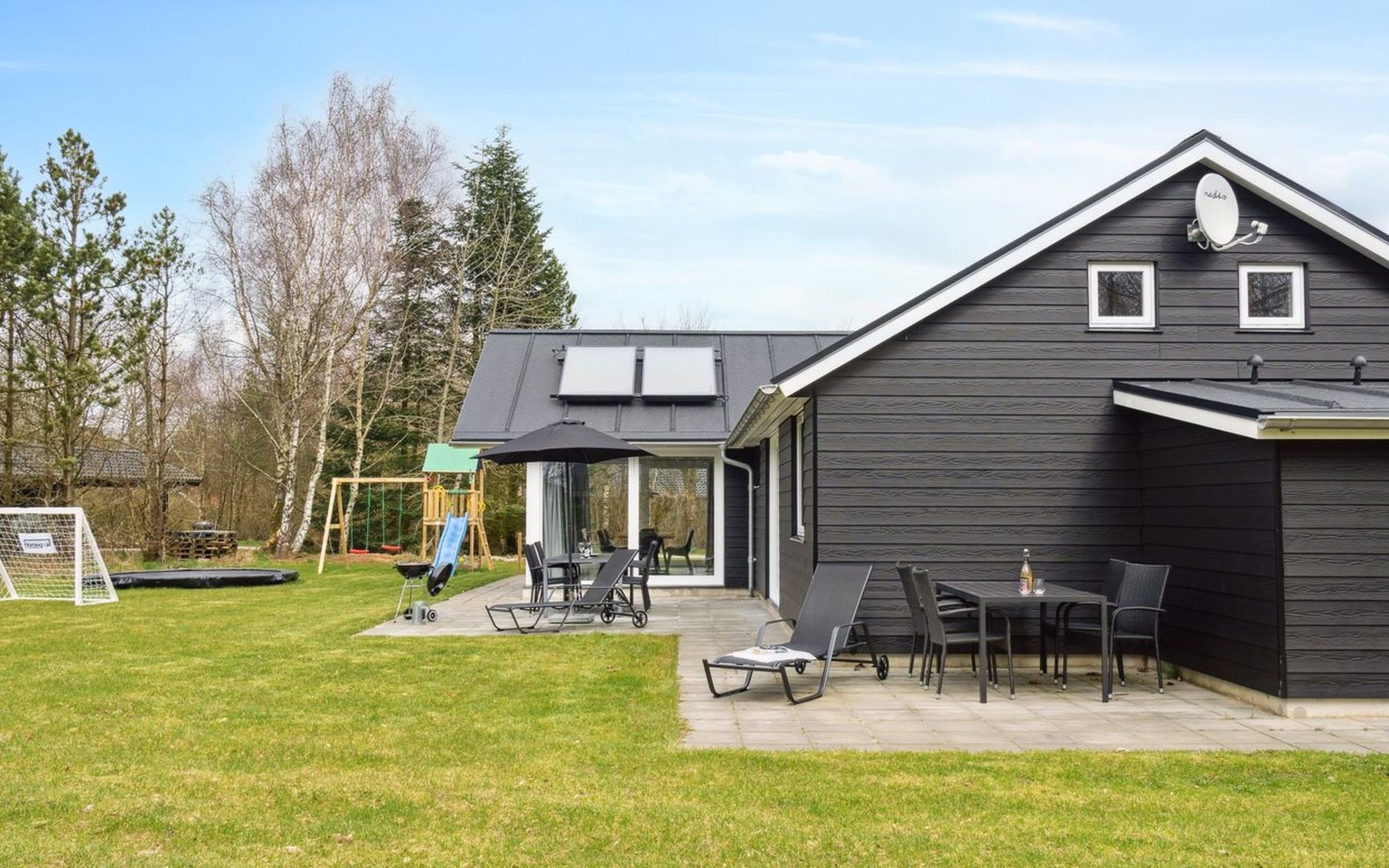 Single-family house, built in 2023. 10.5 km from the sea. Private: natural state property 1'661 m2. (swing). In the house: sauna, table football, washing machine, tumble dryer. Parking at the house. E-charging station. Grocery 600 m. The owner does not accept any youth groups.