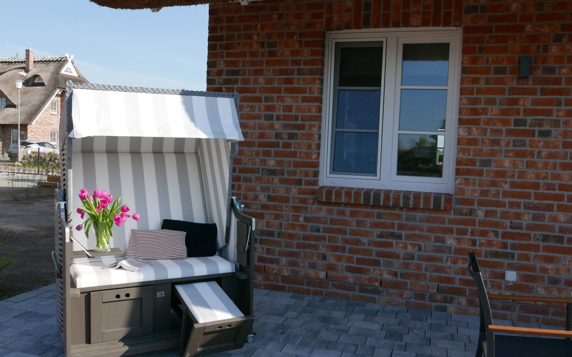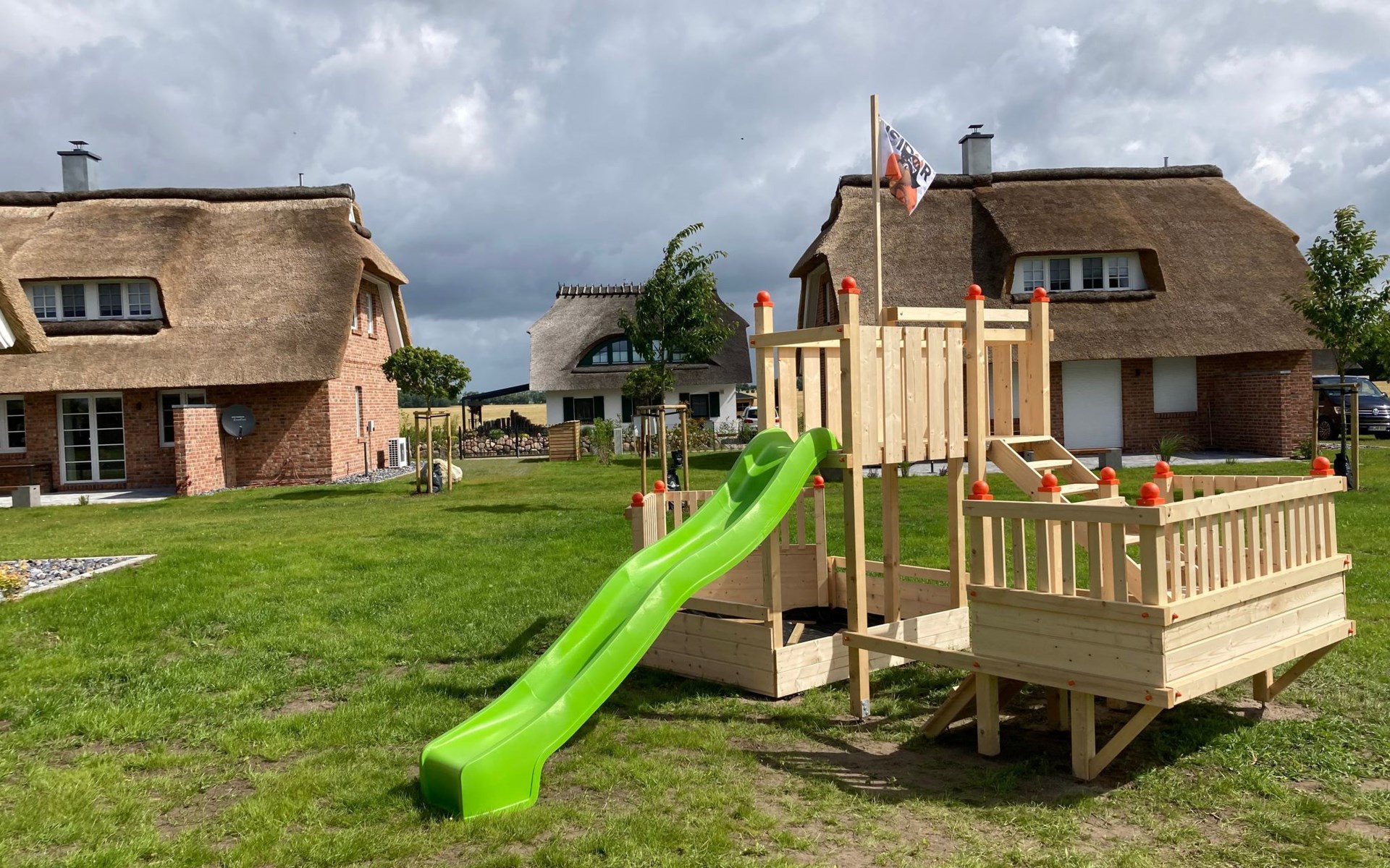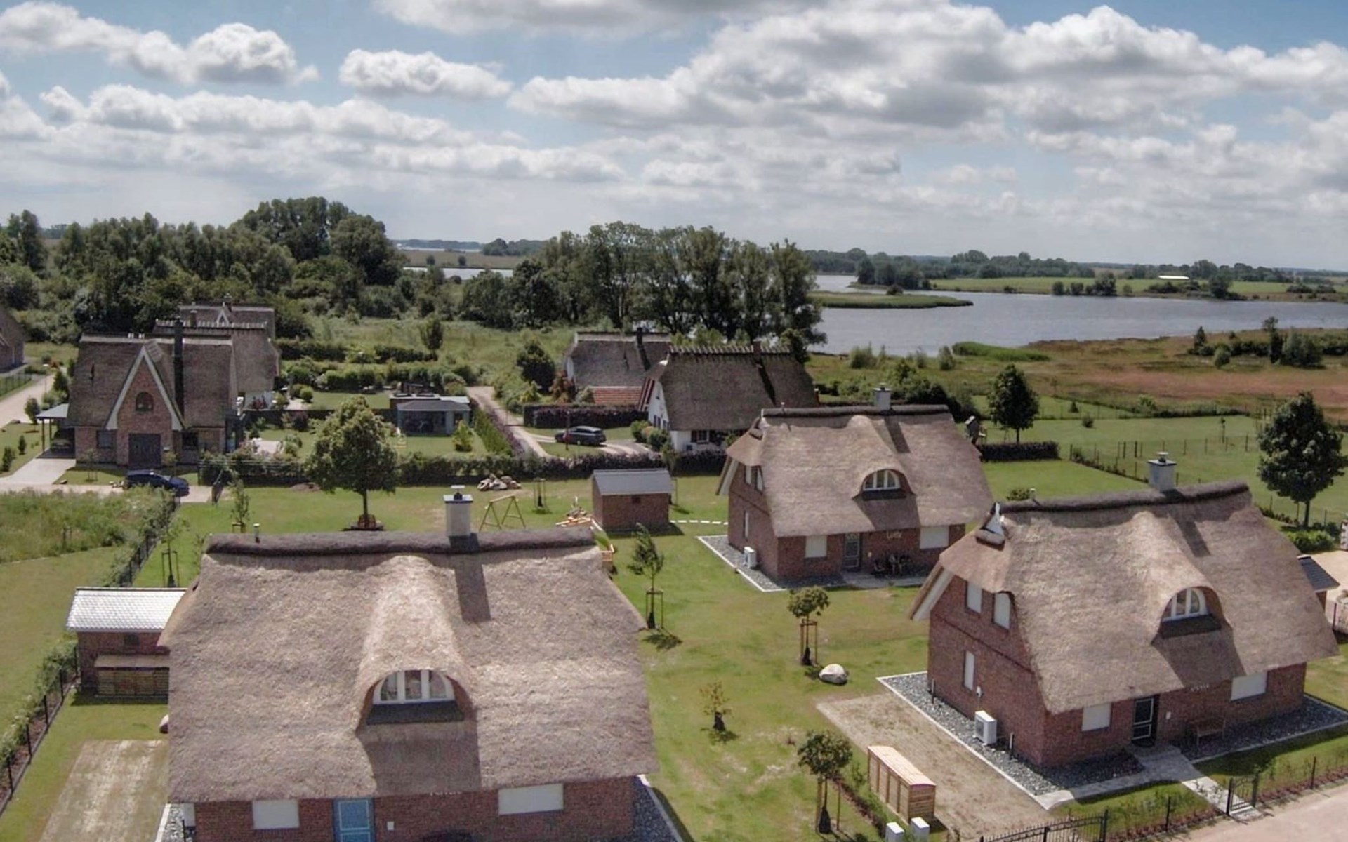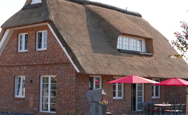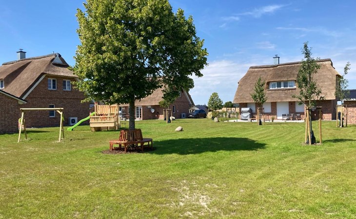 Inside the thatched house, built in 2024, you will find a living space of around 125 m² spread over two floors with fully heated rooms and cosy underfloor heating in all areas. The fully equipped kitchen with cooking island invites you to cook together and flows into a spacious living and dining area with a wood-burning stove and modern electronic equipment including a 55-inch Smart TV. Three individually furnished bedrooms on the upper floor, two comfortable bathrooms with modern fittings and a sauna for free use complete the luxurious living ambience.