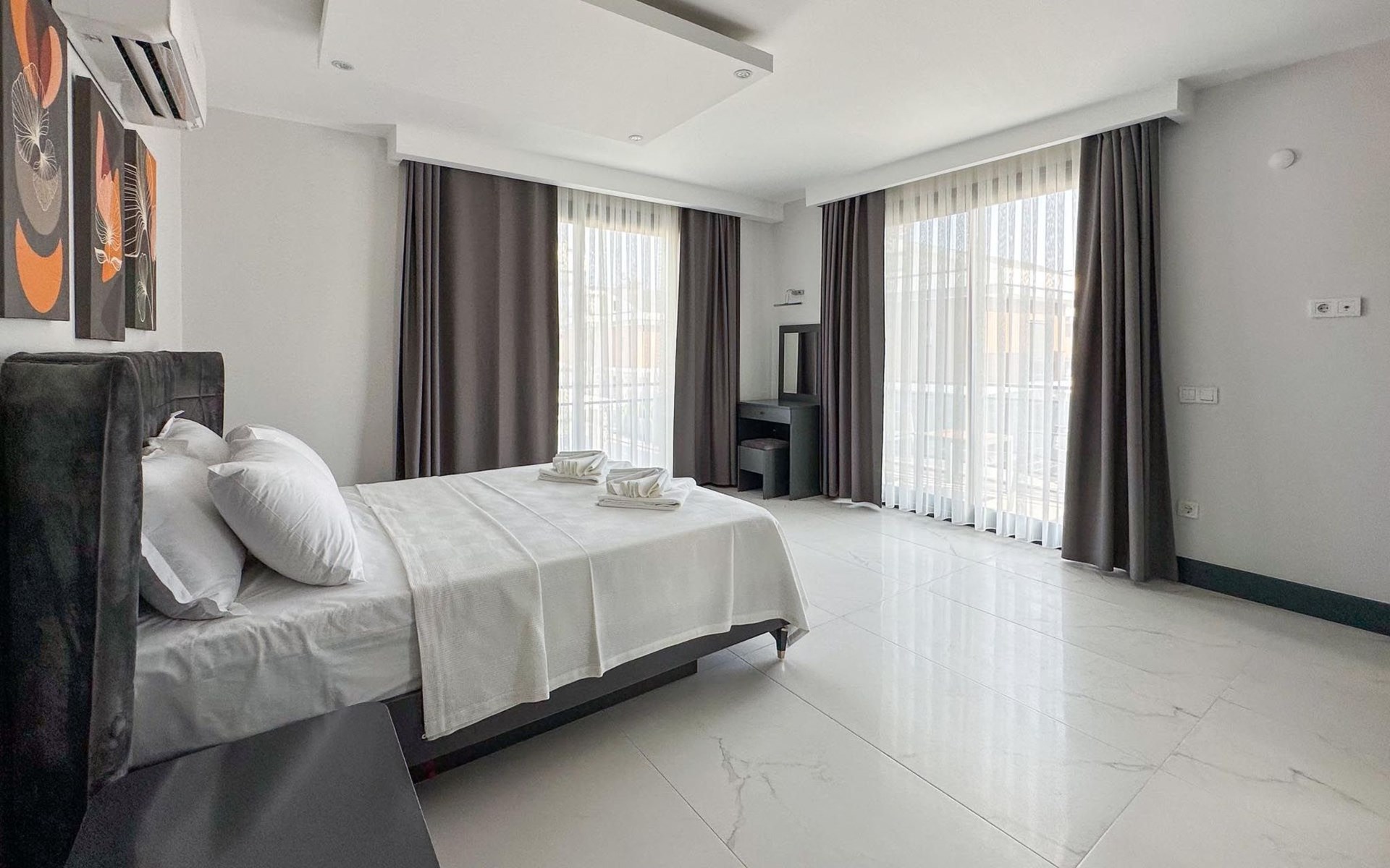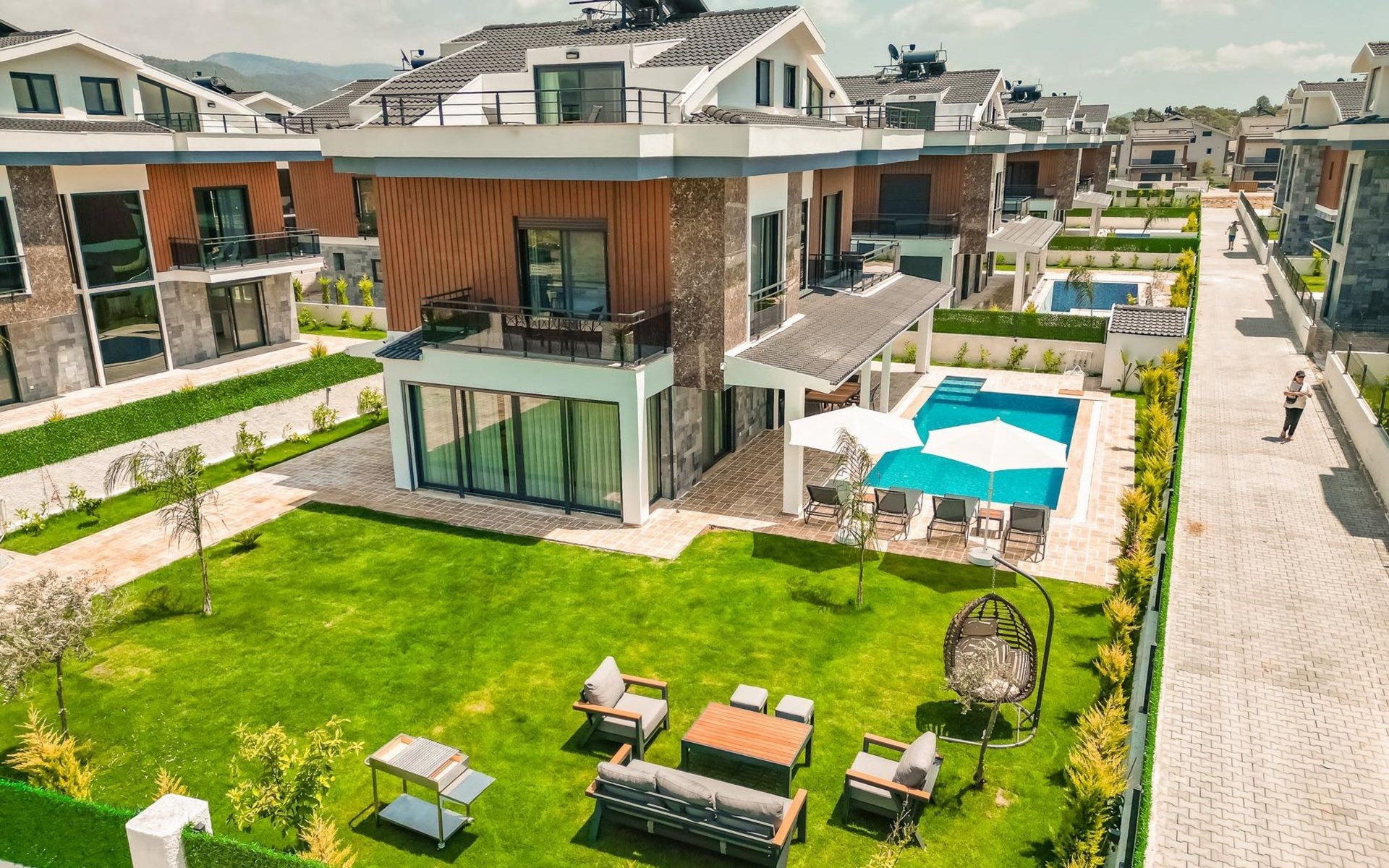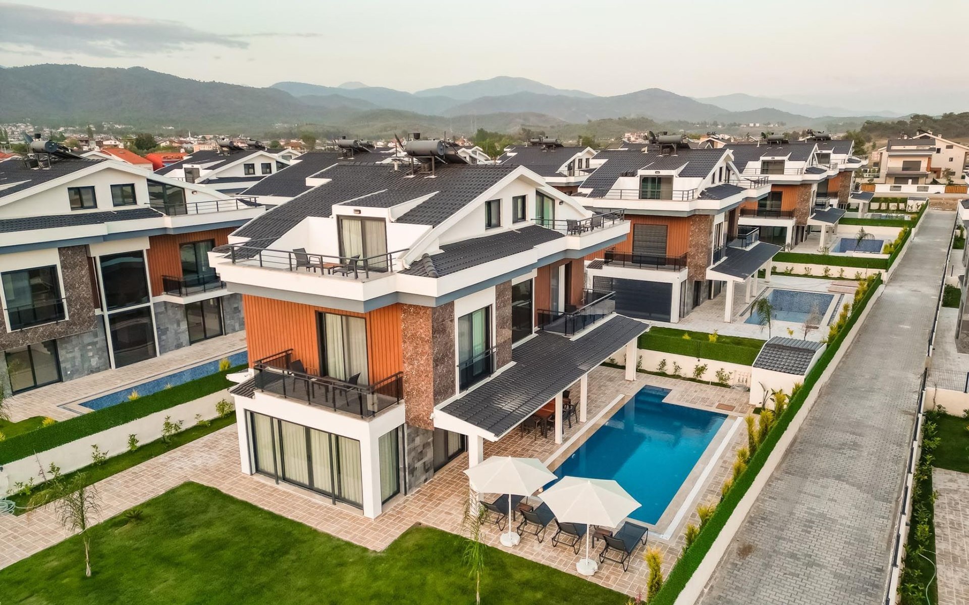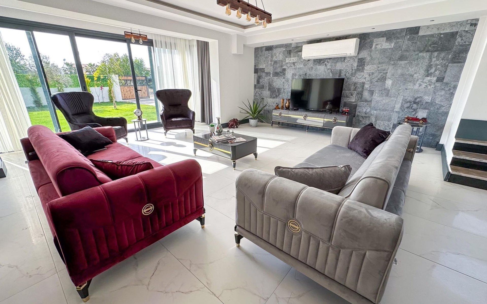 Note: Common pictures have been used in villas 1, 2, 3, 4 and 5, which are all in the same neighbourhood. All our villas have the same features and furniture, only the colours of the furniture may vary. In addition, large families or groups of friends who wish to holiday together in neighbouring villas can rent them together, subject to availability.
