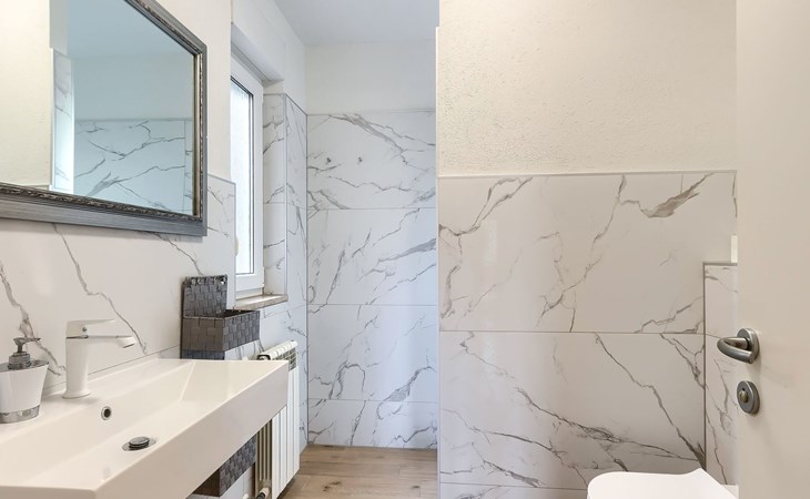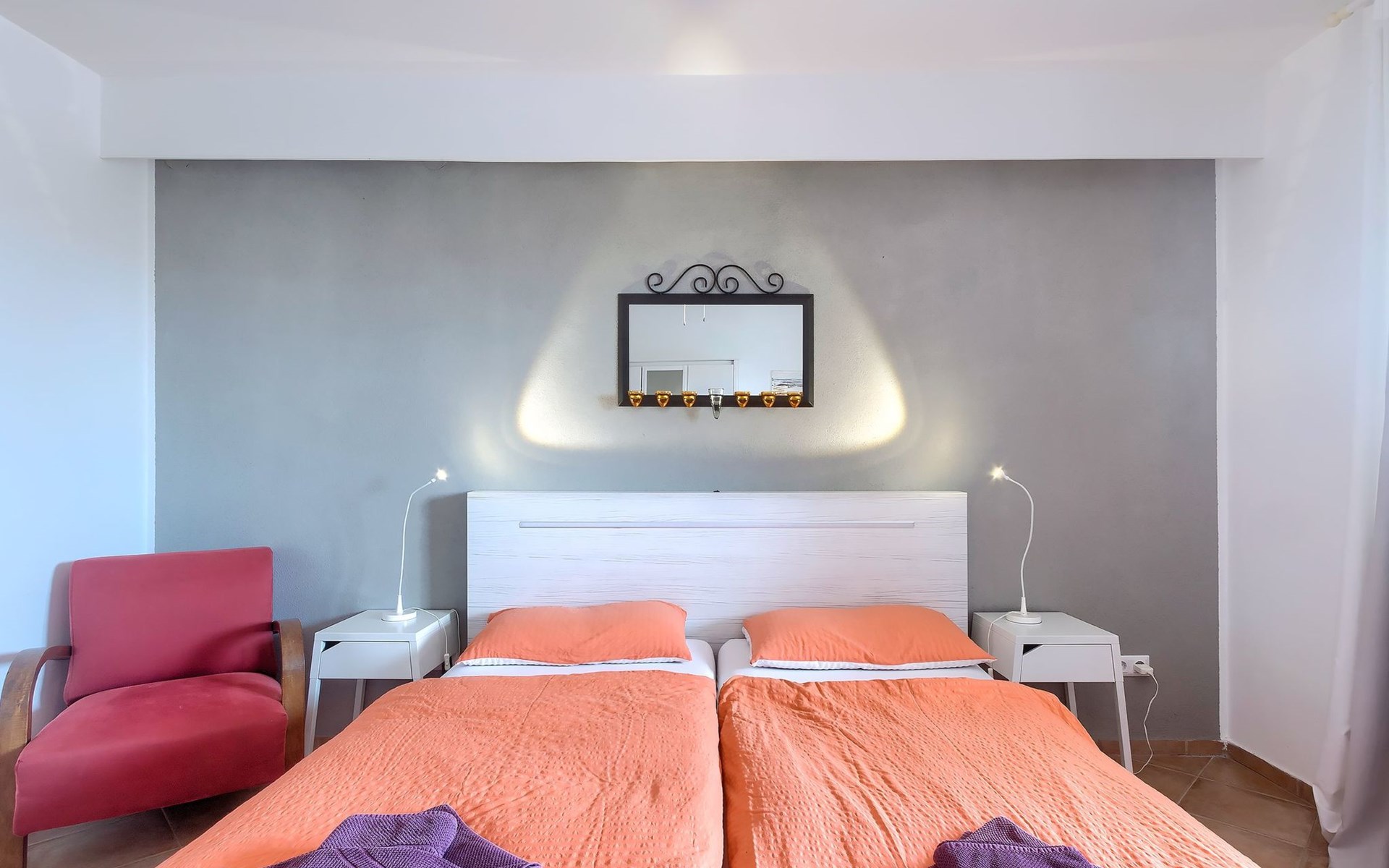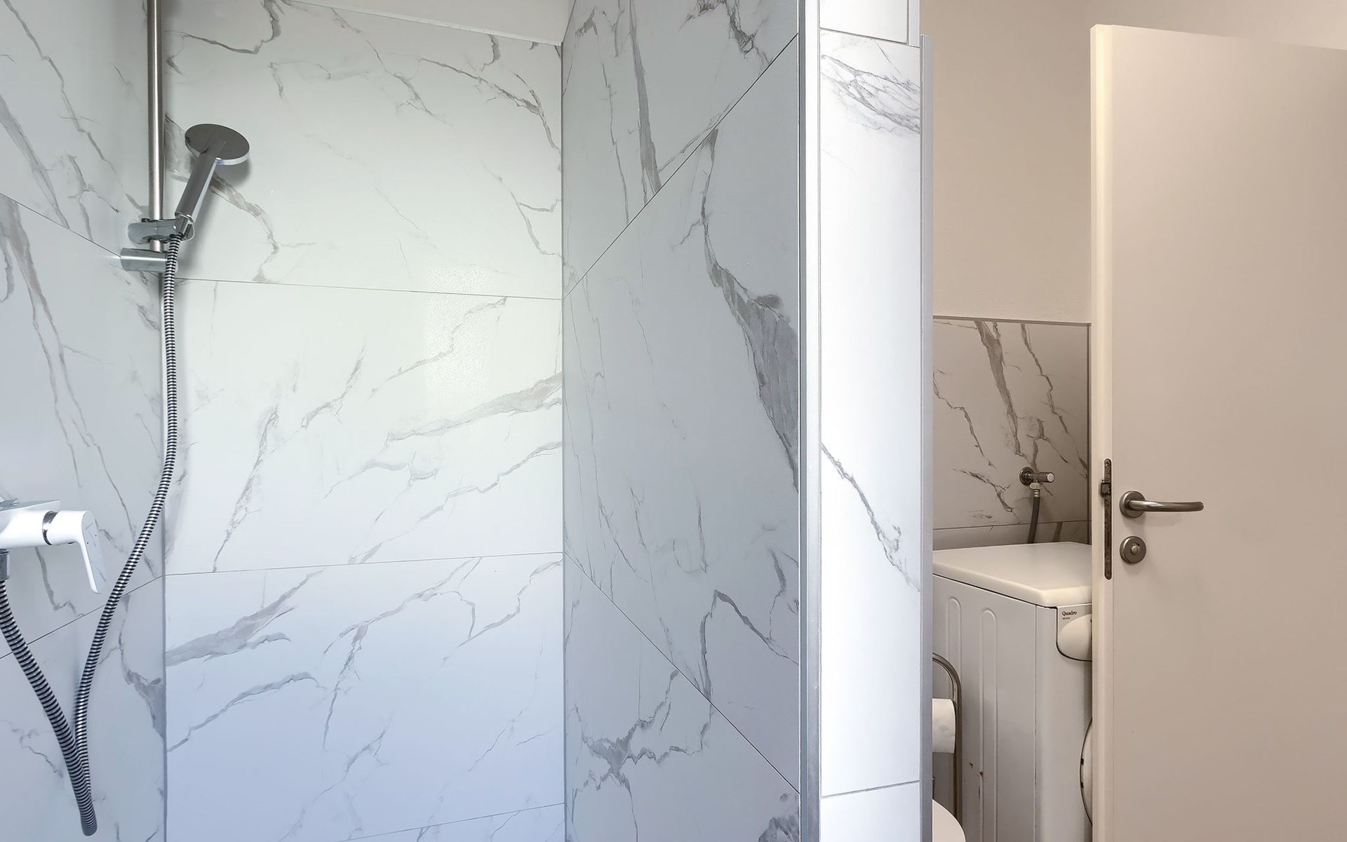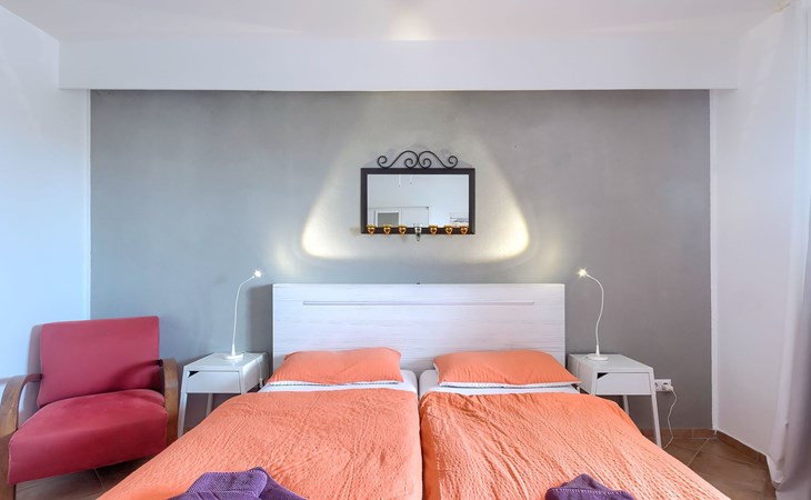 The apartment is on the first floor of the house and provides around 70m² of living space, comprising two separate bedrooms, a kitchen, a shower/WC and a balcony. One bedroom is furnished with a double bed (180 x 200cm), the other with two single beds (90 x 200cm) that can also be joined together as a double bed. If there are only two guests, the second room is set up as a living room. The modern and functionally furnished apartment has two wardrobes, cloakroom space, a fully-equipped kitchen with a gas stove, washing machine, satellite TV and radio alarm. There is Wi-Fi reception.