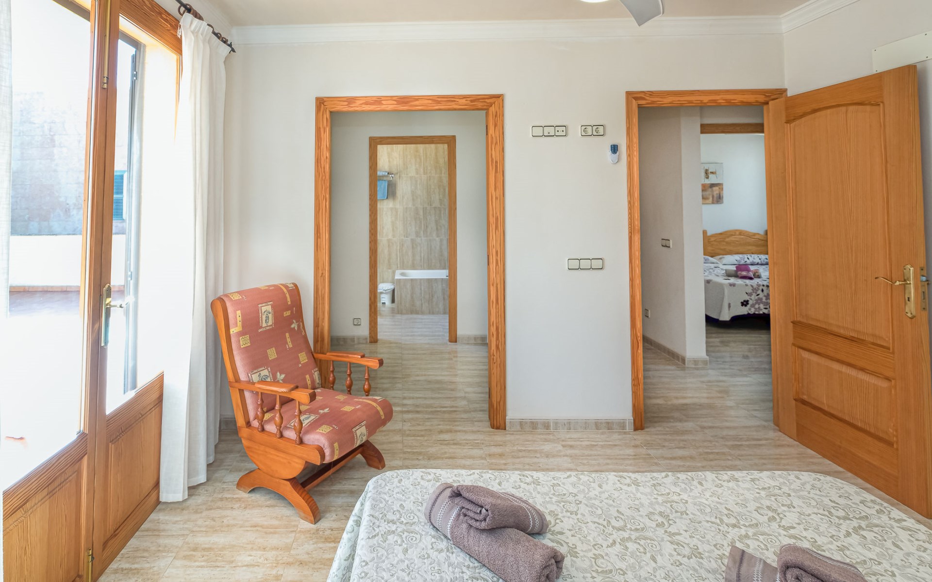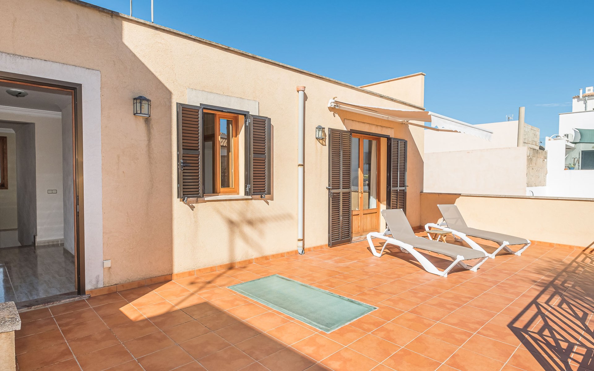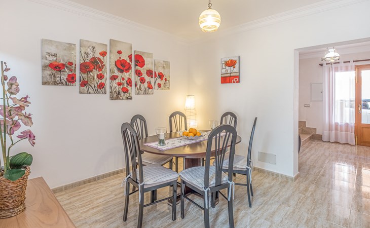 S'Estanyol 2 km from Sa Rapita: Single-family house "Ca'n Bossa", semi-detached. In the district of S'Estanyol 2 km from the centre of Sa Rapita, 200 m from the centre of S'Estanyol, 14 km from the centre of Campos, 200 m from the sea. Private: property 250 m2, courtyard. In the house: storage room for bicycles. Public parking on the road. Shop, restaurant 200 m, bus stop "S'estanyol" 130 m, sandy beach "Es Trenc" 4 km, park "S'Estanyol" 400 m. Marina 200 m. Hiking paths: Sa Rápita - Cala Pi 300 m. Please note: car recommended.