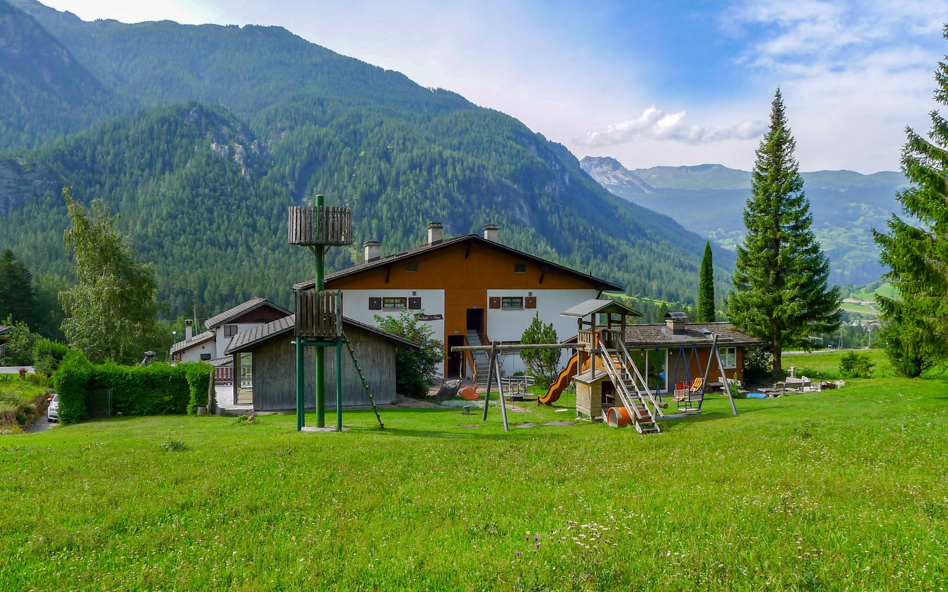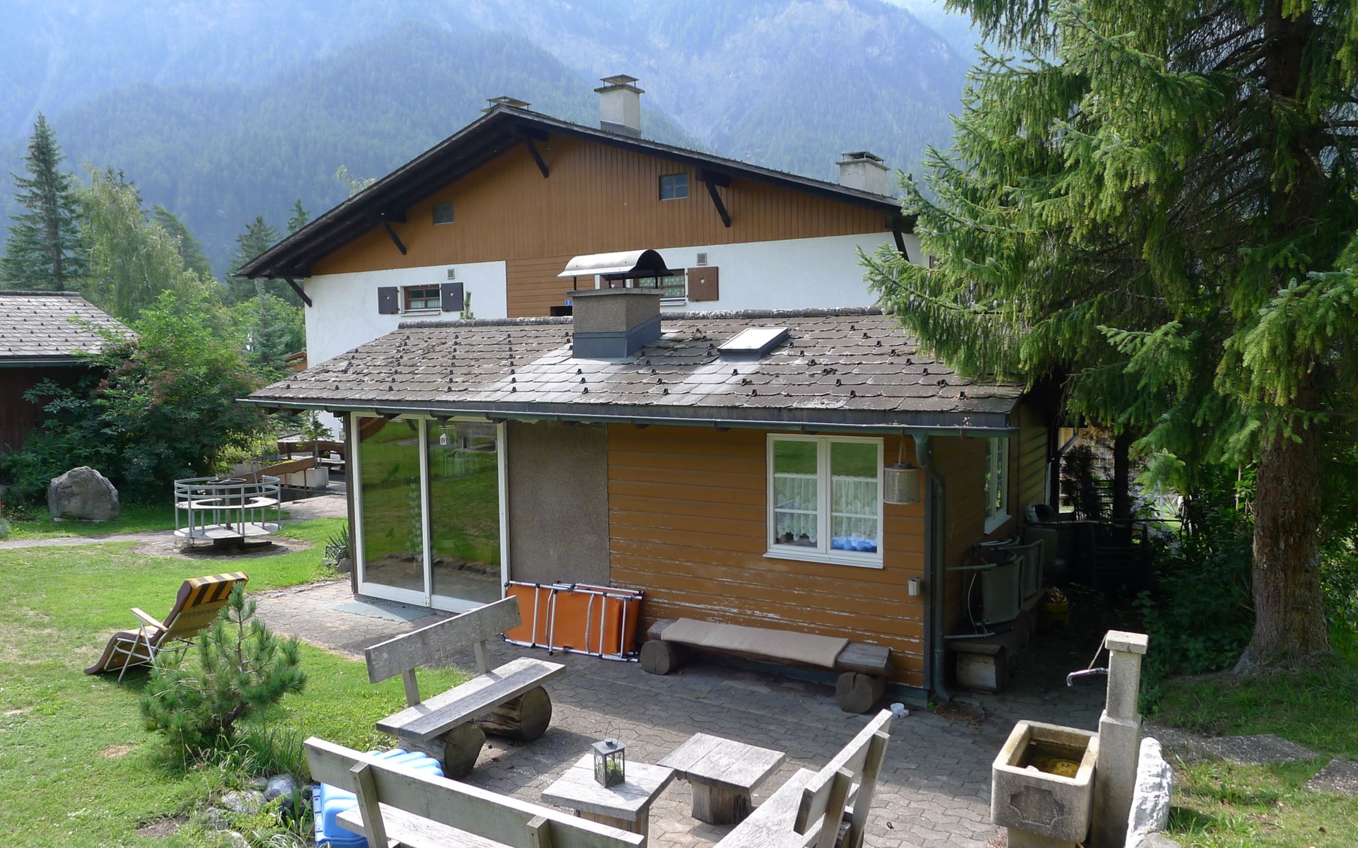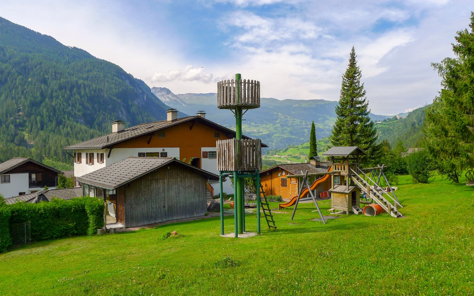 Surava 4 km from Tiefencastel: 942 meters above sea level In the heart of Graubünden, in the middle of Ela Park, on the Bernina Express line between the small, cozy mountain villages of Surava and Alvaneu Bad. With a view of the Albula Valley. A holiday home lies surrounded by the attractions of the Ela park on the sunny hill between the two mountain villages. Nationwide well-known sights known from the Tagesschau like Landwasserviadukt, the castle ruin Belfort, from the living room visible Crap Furo, (Monumental rock in the center of Graubünden), the Schobstobel waterfall and the thermal and sulfur bath with Golf club in Alvaneu are just some of the wonderful sights, which are reachable from this house by foot even by poor hikers. It is a little crowded paradise for hikers and nature lovers with medium and high mountain hikes from the house. Many of the sights are also accessible by car and public transport. Child friendly, simple chalet "Fricktalerhuus", 3 storeys, surrounded by trees and meadows. Outside the resort, 1 km from the centre, in a quiet, sunny position on a slope, 11 km from the skiing area, in the countryside. For shared use: large garden, lawn for sunbathing. Patio, garden furniture, barbecue, barbecue house, children's playground. In the house: central heating system. Motor access to the house. Parking at the house. Grocery 4 km, restaurant 500 m, bus stop 50 m, railway station "Tiefencastel" 4 km, thermal baths "Alvenau Bad" 3 km. Golf course (18 hole) 3 km, walking paths from the house 50 m, cable car 15 km, ski lift 11 km, skisport facilities 11 km, slopes 11 km, ski rental 11 km, ski school 11 km, cross country ski track, ice rink 500 m. Nearby attractions: Chur, Bahnmuseum Bergün. Well-known ski regions can easily be reached: Lenzerheide-Arosa 11 km, Savognin 13 km, Bergün 13 km. Hiking paths: Parc Ela. Please note: car recommended. Suitable for families. Additional accommodations can be booked. Property ref. CH7472.100 is situated on the same property. Perfect starting point for hiking, biking or enjoying nature and peace! The children's playground as well the large garden grill round off the idyllic holiday feeling for the whole family.