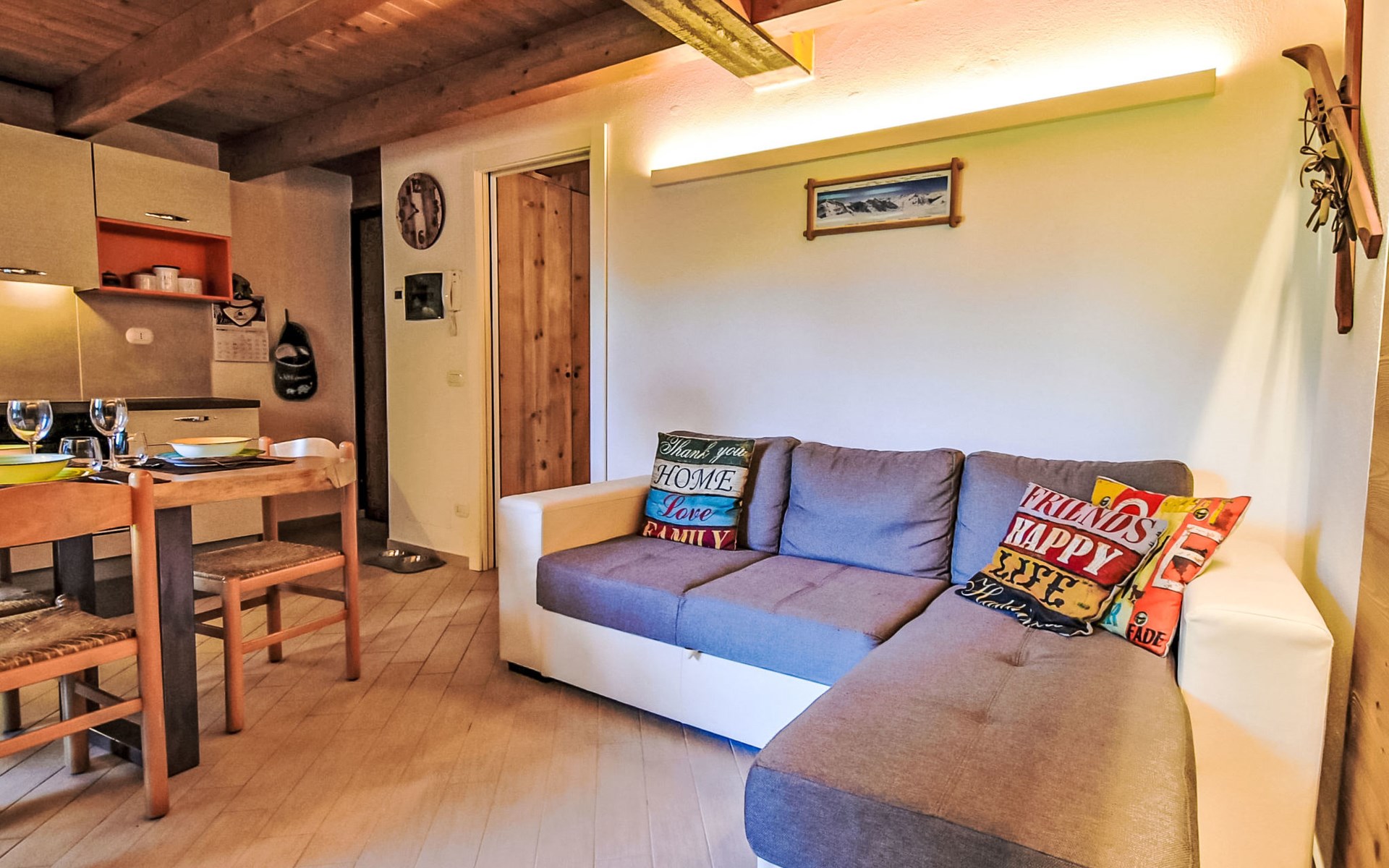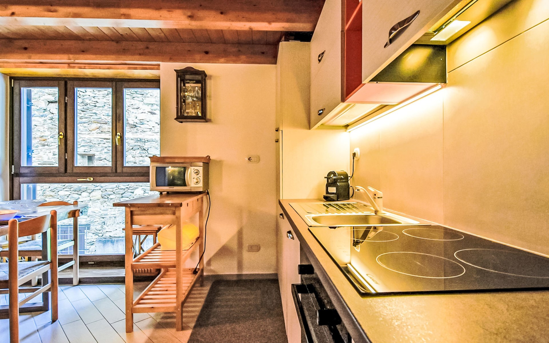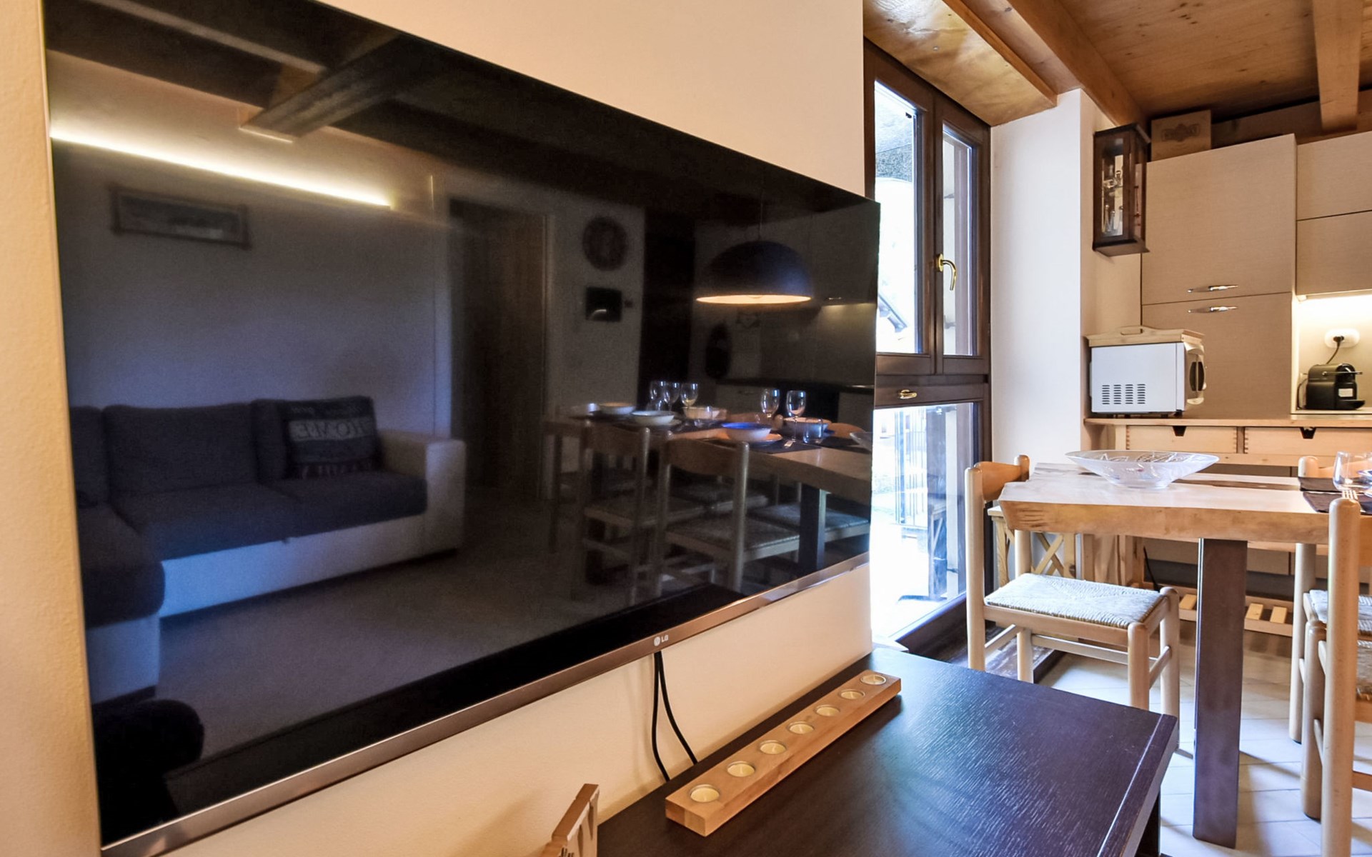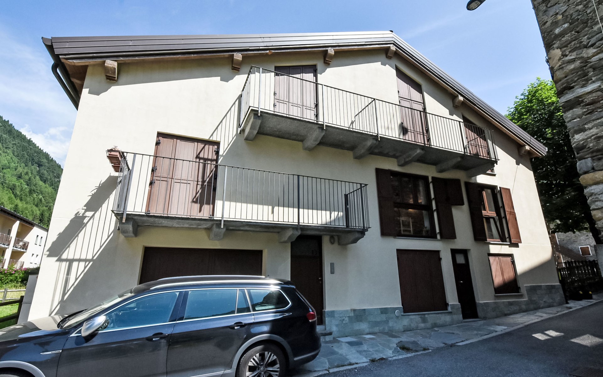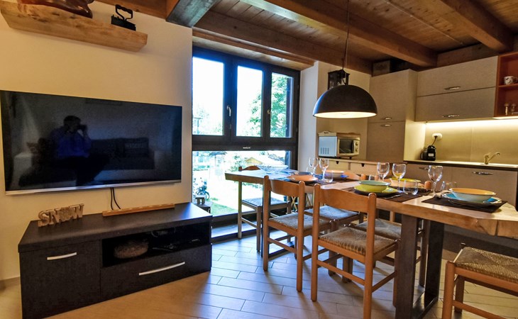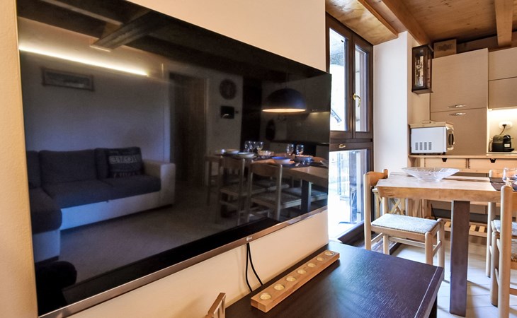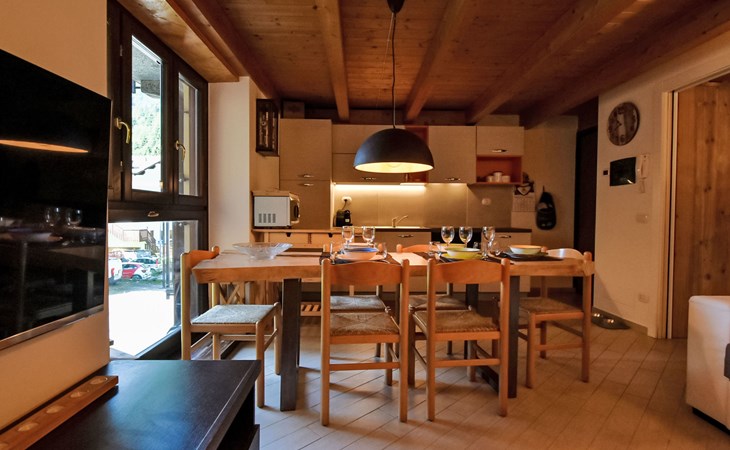 Small, comfortable apartment house "Ai Tini", 1'071 m a.s.l., 2 storeys. 400 m from the centre of Campodolcino, in the residential district, 1.5 km from the skiing area. In the house: central heating system. Public parking 250 m on the road. Supermarket 500 m, restaurant 150 m, bar, café 400 m, bus stop 150 m. Chair lift 1.5 km. Well-known ski regions can easily be reached: Madesimo 7 km, Passo del Maloja (CH) 44 km, Saint Moritz (CH) 60 km. Well-known lakes can easily be reached: Lago di Como 37 km. Hiking paths: Via Spluga, Vie dei Carden, Caurga della Rabbiosa, Sentiero del Belvedere. Please note: Loading and unloading of baggage is possible at the holiday house. Neighbourhood highly sensitive to noise. Quietness and good behaviour expected.
