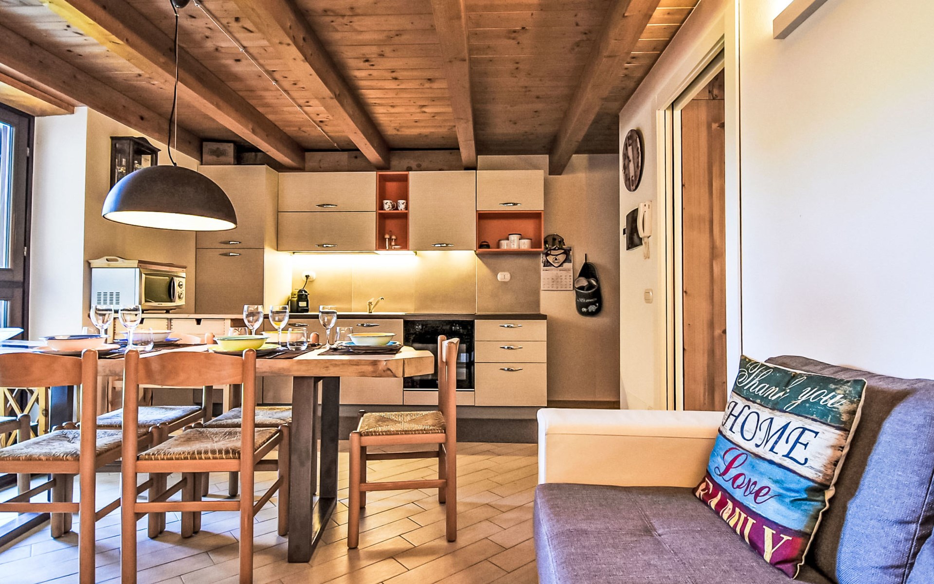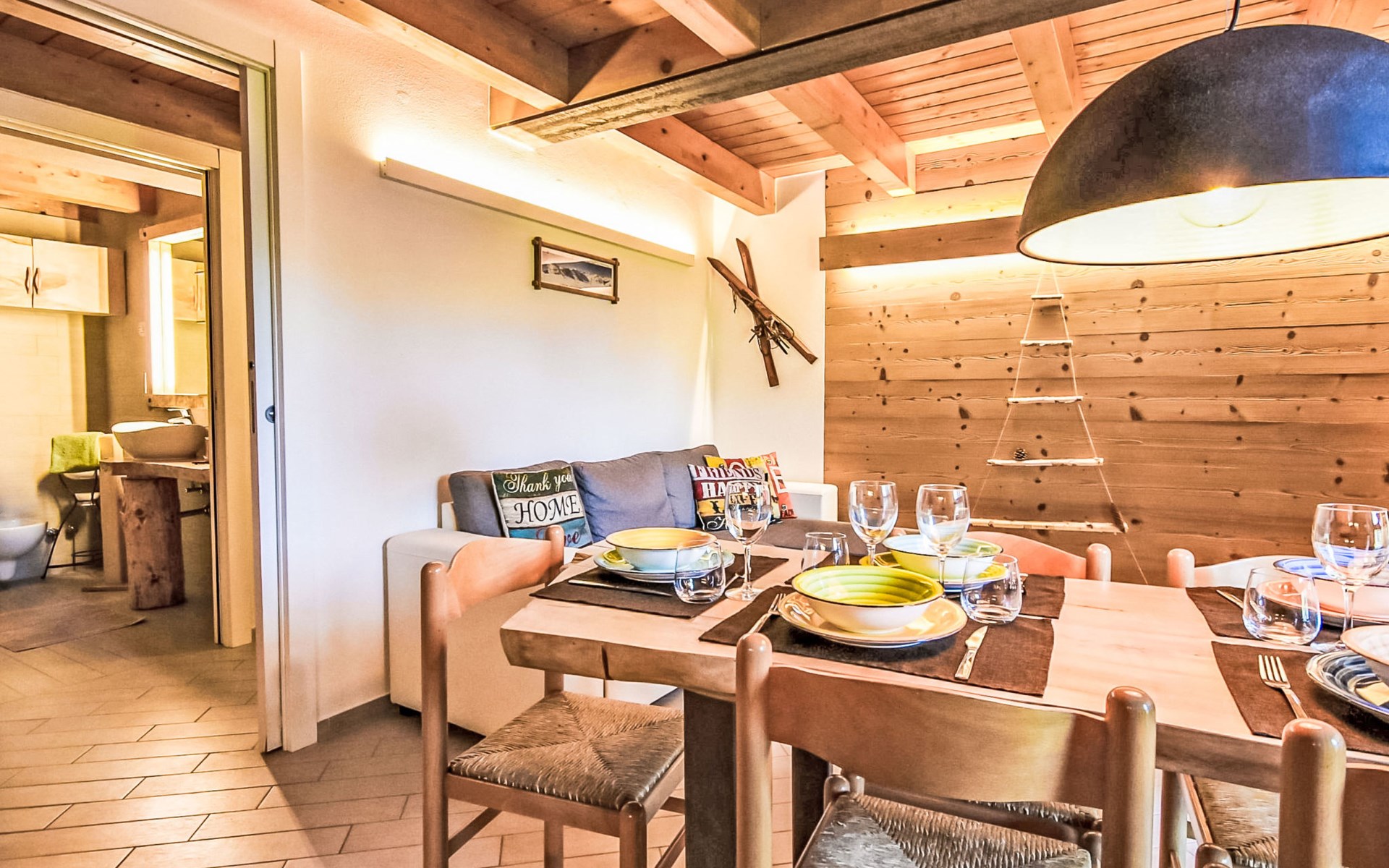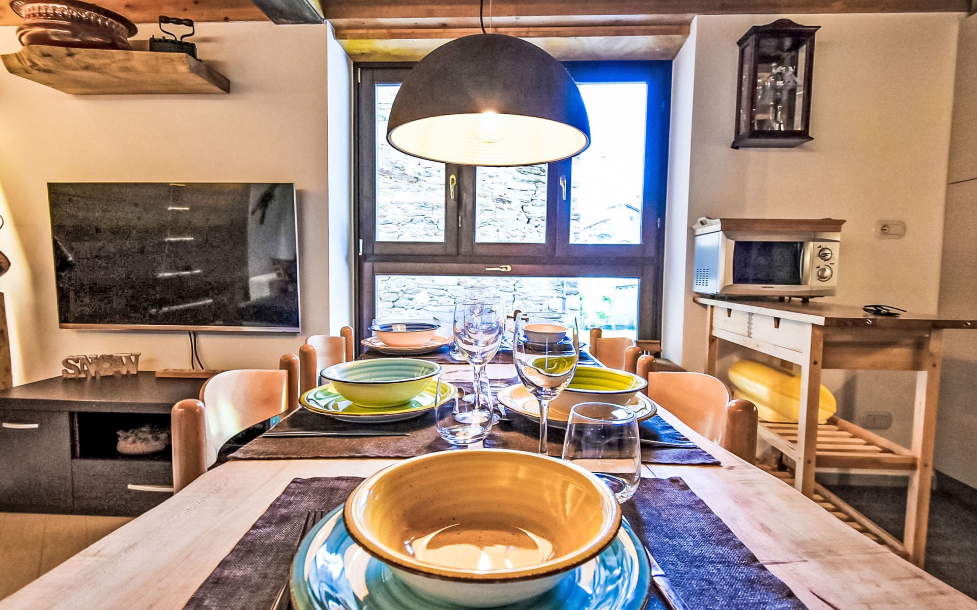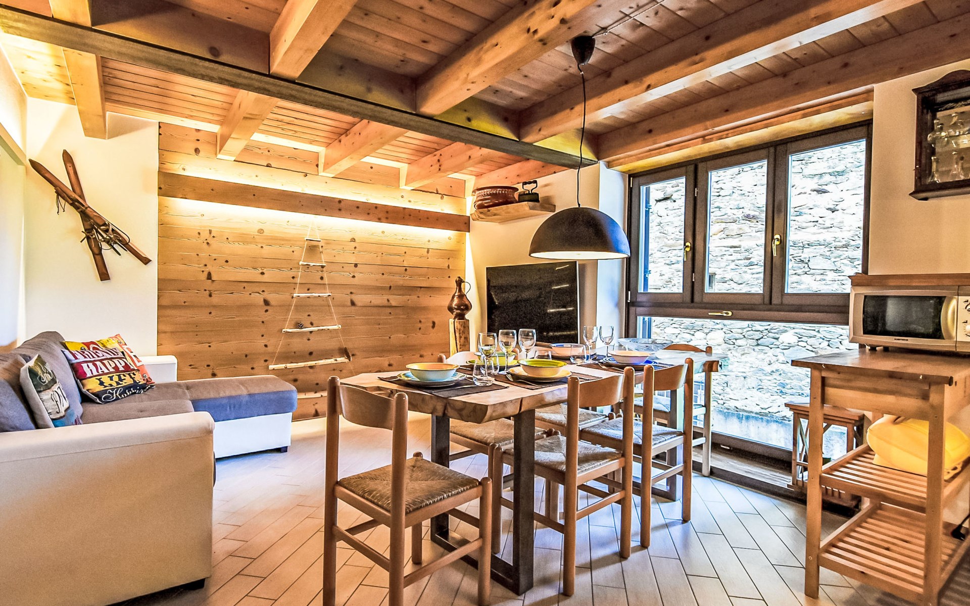 Small, comfortable apartment house "Ai Tini", 1'071 m a.s.l., 2 storeys. 400 m from the centre of Campodolcino, in the residential district, 1.5 km from the skiing area. In the house: central heating system. Public parking 250 m on the road. Supermarket 500 m, restaurant 150 m, bar, café 400 m, bus stop 150 m. Chair lift 1.5 km. Well-known ski regions can easily be reached: Madesimo 7 km, Passo del Maloja (CH) 44 km, Saint Moritz (CH) 60 km. Well-known lakes can easily be reached: Lago di Como 37 km. Hiking paths: Via Spluga, Vie dei Carden, Caurga della Rabbiosa, Sentiero del Belvedere. Please note: Loading and unloading of baggage is possible at the holiday house. Neighbourhood highly sensitive to noise. Quietness and good behaviour expected.