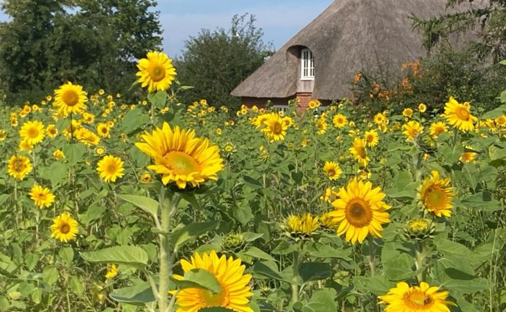 Parts of the thatched-roof house are more than 200 years old. It was completely renovated in 2018. A new kitchen was installed in 2024.