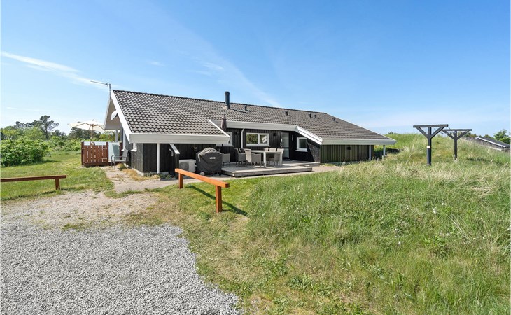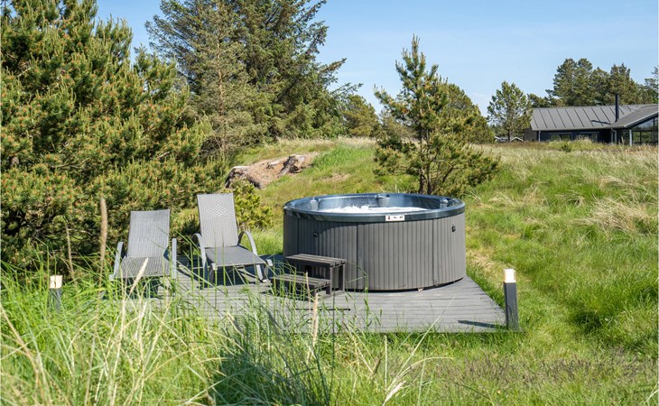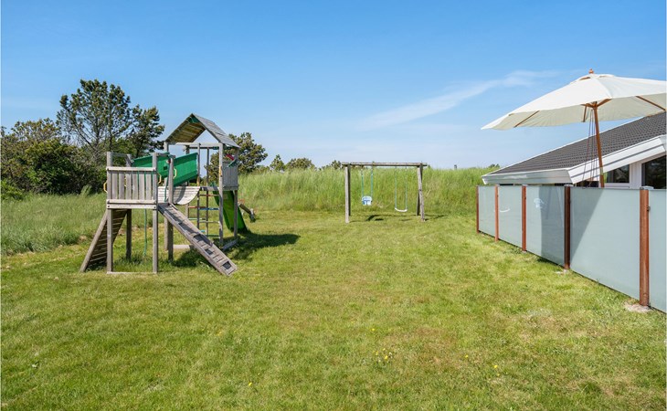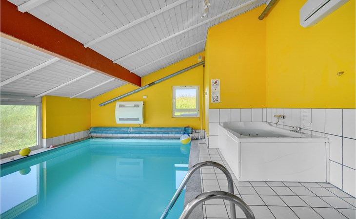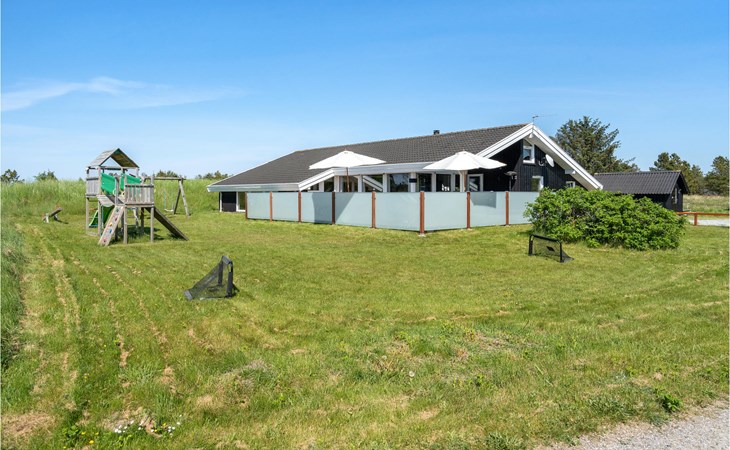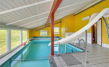 This invitingly furnished vacation home is situated on a large, hilly dune plot near the beautiful Tversted beach. The house offers enough space for several families. Next to the bedrooms there is a mezzanine with two more sleeping accommodations. Both bathrooms and the pool area have underfloor heating. In the pool area there is swimming pool, whirlpool, children's pool and a large water slide. The bright living room is furnished with fireplace and good furniture. It is surrounded by large terraces where you have sun from morning to night. Nice playground on the property.