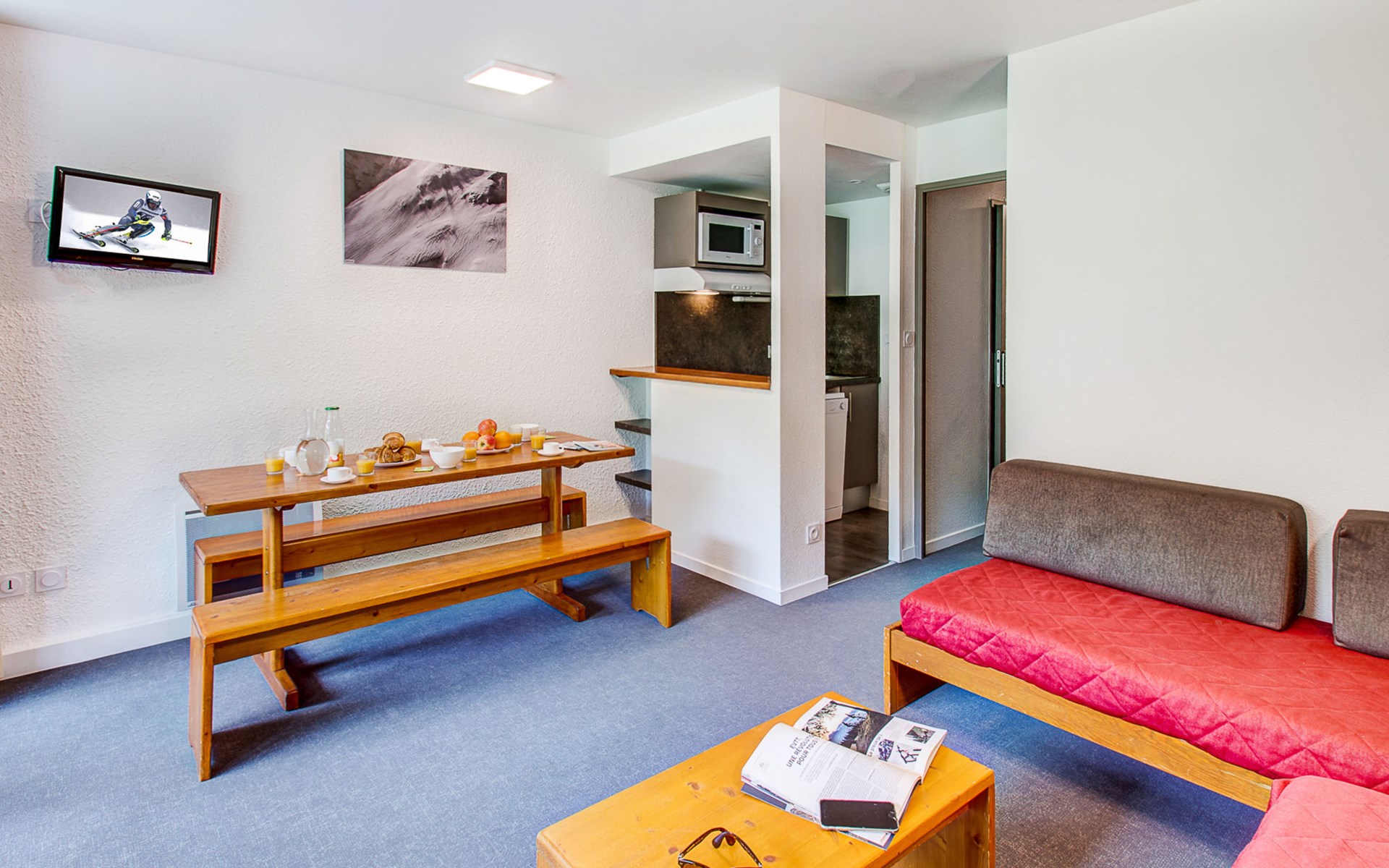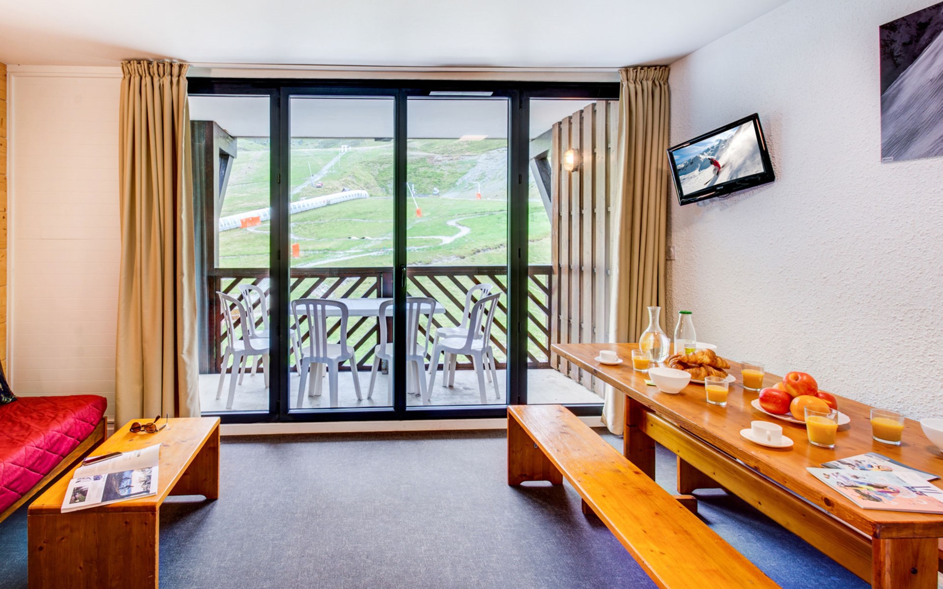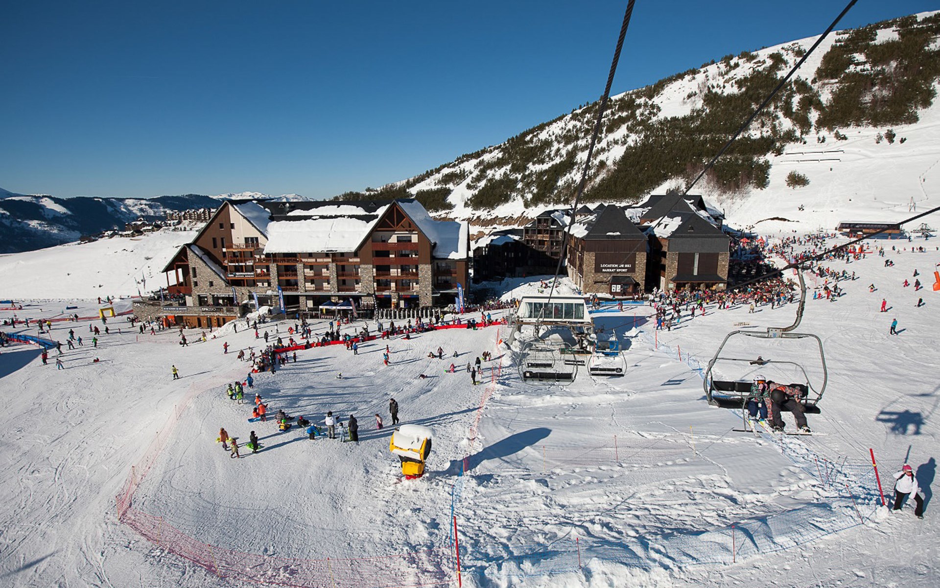 Access included to "Le Spassio" spa center (swimming pool and sauna) 100m from the residence - closed Mondays and Fridays in low season and Fridays in high season open from 1 to 7 p.m. Residence "Résidence Privilège", 4 storeys, renovated. 109 apartments in the residence. In the resort Peyragudes, 100 m from the skiing area. For shared use: indoor pool (12 x 8 m, depth 140 cm, pool opening hours: 13:00-19:00). In the complex: reception, WiFi (extra). Lift, storage room for skis, central heating system, washing machine, tumble dryer (for shared use, extra). Motor access (mountain road). In Winter: please take snow chains. Parking at the house. Shop, grocery, supermarket, restaurant 200 m, railway station "Luchon" 15 km. Chair lift, skisport facilities, slopes 100 m. Nearby attractions: Luchon 15 km, Tarbes 75 km, Toulouse 140 km. Well-known ski regions can easily be reached: Peyragudes. Hiking paths: Les Pyrénées. Please note: car recommended. In case of good snow conditions, the house is accessible on skis. The photograph shows a typical example. The holiday properties may differ in living space, floorplan, equipment and furnishing.