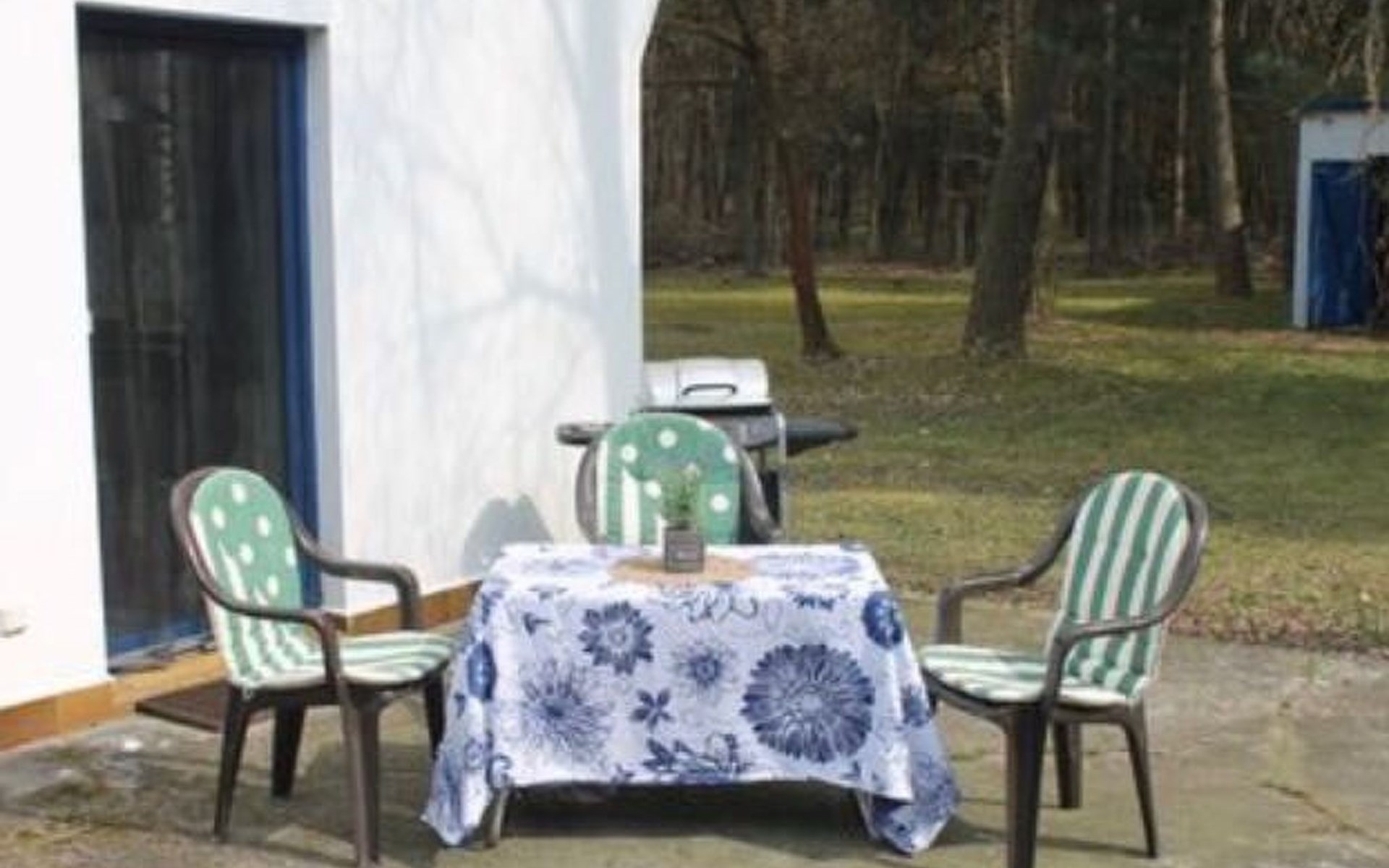 The tree-lined garden invites you to relax or play with your dog.