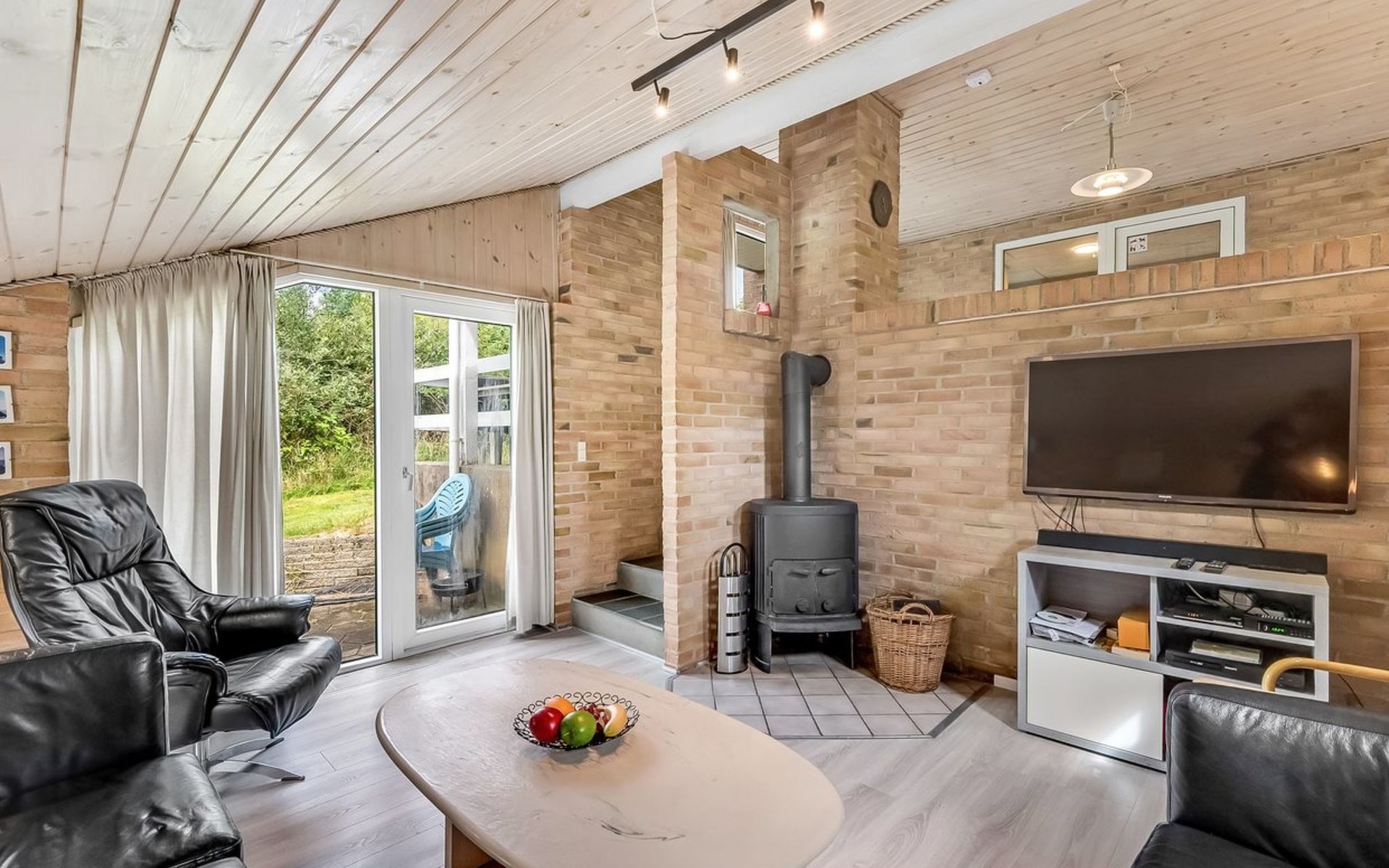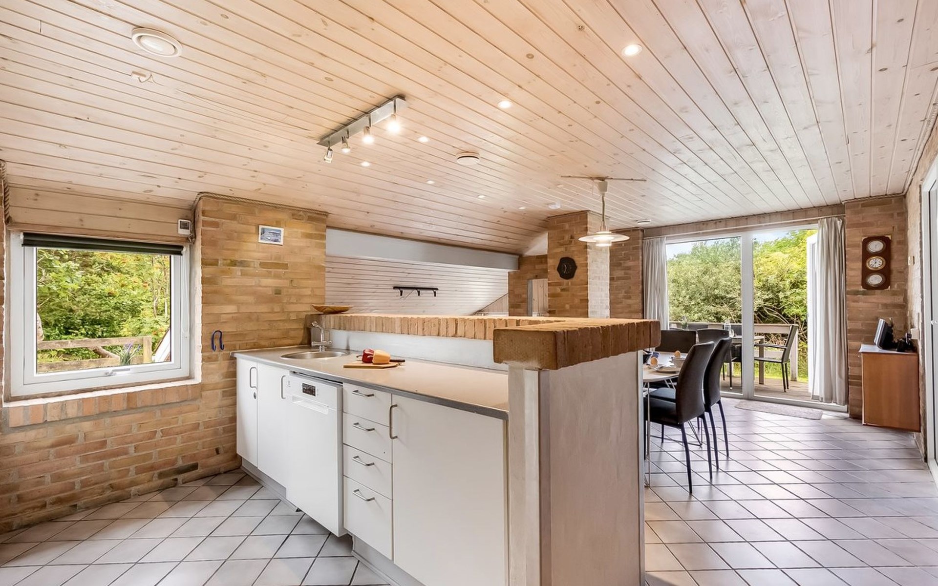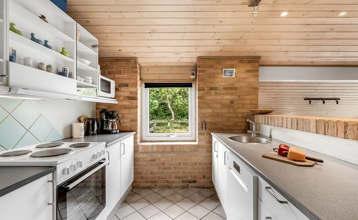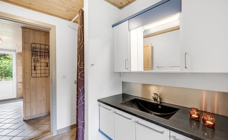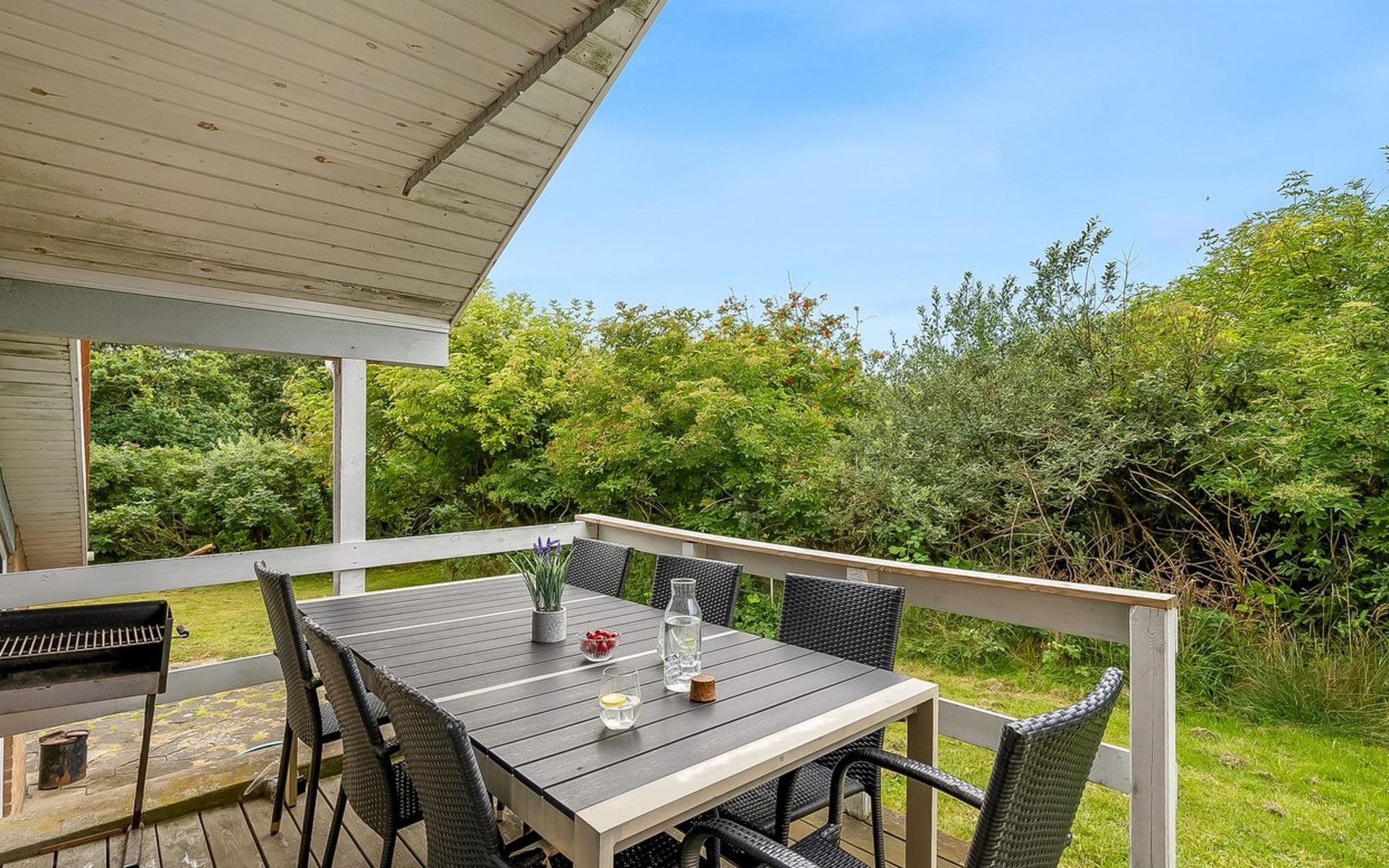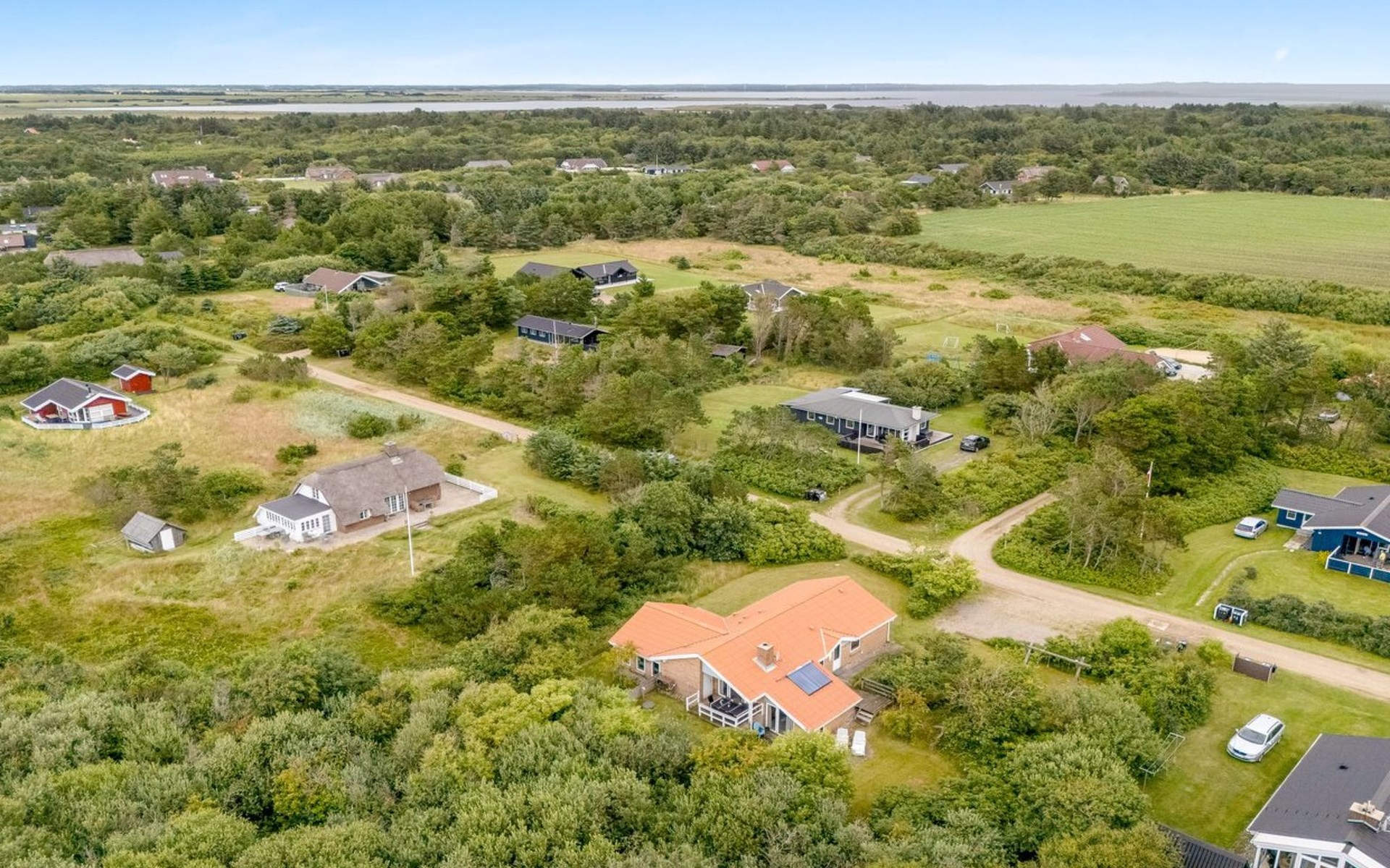 Single-family house, built in 1993. 1.3 km from the sea. Private: natural state property 2'002 m2, indoor pool (3 x 5 m, 1'7.6 m2, depth 120 - 120 cm). Terrace (47 m2), children's playground (swing). In the house: sauna, washing machine, tumble dryer. Parking at the house. Grocery 2.4 km. Golf course 500 m. The owner does not accept any youth groups.