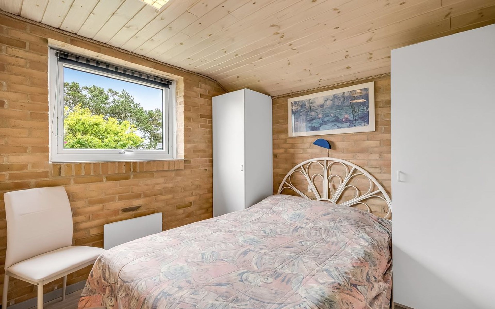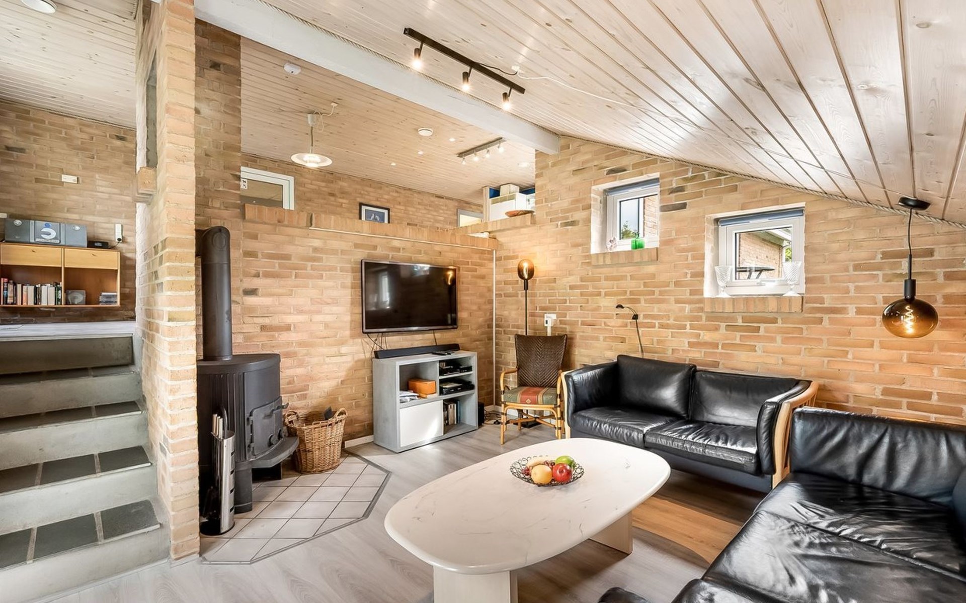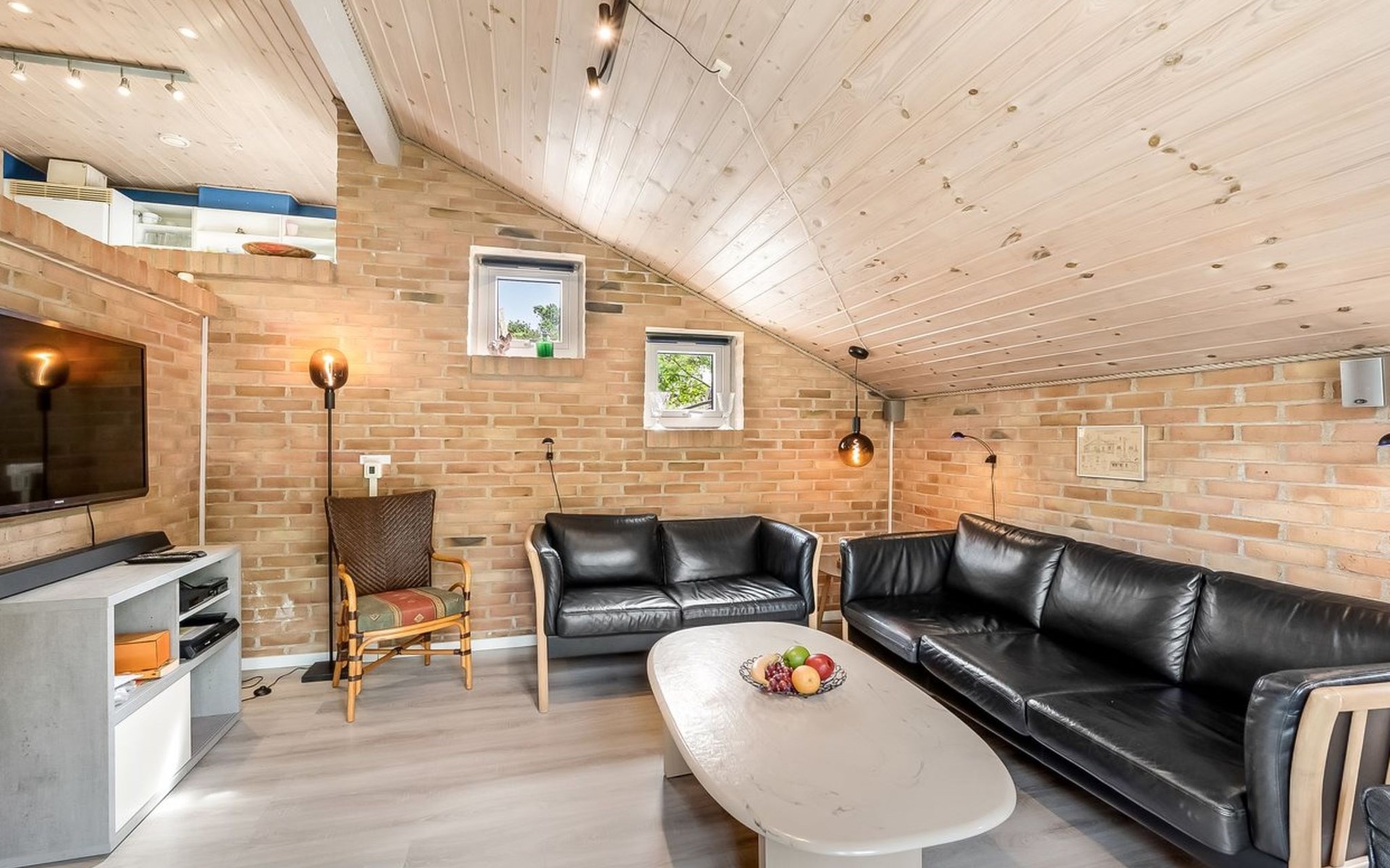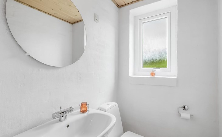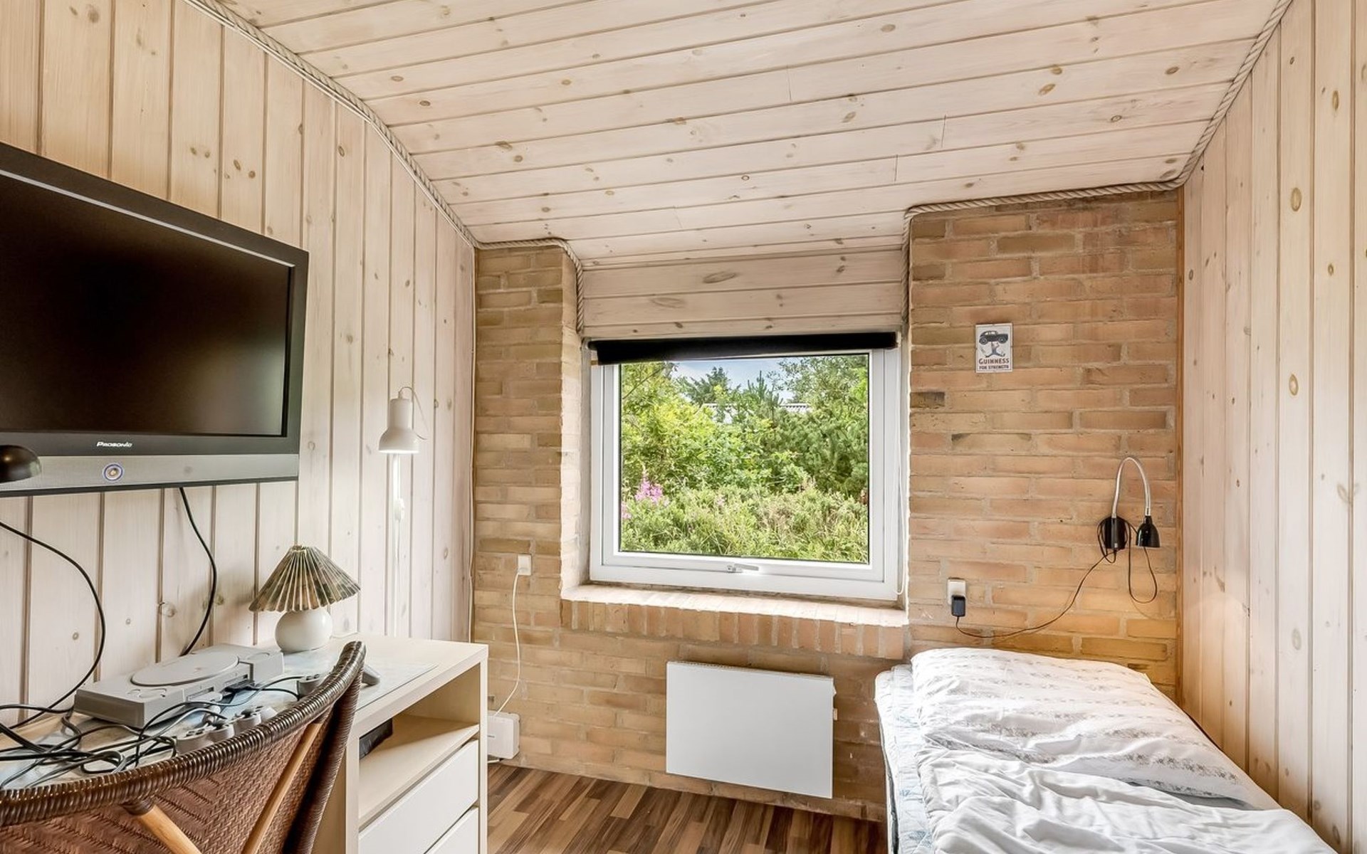 Single-family house, built in 1993. 1.3 km from the sea. Private: natural state property 2'002 m2, indoor pool (3 x 5 m, 1'7.6 m2, depth 120 - 120 cm). Terrace (47 m2), children's playground (swing). In the house: sauna, washing machine, tumble dryer. Parking at the house. Grocery 2.4 km. Golf course 500 m. The owner does not accept any youth groups.