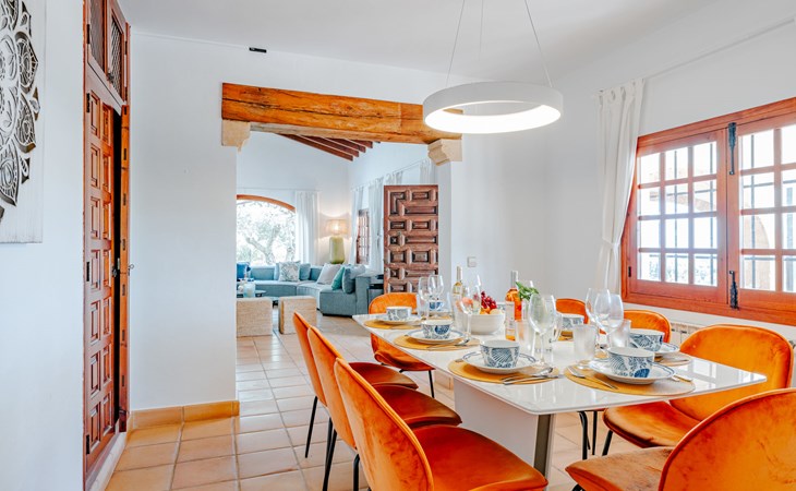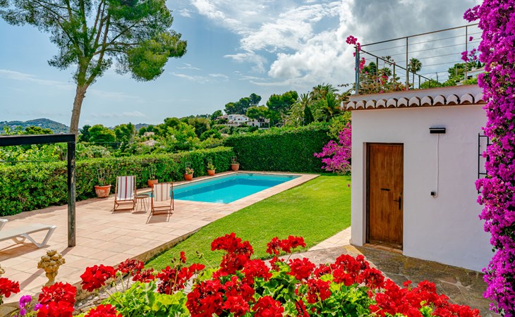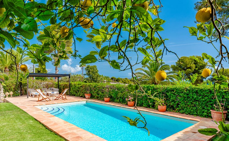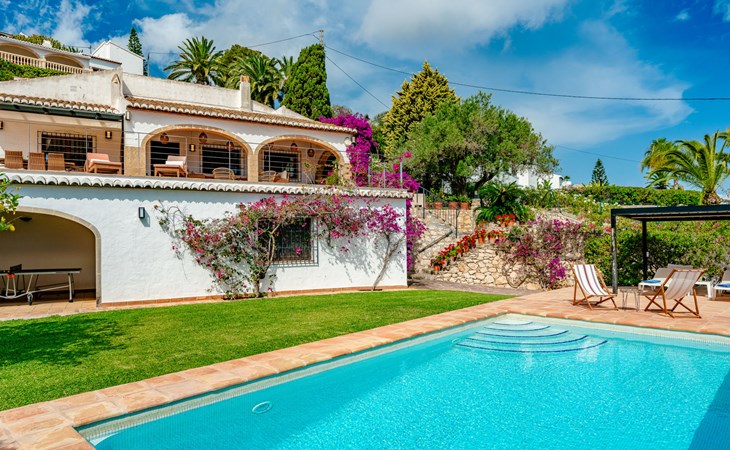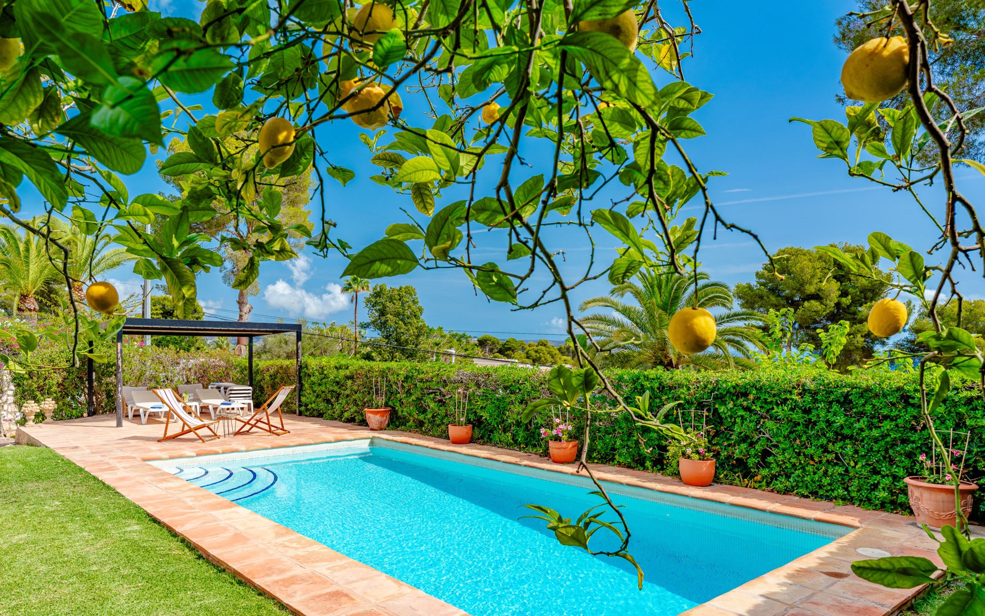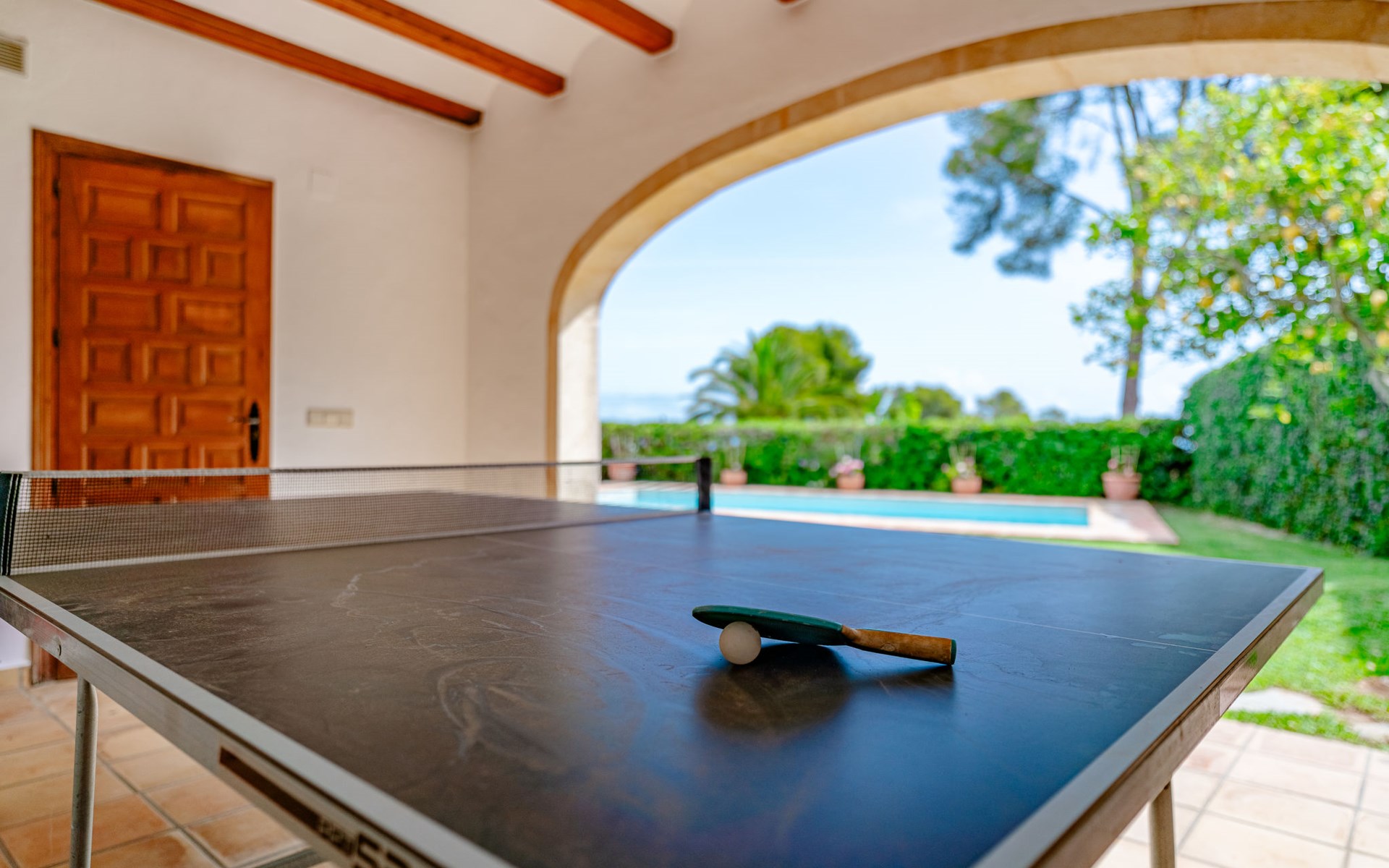 Large, beautiful house "Villa Pomelo Plus", 2 storeys. In the district of Tosalet, in a quiet, sunny position residential area (villas), 2.7 km from the sea, 2.7 km from the beach. Private: large, beautiful, well-kept terraced garden, swimming pool angular (8 x 4 m, depth 40 - 210 cm, seasonal availability: 01.Jan. - 31.Dec.) with internal staircase. Outdoor shower, pergola, garden furniture, barbecue. In the house: table tennis. Stepped path to the house. Parking on the premises. Supermarket 2.3 km, restaurant 2.3 km, café 2.3 km, bus stop 3 km, sandy beach "El Arenal" 3.4 km, rocky beach "Cala Blanca" 2.7 km. Sports harbour 4 km, surf school 3.4 km, tennis 3.5 km. The owner does not accept any youth groups.