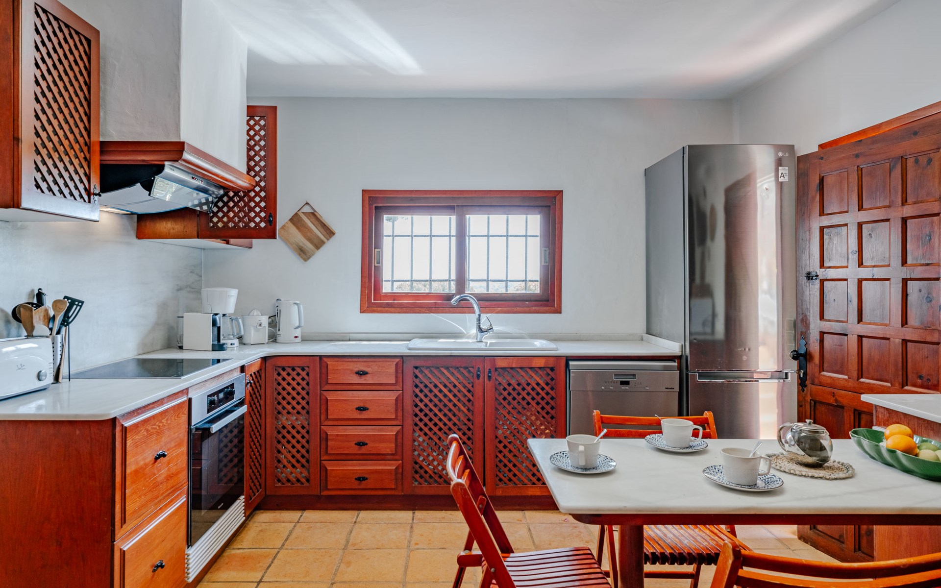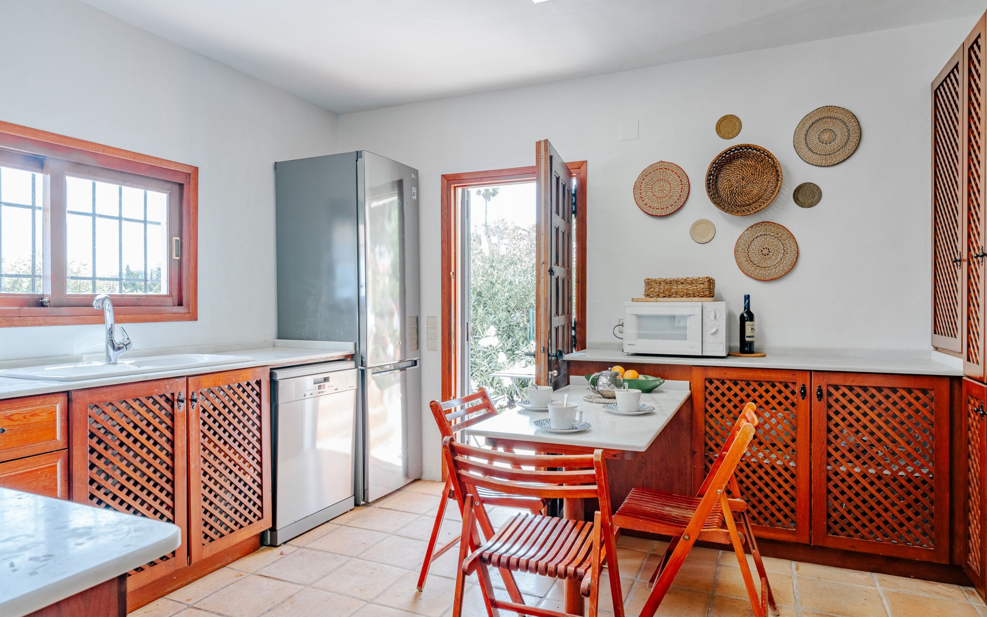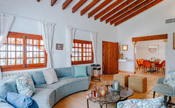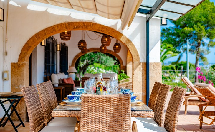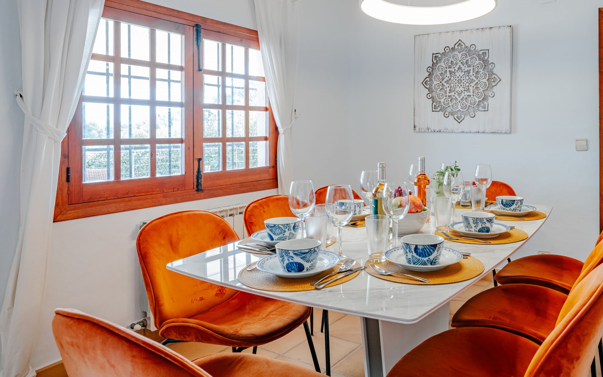 Large, beautiful house "Villa Pomelo Plus", 2 storeys. In the district of Tosalet, in a quiet, sunny position residential area (villas), 2.7 km from the sea, 2.7 km from the beach. Private: large, beautiful, well-kept terraced garden, swimming pool angular (8 x 4 m, depth 40 - 210 cm, seasonal availability: 01.Jan. - 31.Dec.) with internal staircase. Outdoor shower, pergola, garden furniture, barbecue. In the house: table tennis. Stepped path to the house. Parking on the premises. Supermarket 2.3 km, restaurant 2.3 km, café 2.3 km, bus stop 3 km, sandy beach "El Arenal" 3.4 km, rocky beach "Cala Blanca" 2.7 km. Sports harbour 4 km, surf school 3.4 km, tennis 3.5 km. The owner does not accept any youth groups.