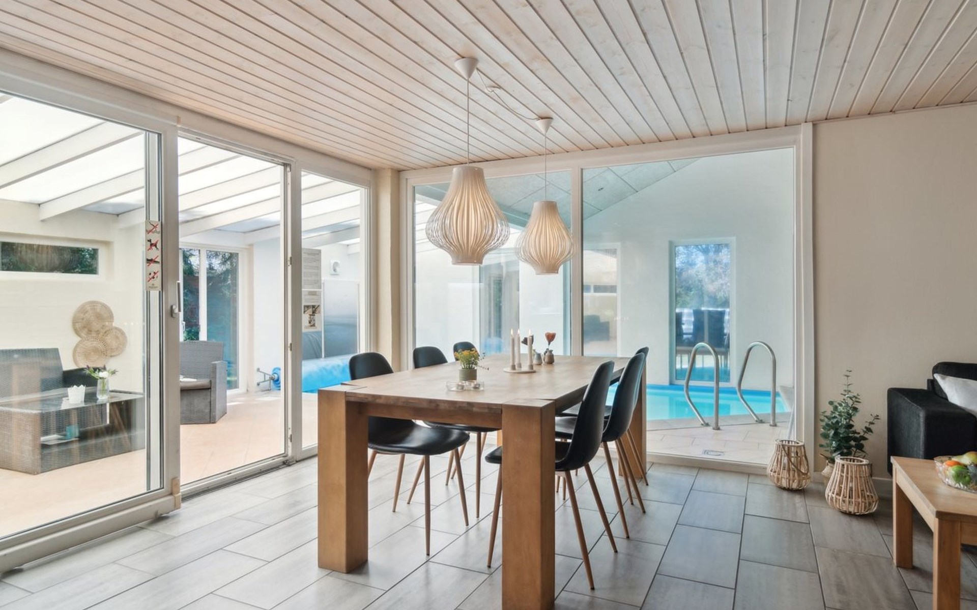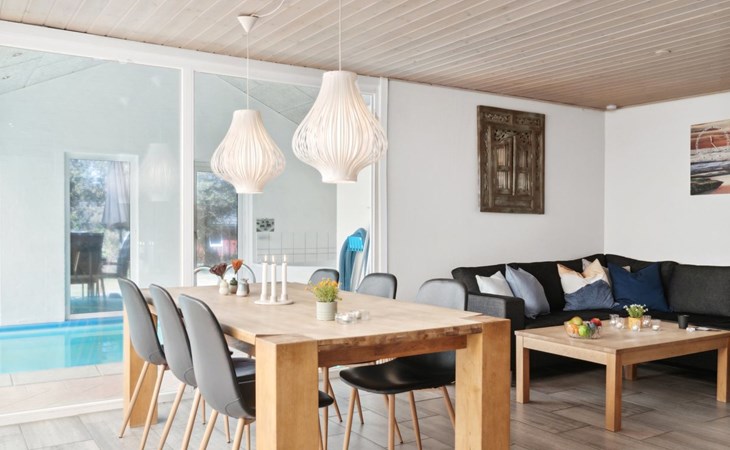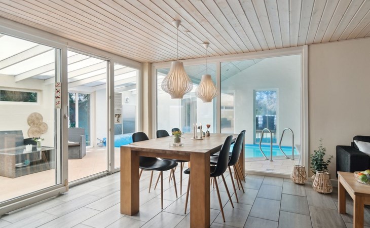 Single-family house, built in 1970. 300 m from the sea. Private: natural state property 1'200 m2, indoor pool. Terrace (45 m2), barbecue, children's playground (swing). In the house: sauna, washing machine, tumble dryer. Parking at the house. Grocery 500 m. The owner does not accept any youth groups.