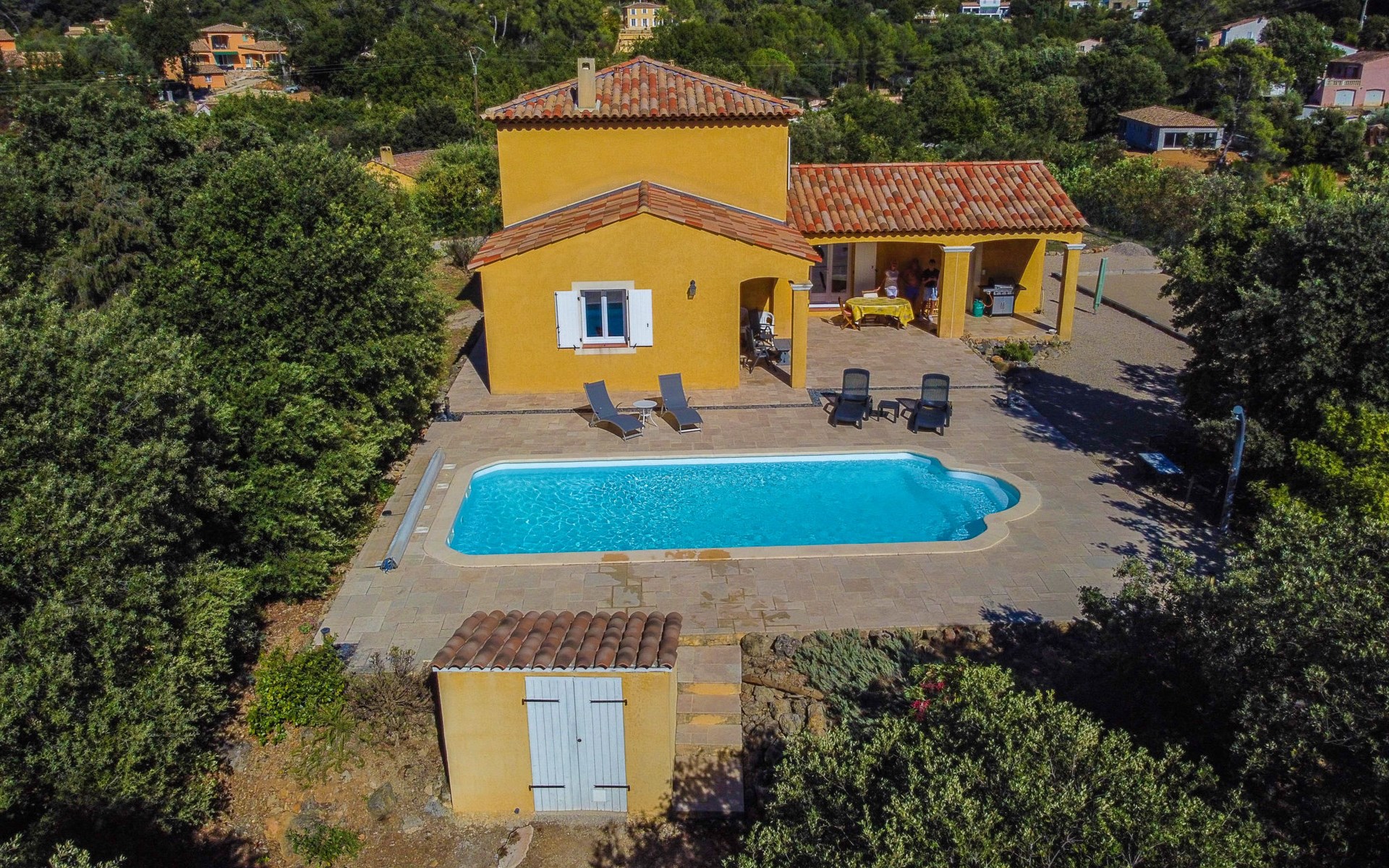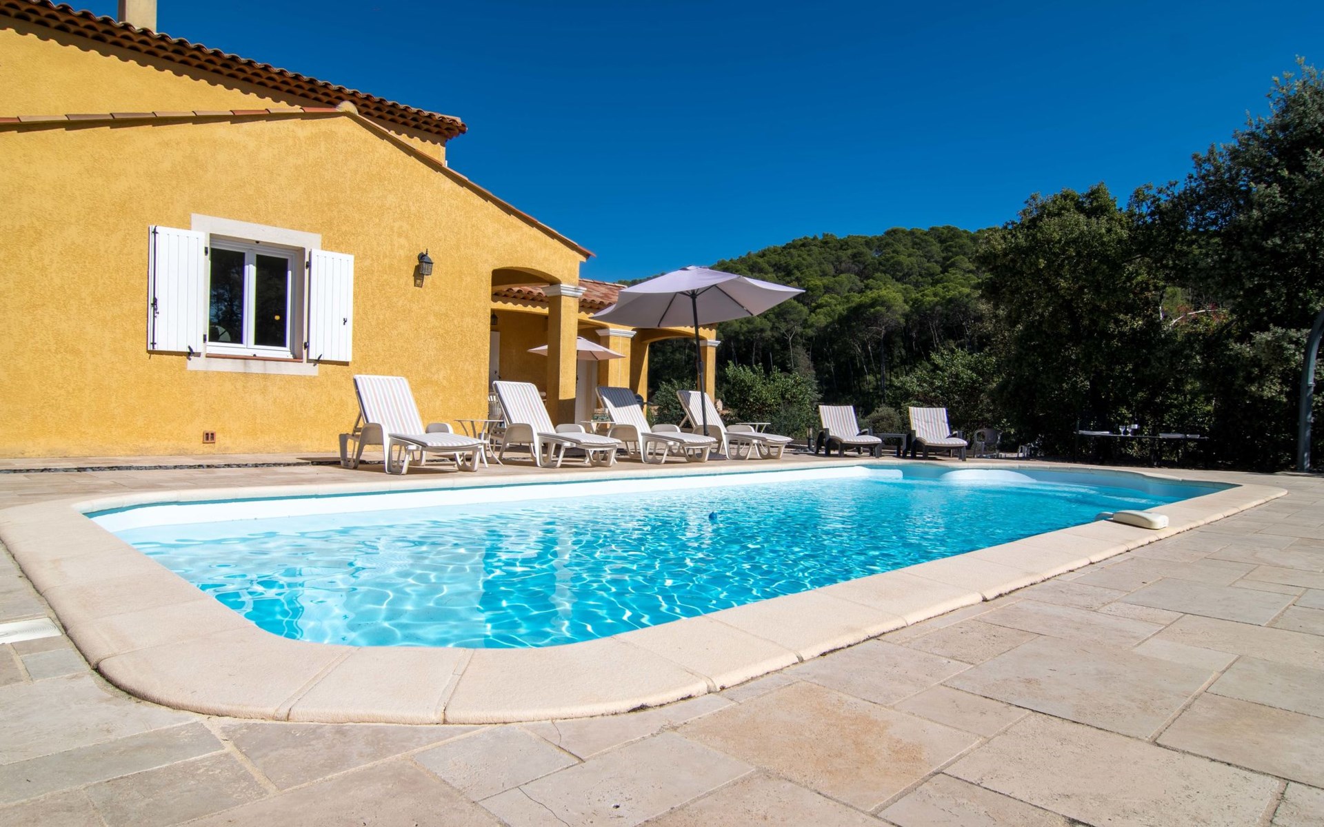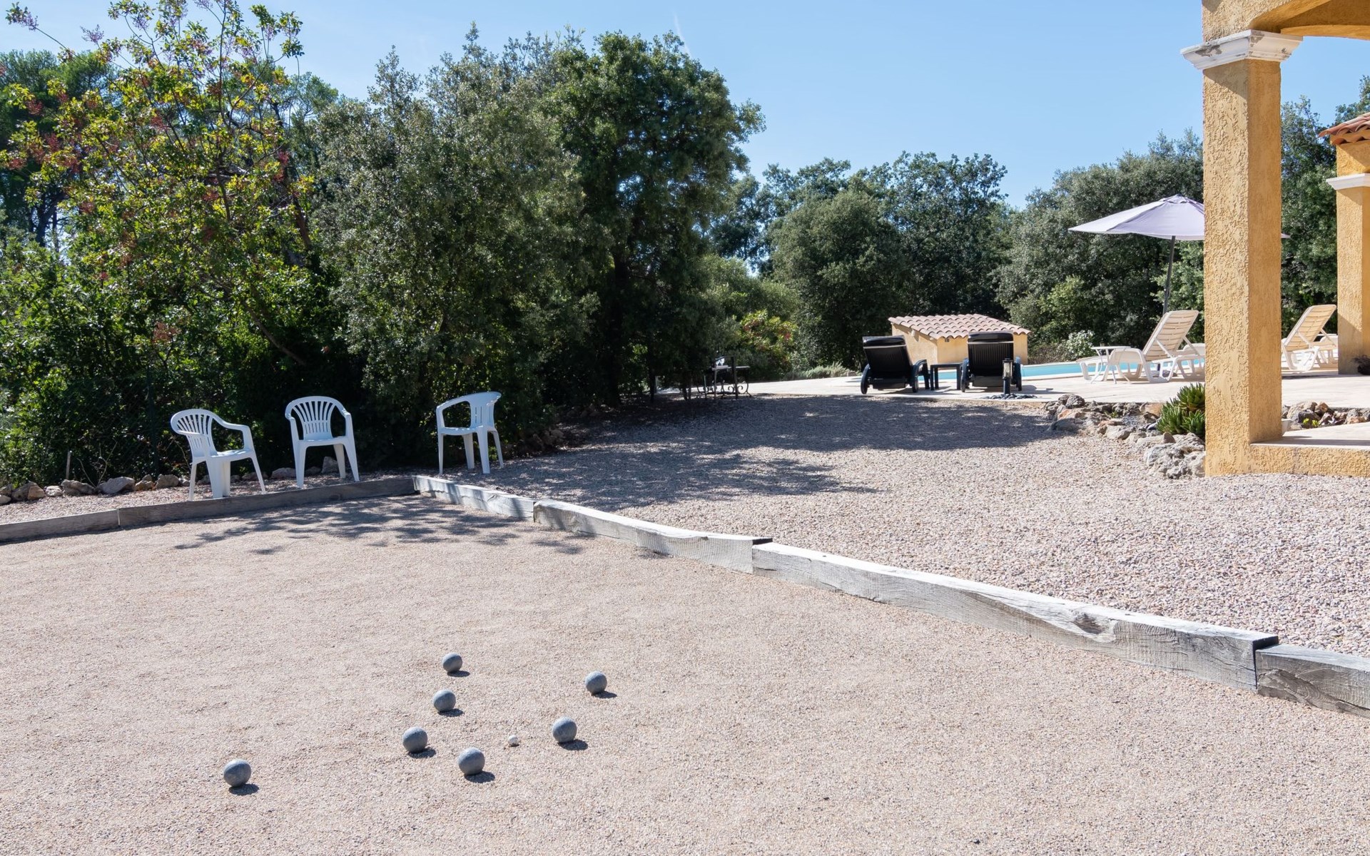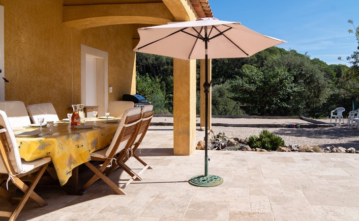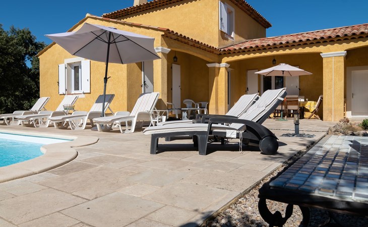 Beautiful house "La Renaudière", surrounded by trees. 900 m from the centre of Lorgues, 14 km from the centre of Draguignan, 38 km from the centre of Fréjus, in the residential district, 40 km from the sea. Private: natural state property 2'500 m2 with wildlife garden and trees, swimming pool (9 x 4 m, depth 100 - 200 cm, seasonal availability: 01.Jan. - 31.Dec.) with internal staircase and alarm system. Outdoor shower, boules, terrace, parking (for 2 cars) on the premises. Shop 900 m, bus stop 1.2 km, railway station "Les Arcs Draguignan" 15 km, sandy beach "Fréjus" 40 km. Golf course (18 hole) 25 km. Nearby attractions: Abbaye du Thoronet, Grottes de Villecroze, La cascade de Sillans, Cotignac, Cassis. Well-known lakes can easily be reached: Sainte Croix 44 km. Hiking paths: Gorges du Verdon, Gorges du Blavet.