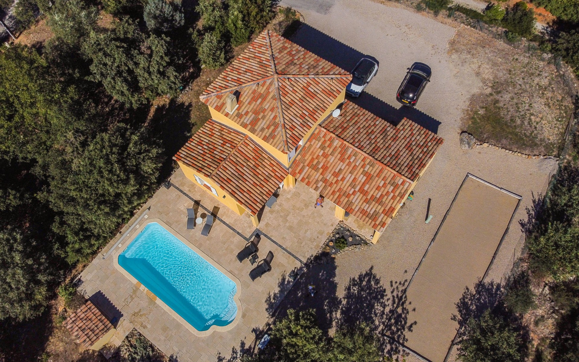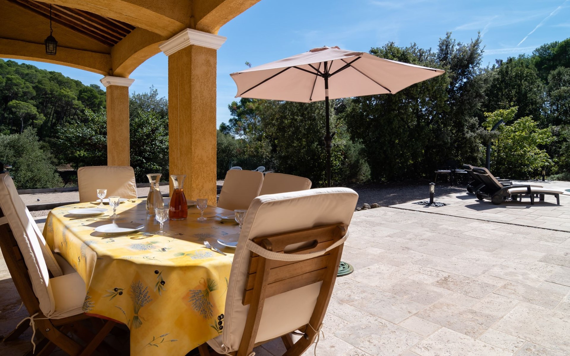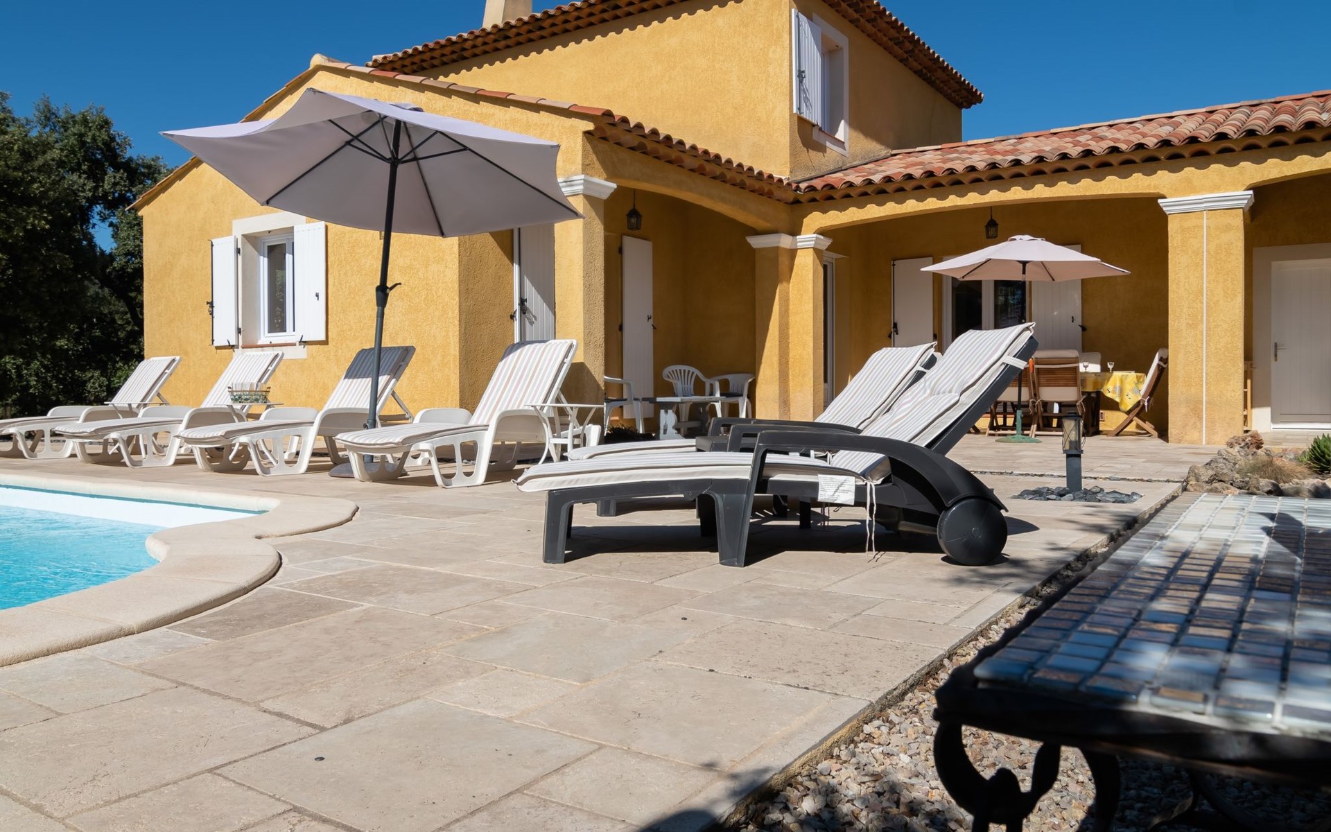 Beautiful house "La Renaudière", surrounded by trees. 900 m from the centre of Lorgues, 14 km from the centre of Draguignan, 38 km from the centre of Fréjus, in the residential district, 40 km from the sea. Private: natural state property 2'500 m2 with wildlife garden and trees, swimming pool (9 x 4 m, depth 100 - 200 cm, seasonal availability: 01.Jan. - 31.Dec.) with internal staircase and alarm system. Outdoor shower, boules, terrace, parking (for 2 cars) on the premises. Shop 900 m, bus stop 1.2 km, railway station "Les Arcs Draguignan" 15 km, sandy beach "Fréjus" 40 km. Golf course (18 hole) 25 km. Nearby attractions: Abbaye du Thoronet, Grottes de Villecroze, La cascade de Sillans, Cotignac, Cassis. Well-known lakes can easily be reached: Sainte Croix 44 km. Hiking paths: Gorges du Verdon, Gorges du Blavet.
