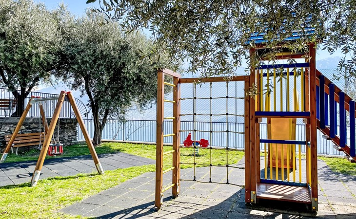 The furnished balcony not only offers a spectacular view of the lake, but also provides the opportunity to dine al fresco. Or you can head to the communal garden for cheerful barbecue evenings overlooking the lake. Private parking is available.