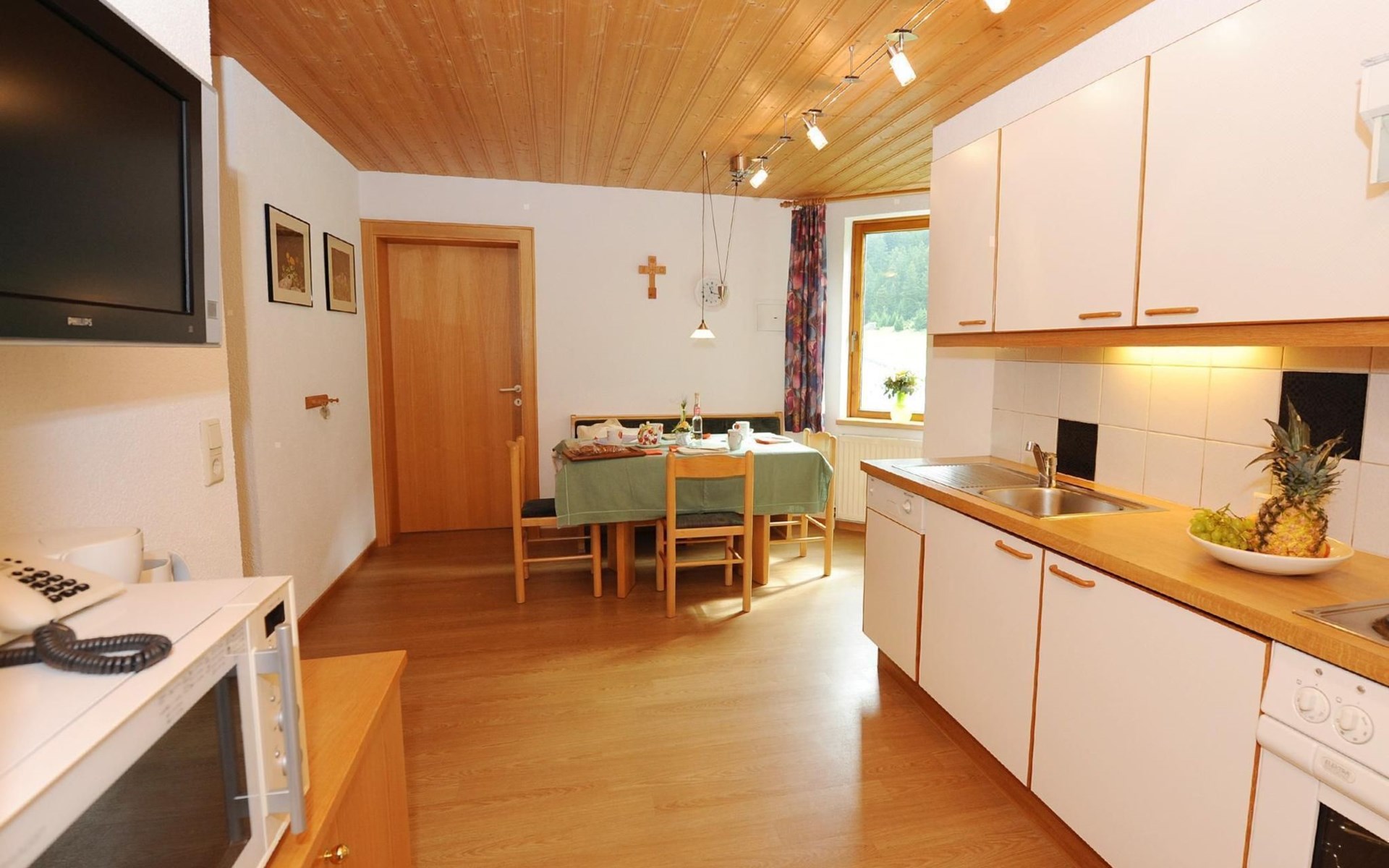 Furthermore the apartment is equipped with satellite TV, safe, wardrobe with ample storage space and a well-equipped kitchen with electric stove and oven, dishwasher, refrigerator with freezer, water and egg cooker, microwave, coffee maker, toaster, large crockery and much more.