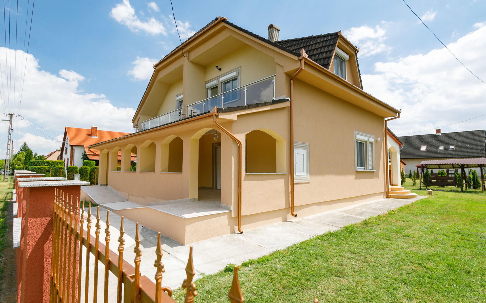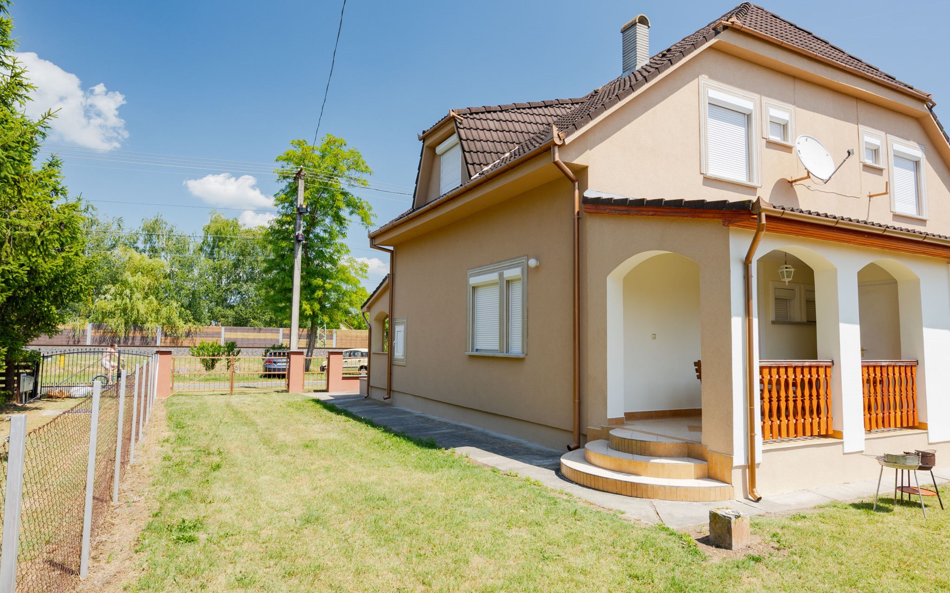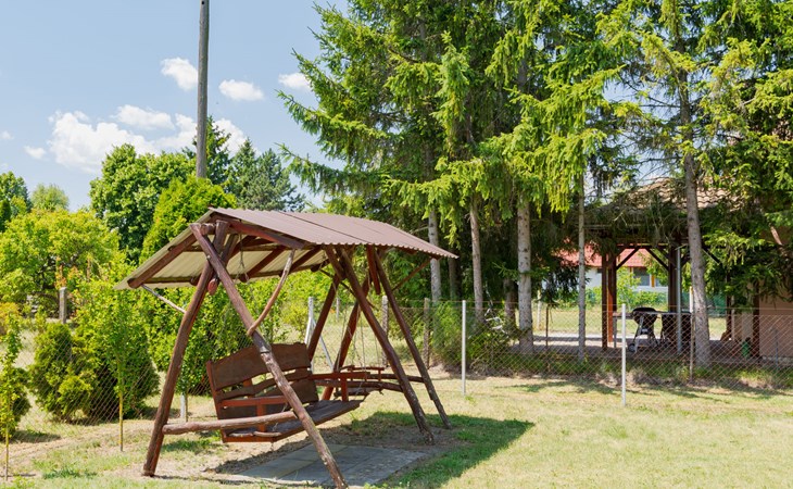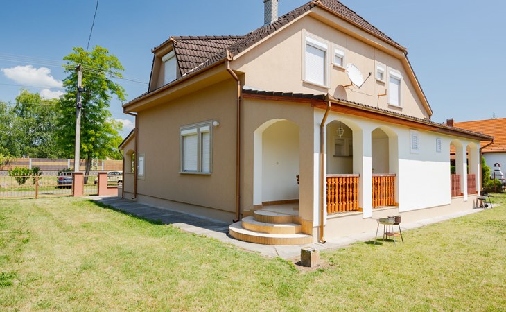 Balatonmáriafürdő 20 km from Keszthely: Beautiful, comfortable semi-detached house, 2 storeys. In a sunny position, 150 m from the lake, 1 km from the beach. For shared use: garden 300 m2 (fenced), lawn for sunbathing. Children's playground (swing). Private: barbecue. In the house: WiFi. Grocery, restaurant, grass beach 150 m. Well-known lakes can easily be reached: Hévíz Thermal 25 km. Please note: railway line closeby.