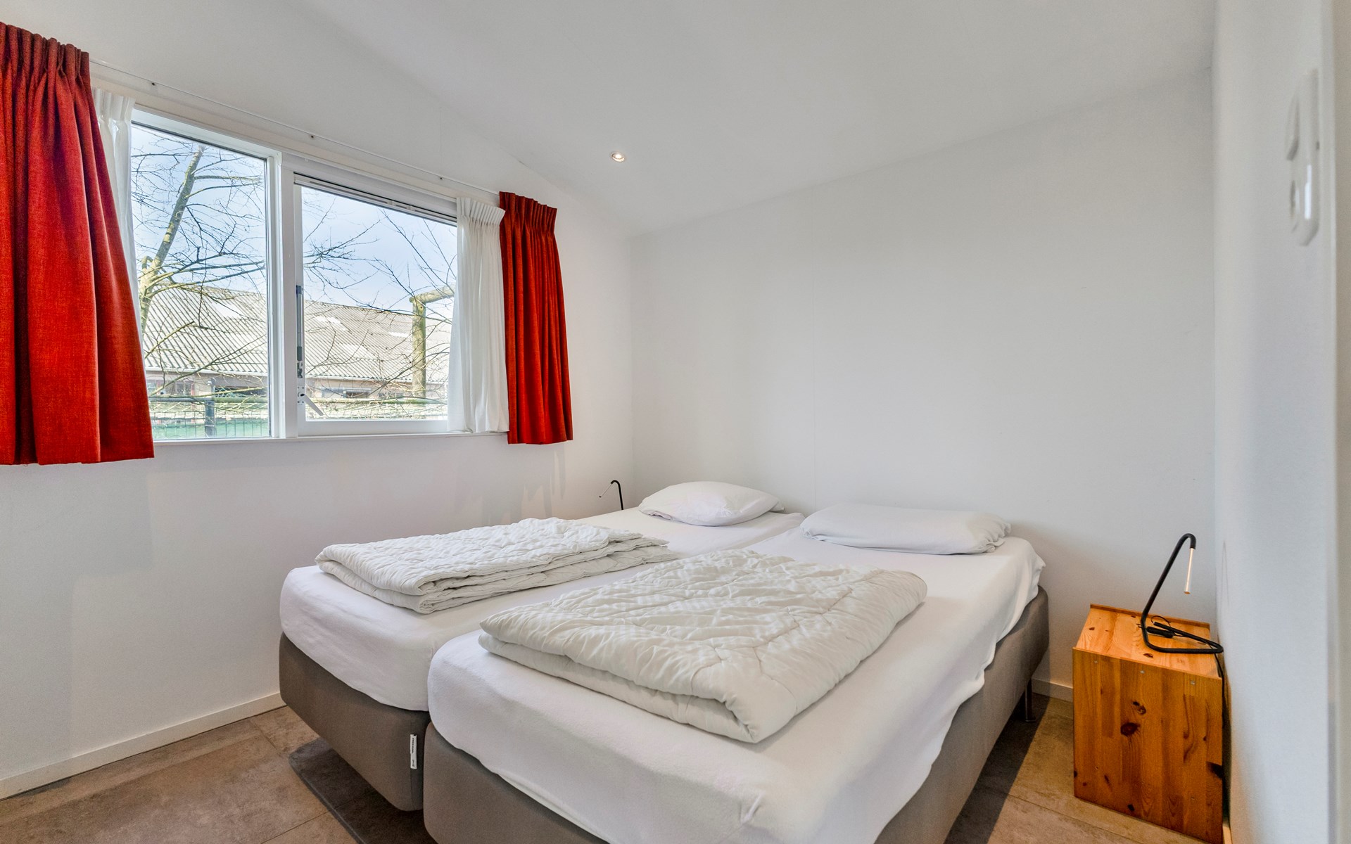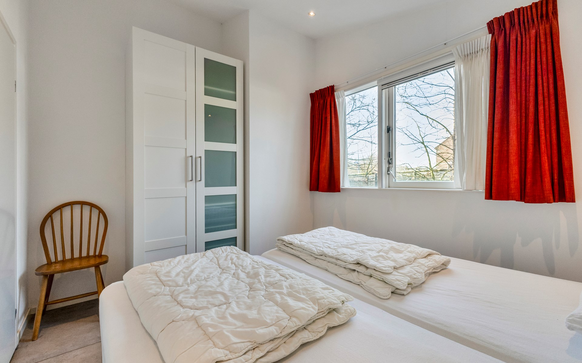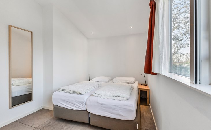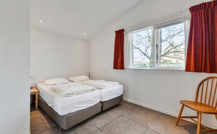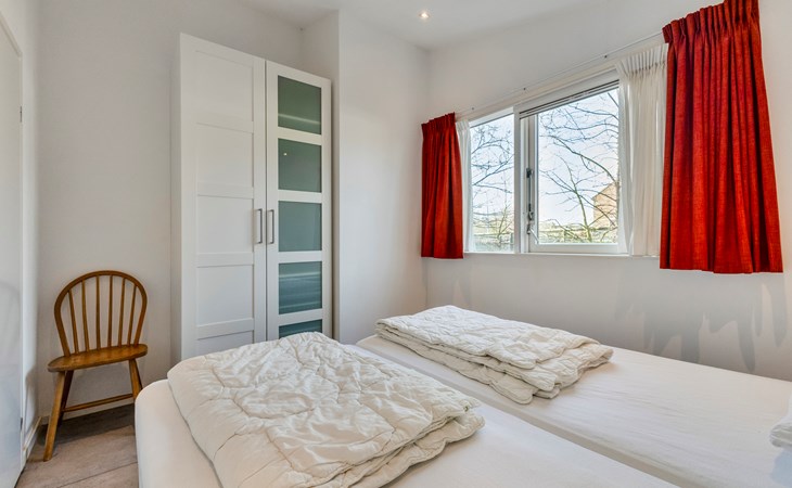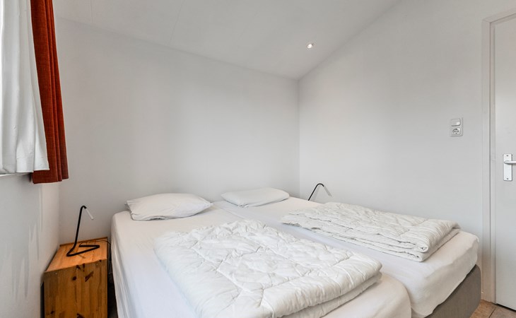 The bungalow features two generously sized bedrooms, each furnished with two comfortable single beds. The rooms are quietly situated and offer ample storage space, ideal for families or couples travelling together.