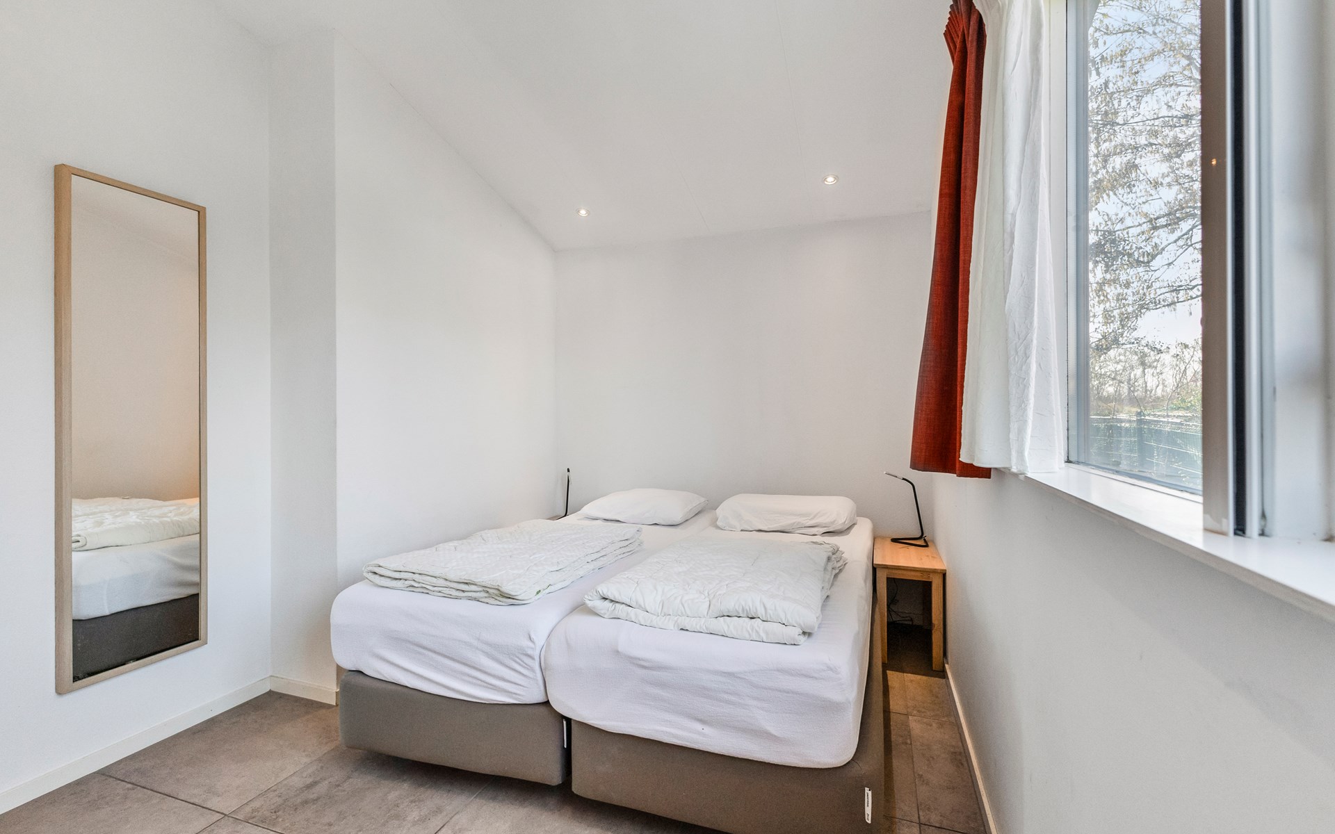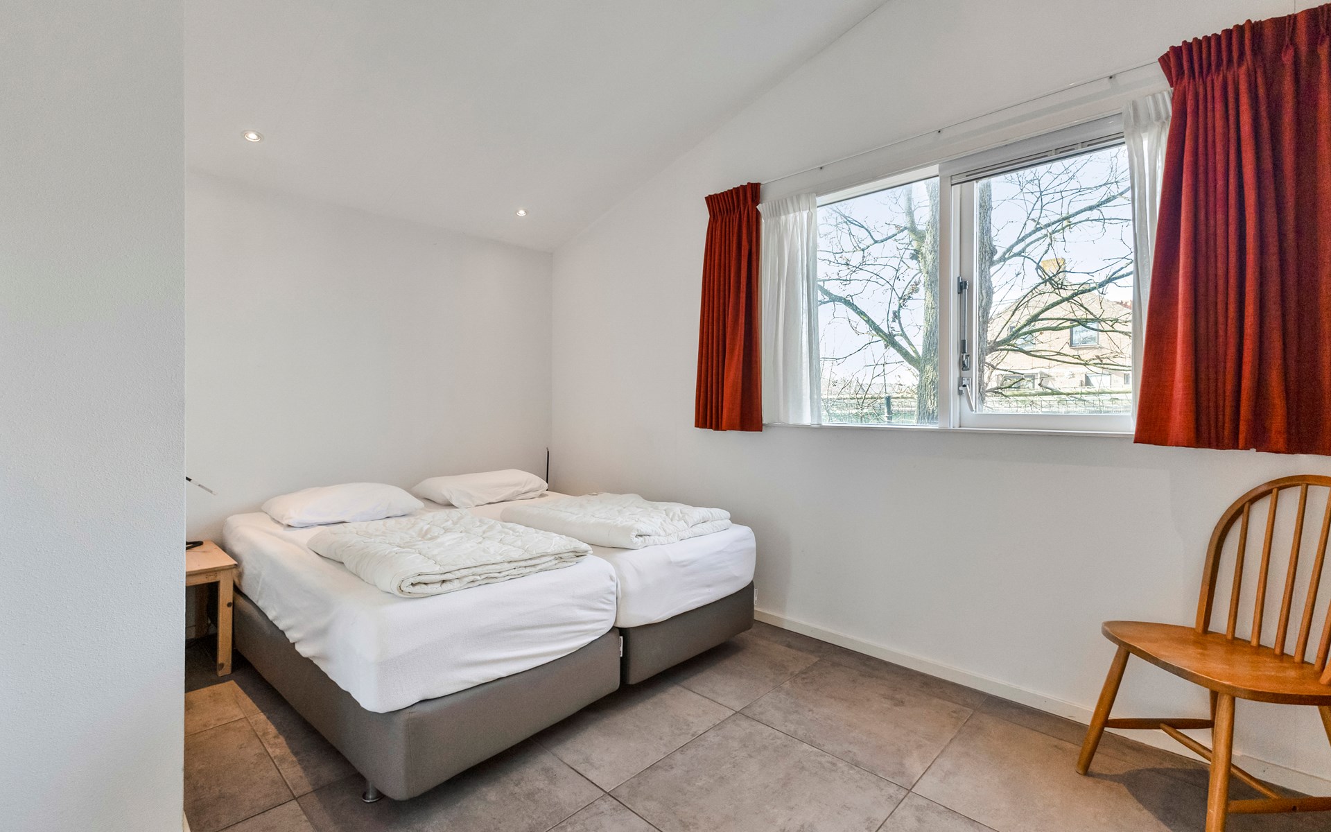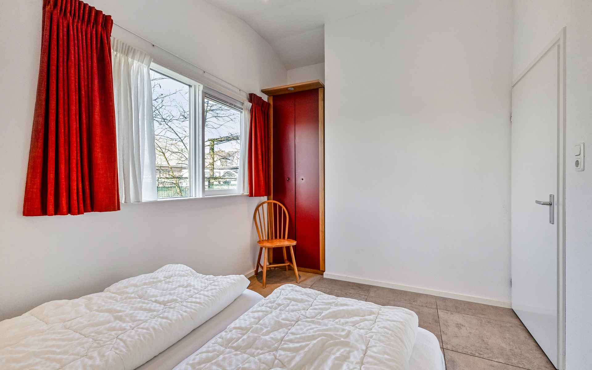 The bungalow features two generously sized bedrooms, each furnished with two comfortable single beds. The rooms are quietly situated and offer ample storage space, ideal for families or couples travelling together.