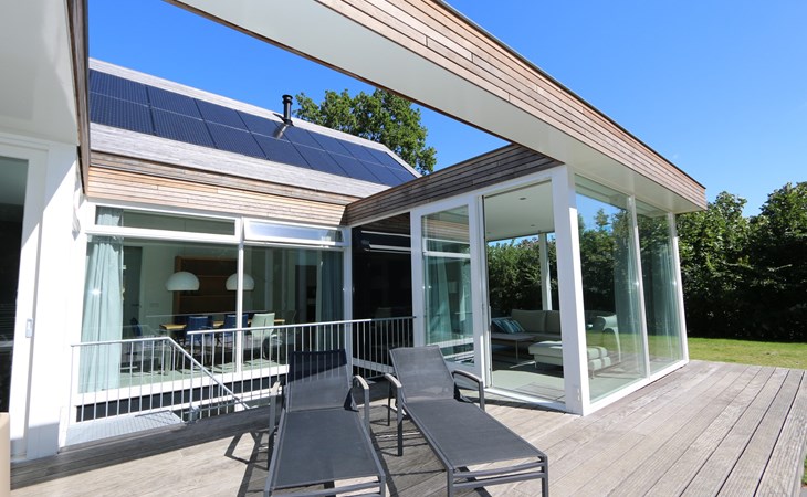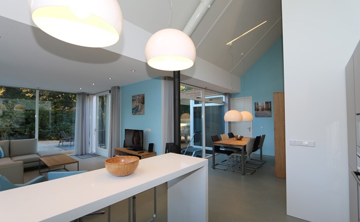This lovely house is fully-equipped and suited for a luxurious, relaxing stay due to the atmospheric design, floor heating and quality furniture and equipment. The stylish living room has a cosy seating corner with atmospheric fireplace, an adjacent complete, open kitchen and spacious dining area. The house has four royal bedrooms of which three have their own bathroom en suite. An extra wellness room with sauna and tub is present and a playroom is present as well.