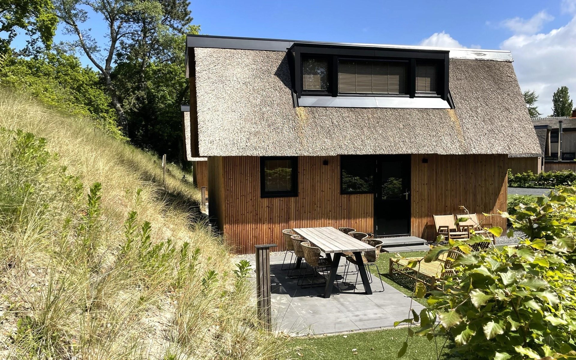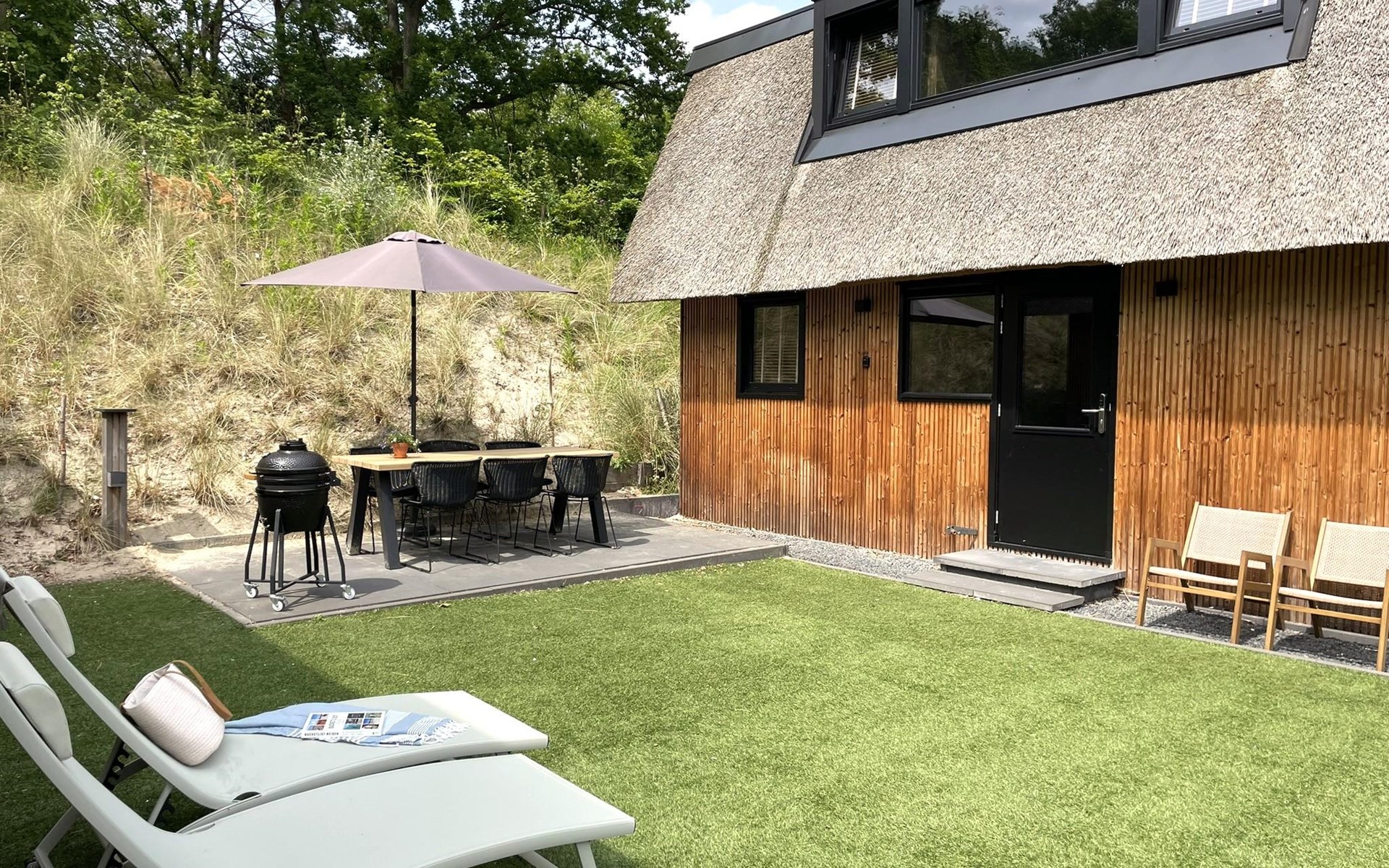 Het was een mooi huisje van alle gemakken voorzien. We hadden allemaal een fijn plekje. En het ligt heel mooi zo aan de duinrand.