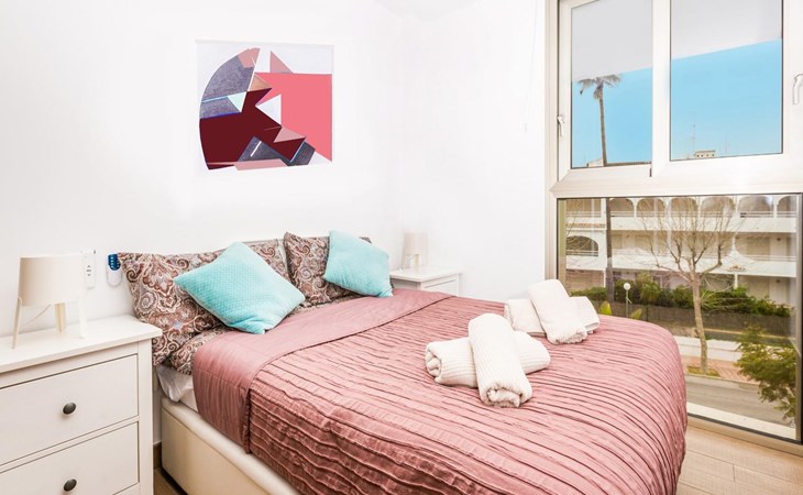 The apartment has 3 bedrooms and 2 bathrooms. The accommodation offers a lawned communal garden with trees, wonderful views of the pool and the garden and beautiful views of the bay and the sea. Its comfort and the vicinity of the beach, places to shop, sports activities, entertainment facilities, places to go out, sights and culture make this a fine apartment to spend your holidays in Spain with family or friends.