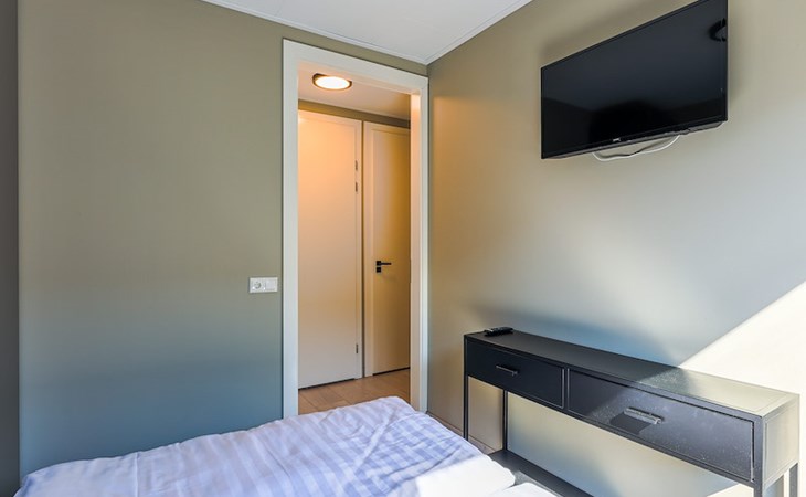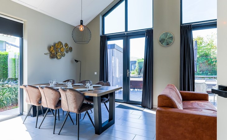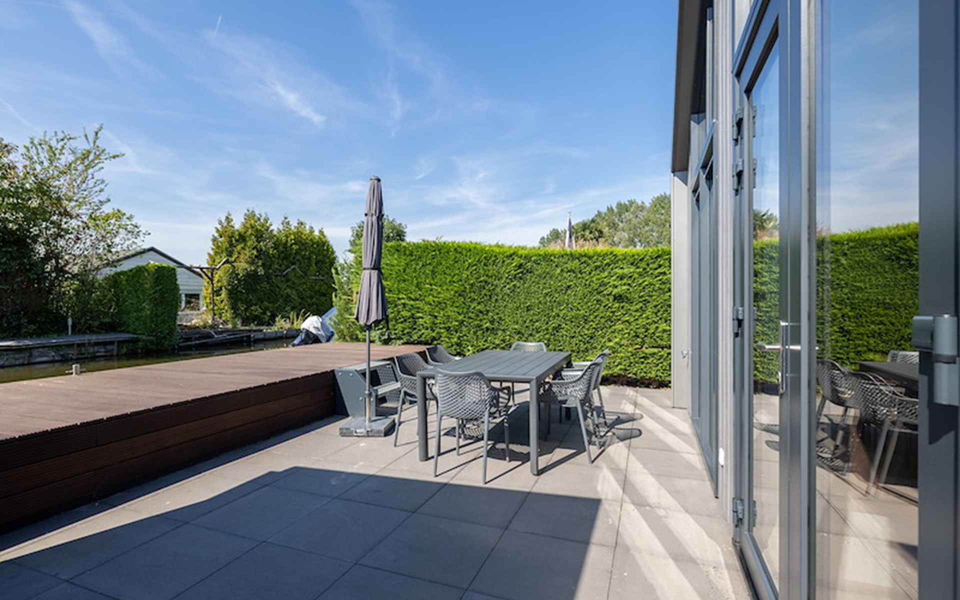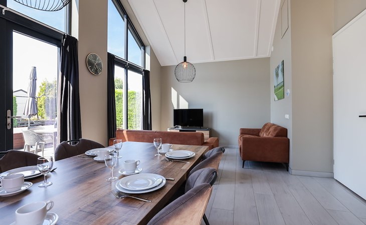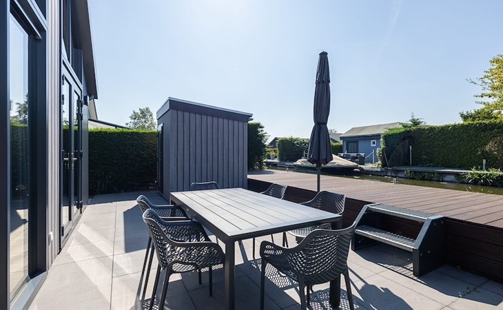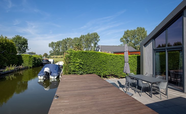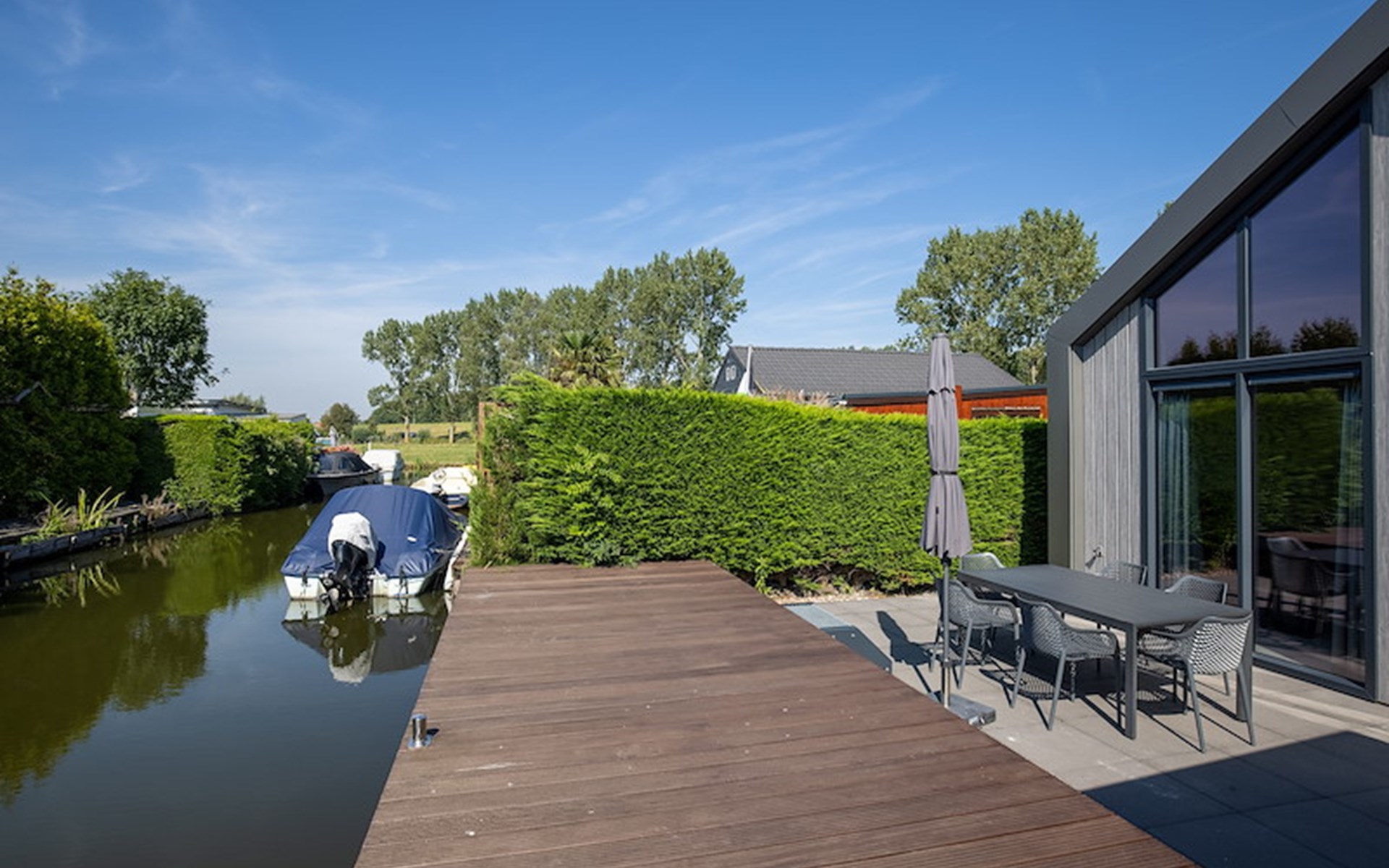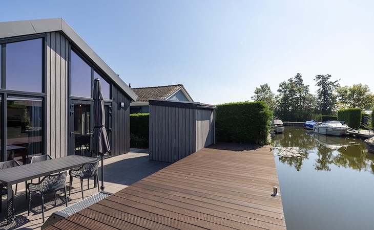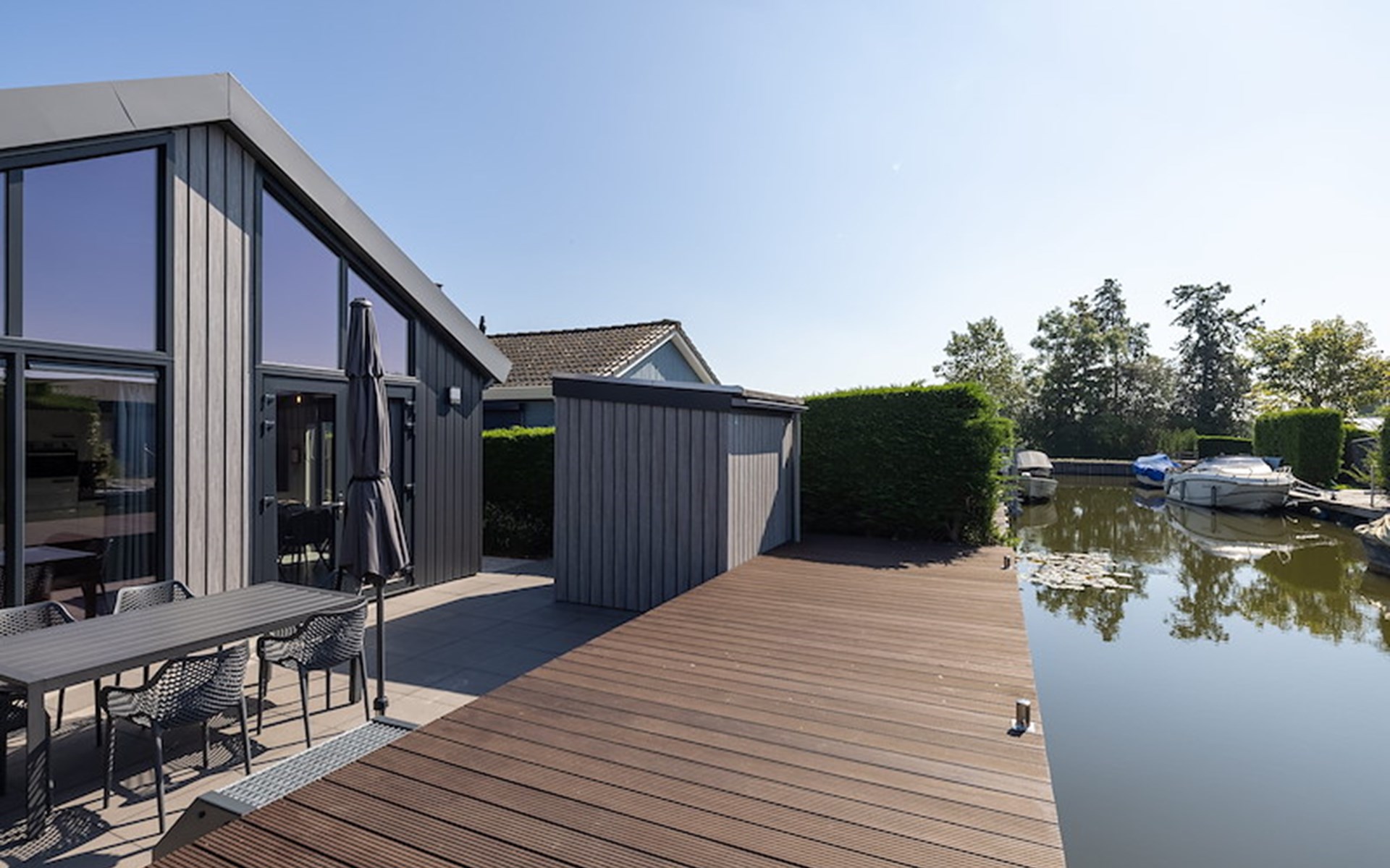 The Wilgenroos is a spacious 70 m² chalet, suitable for up to 6 persons. The chalet features a largely enclosed garden (the waterfront is not enclosed) with a furnished terrace and a private jetty, directly on the open water connected to the inland lake De Groote Vliet.