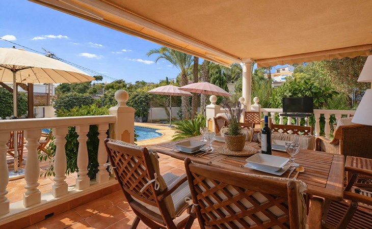 Wonderful and classic villa in Moraira, Costa Blanca, Spain with private pool for 8 persons. The house is situated in a residential beach area, 500 metres from El Portet beach and 0.5 kilometres from the Mediterranean.