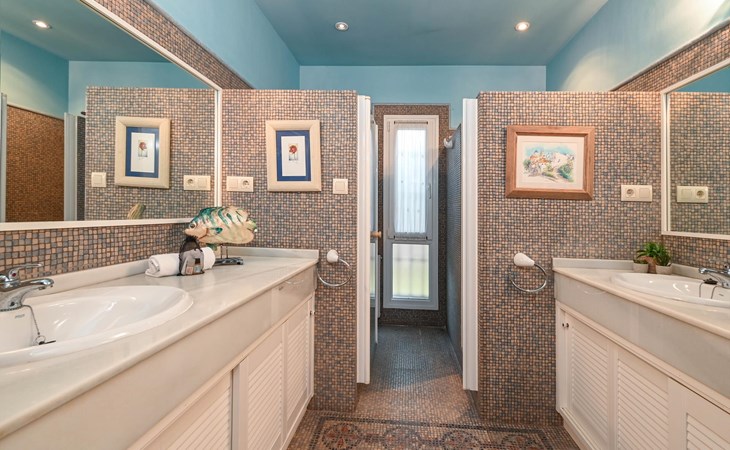 The villa has 2 bedrooms, 3 bathrooms and 1 guest toilet, spread over 2 levels. The accommodation offers a lot of privacy, a wonderful lawned garden with trees and a wonderful pool. Its comfort and the vicinity of the beach, sports activities, places to go out, sights and culture make this an ideal villa to spend your holidays in Spain with family or friends.