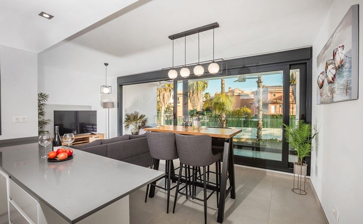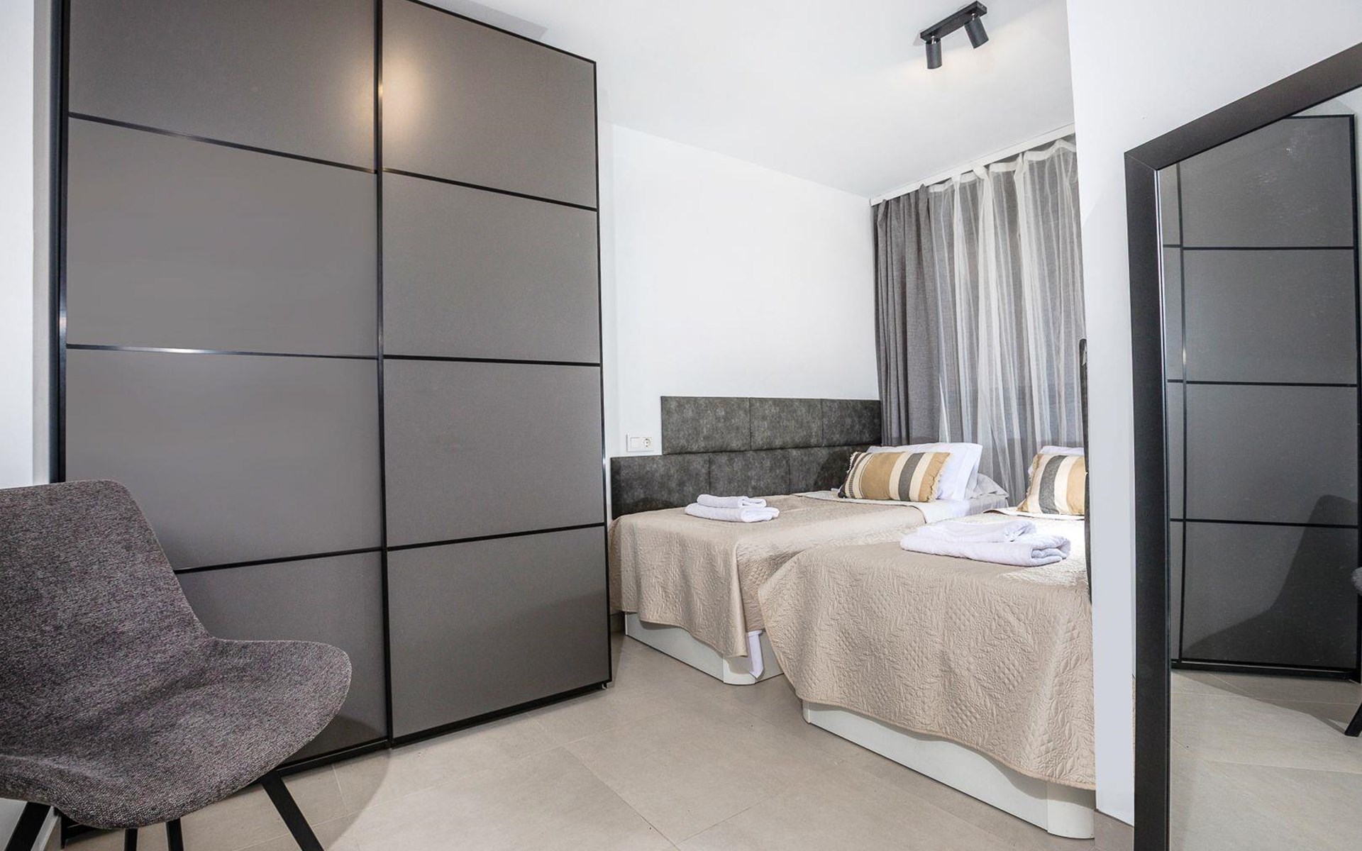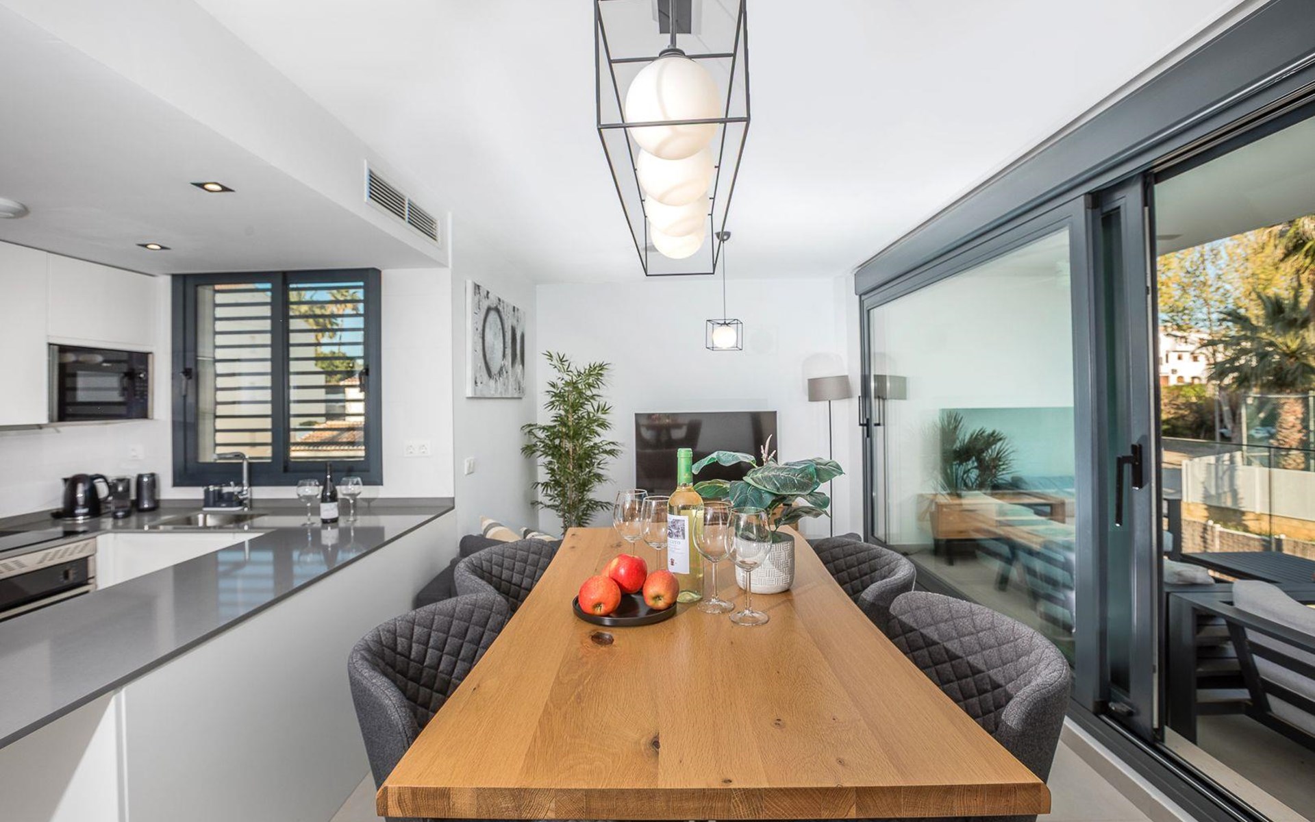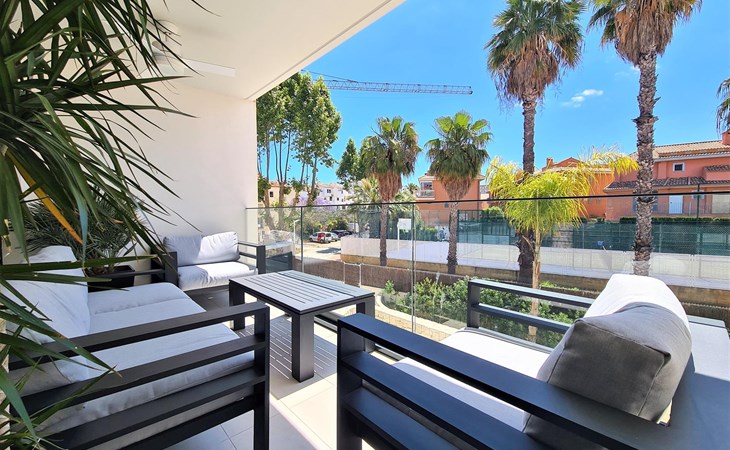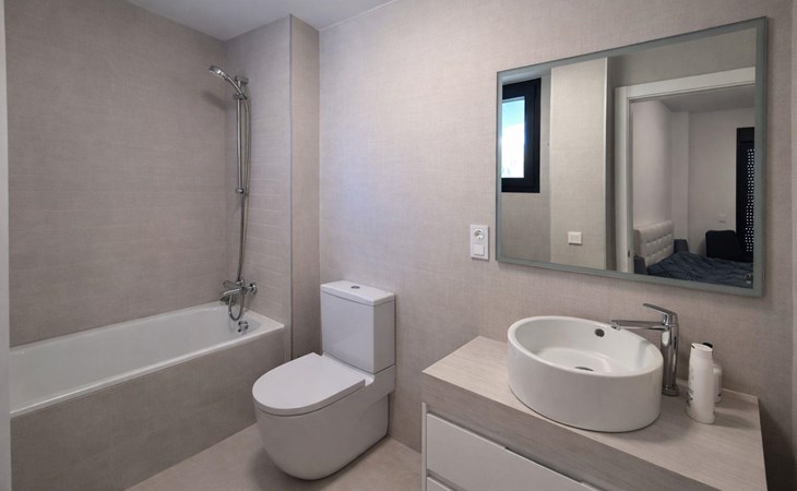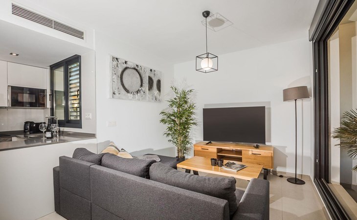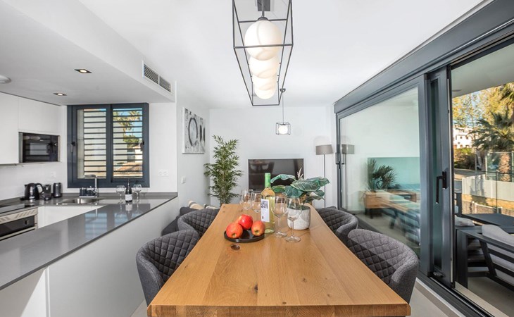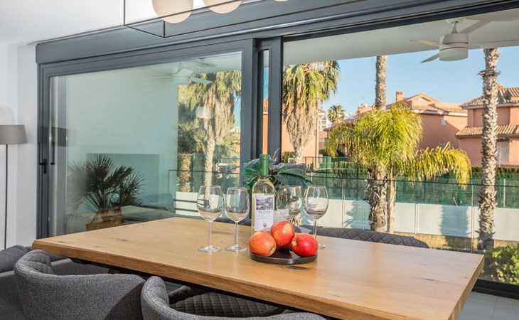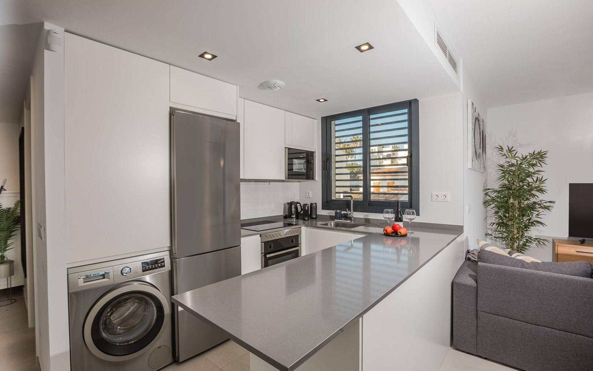 The apartment has 2 bedrooms and 2 bathrooms. The accommodation offers privacy and a communal garden with a lawn and trees. Its comfort and the vicinity of the beach, places to shop, sports activities, entertainment facilities, places to go out, sights, and culture make this an ideal apartment to spend your holidays in Spain with family or friends.