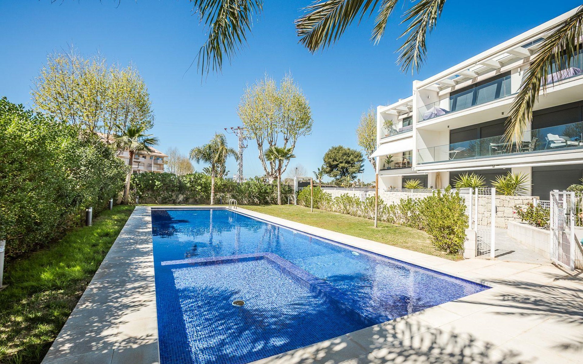 Modern and comfortable apartment with communal pool in Jávea, Costa Blanca, Spain for 4 persons. The apartment is situated in a residential beach area, close to restaurants and bars, shops, supermarkets and a tennis court, 200 m from Montañar I beach and 0.2 km from the Mediterranean Sea.