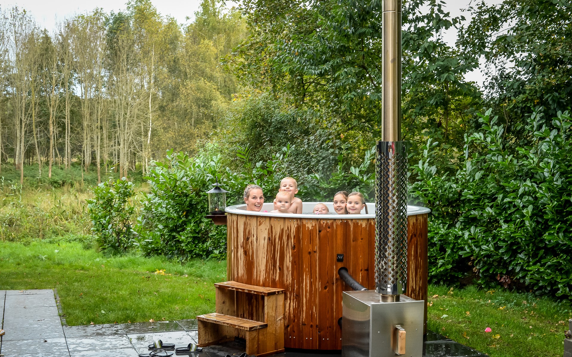 De hottub bij het huisje + het uitzicht op de regge was erg tof! Veel dingen voor de kinderen te doen en mooie omgeving