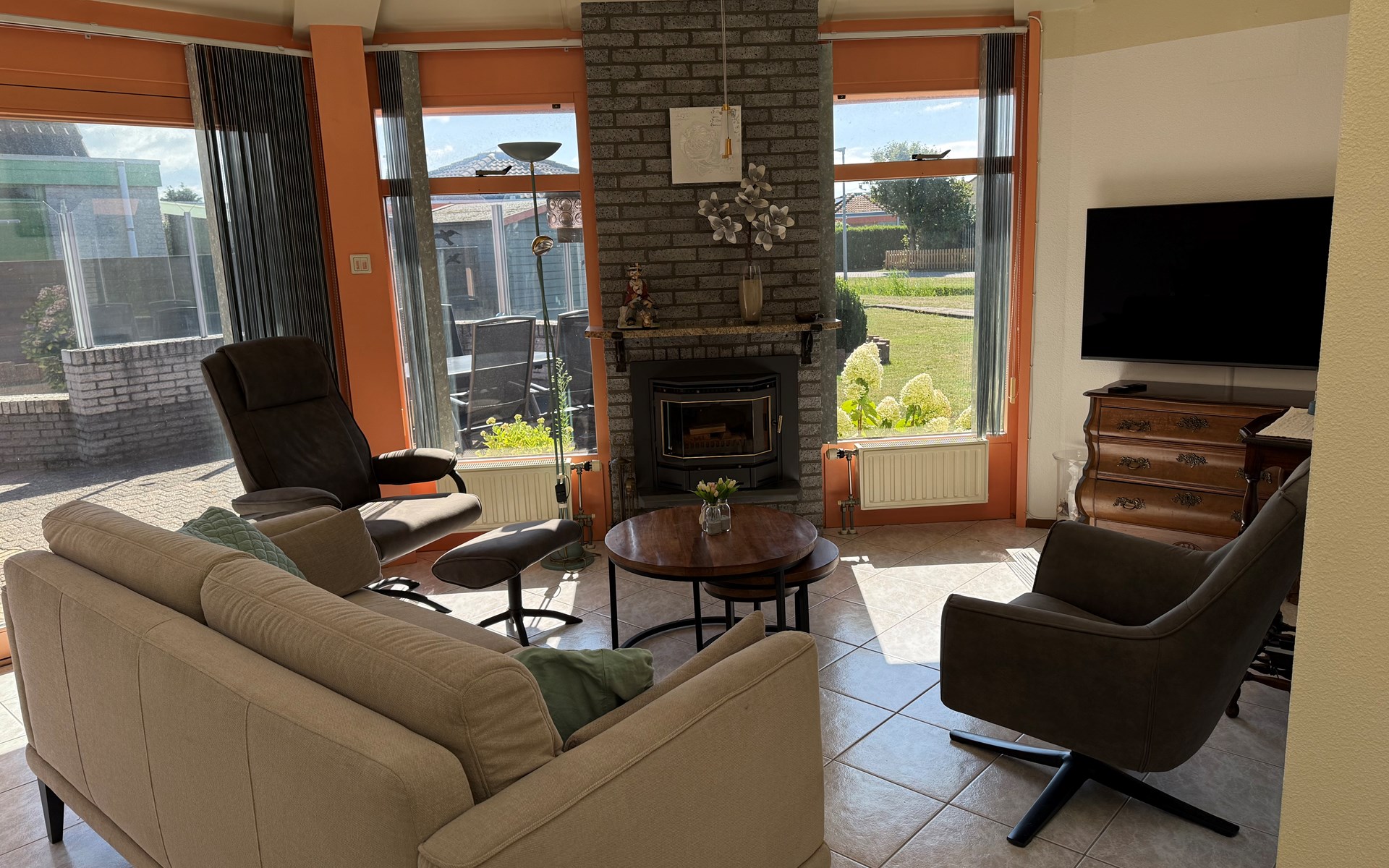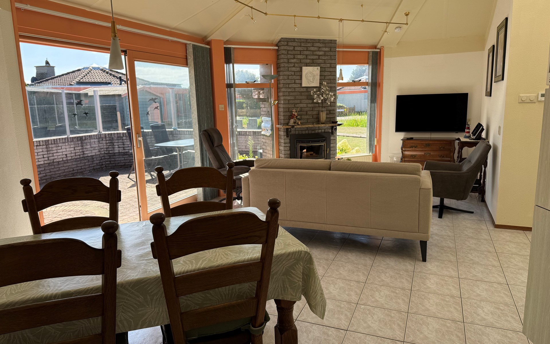 Bungalow for up to 6 people. This charming, single-storey bungalow at Bungalowpark Strandslag is the ideal base for a wonderful holiday on the Dutch coast. The house is located in a quiet, green area and has a spacious garden surrounding the house, with a sunny terrace and comfortable garden furniture. The perfect place to enjoy long summer evenings! Parking? No problem. You can easily park two cars on the driveway right next to the house. Inside, you will find a bright, cosy living room with sliding doors to the garden and a fireplace, which adds extra atmosphere on cooler days. The open kitchen is fully equipped: ✔ Oven
