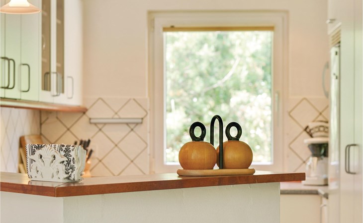 From the living room you can access the wooden terrace, where a brick barbecue creates a cosy atmosphere on beautiful summer evenings.