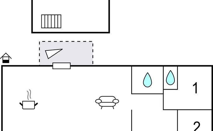 The cottage is very tastefully decorated. There are two bedrooms and a mezzanine, to which a steep staircase leads. In addition, there is a sofa bed in the living room.