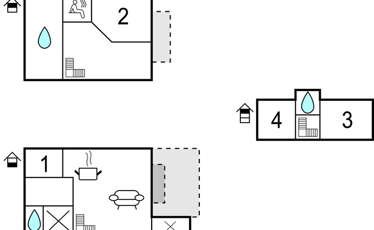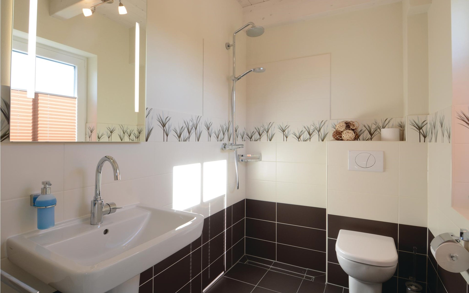 The bedrooms are spread over all three floors. One of the bedrooms as well as a bathroom (shower without thresholds) is located on the ground floor, so it is also suitable for guests who are less able to manage the stairs to the upper floors. Thanks to the 1.20 metre wide bed, this bedroom on the ground floor is particularly comfortable. The large bathroom on the 1st floor makes the house an absolute oasis of well-being, especially in the cold season, thanks to the marvellous XXL bathtub and the spacious sauna.