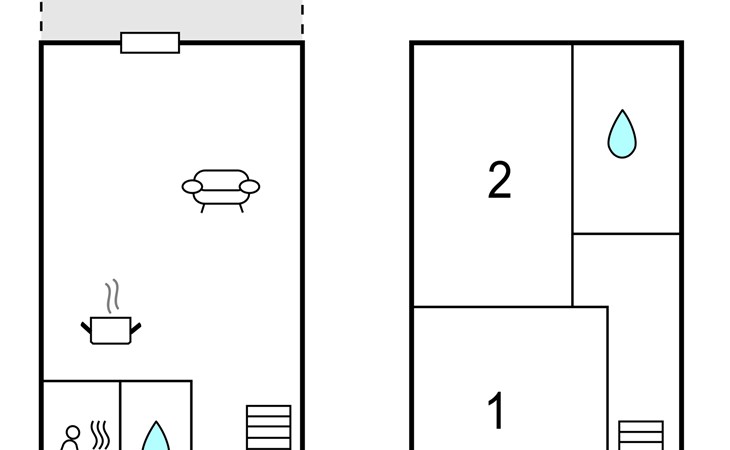 There is plenty of space for up to 4 people, with two separate bedrooms. A total of 3 TVs and a Blu-Ray player are available in this house, so you won't be bored even when the weather is bad.